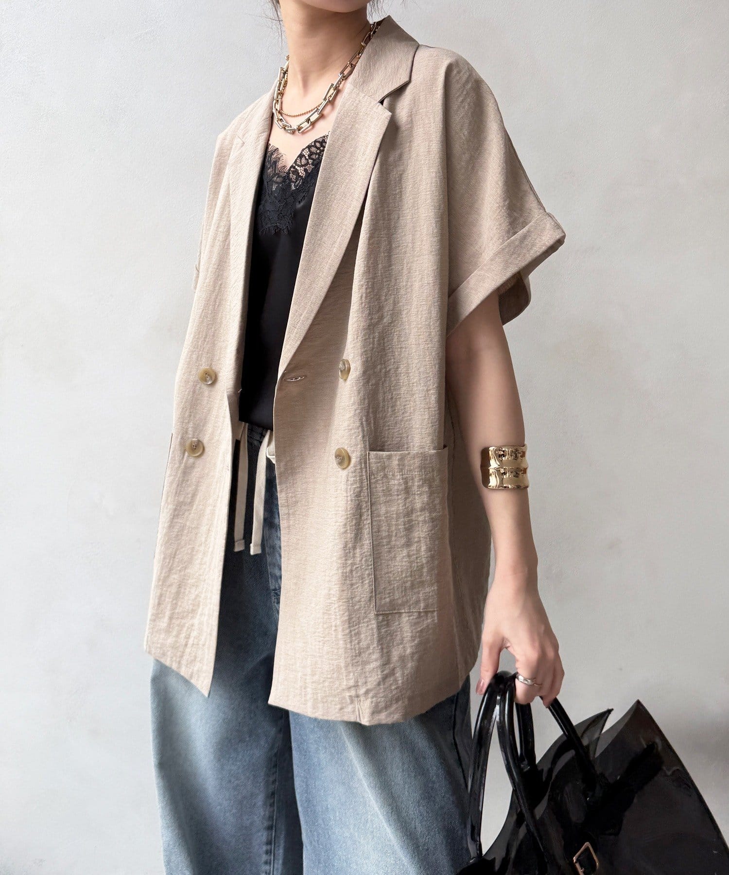 さらりと羽織るだけで、こなれ感を演出するショートスリーブジャケット。
