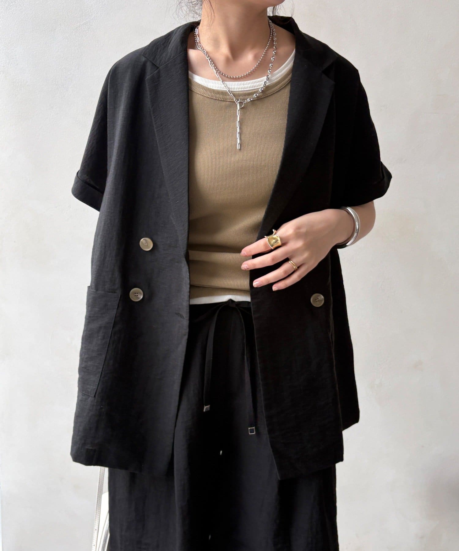 さらりと羽織るだけで、こなれ感を演出するショートスリーブジャケット。