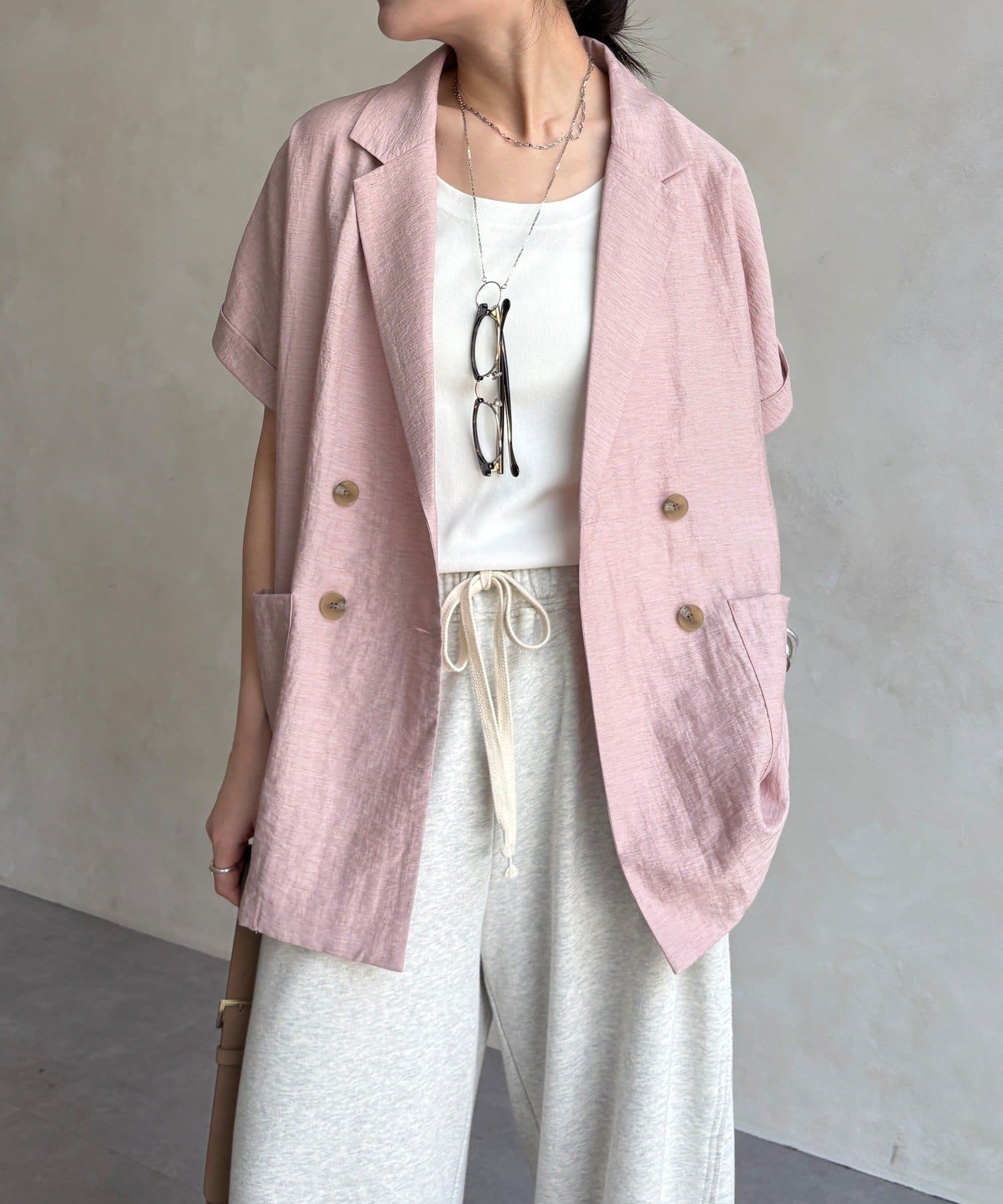 さらりと羽織るだけで、こなれ感を演出するショートスリーブジャケット。