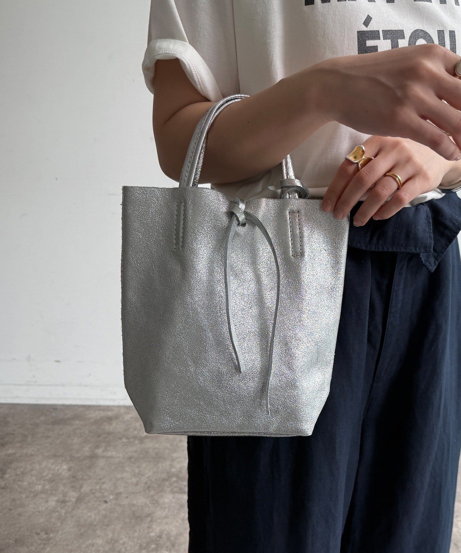 ・メタリックカラーがコーデのアクセントに