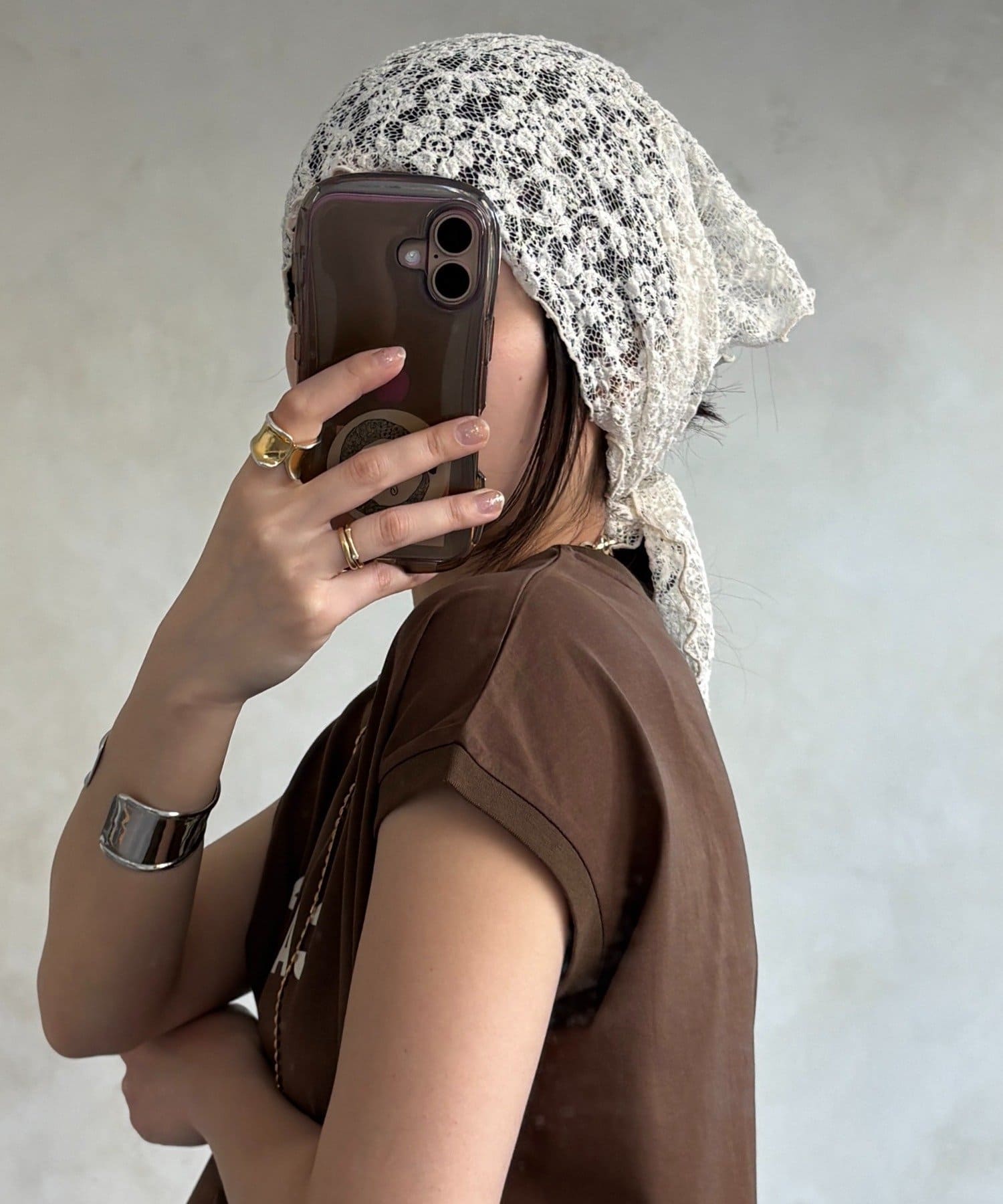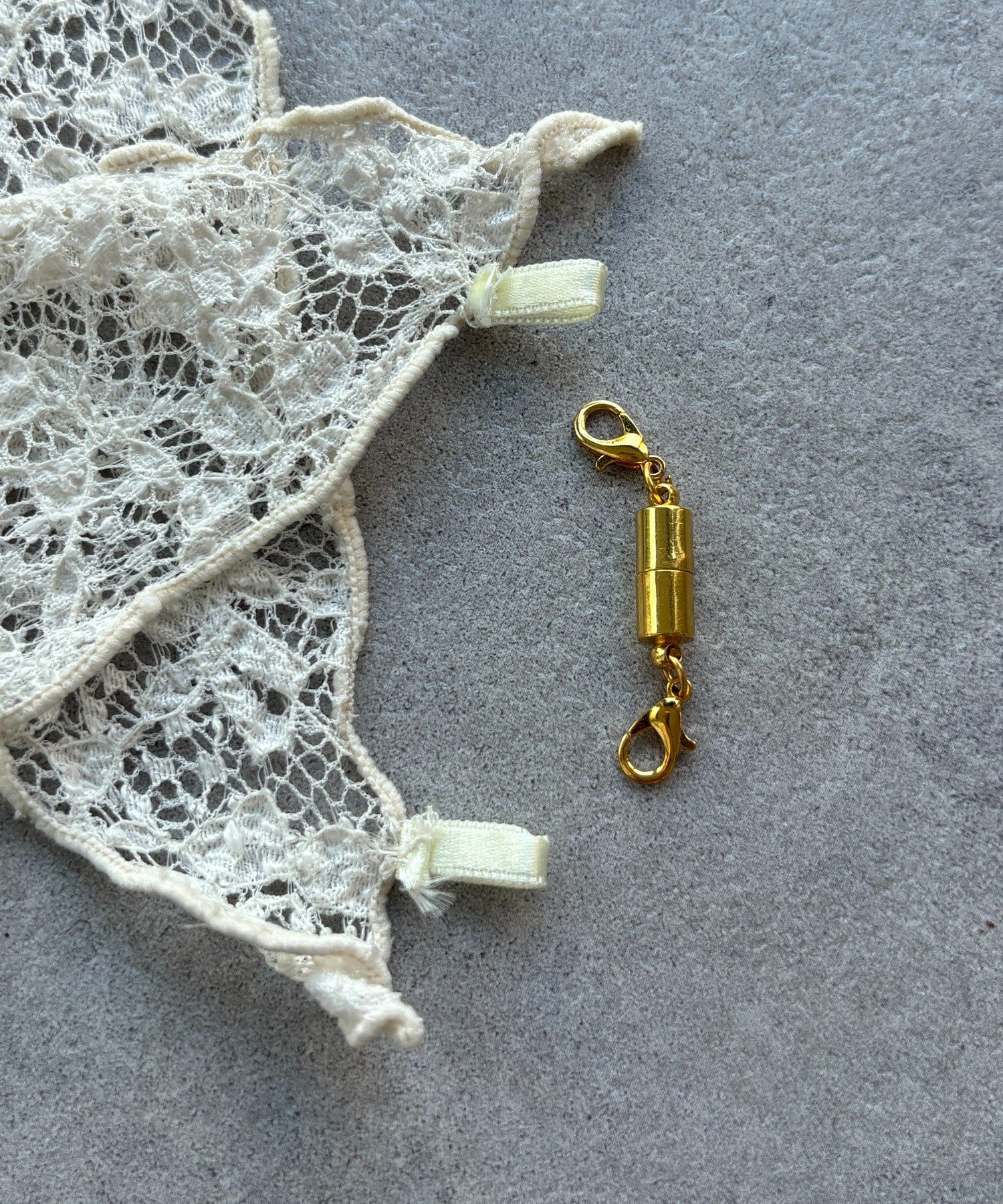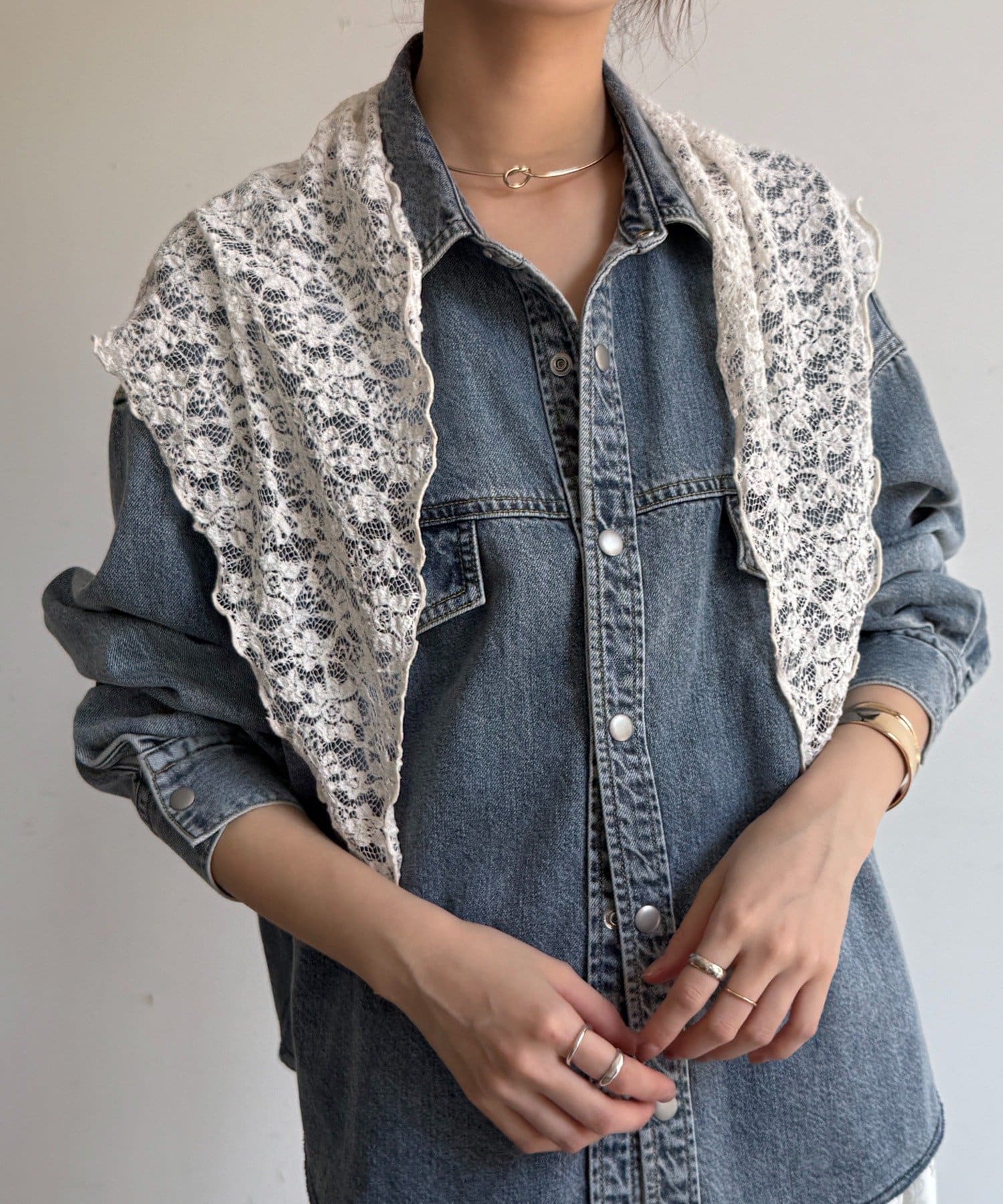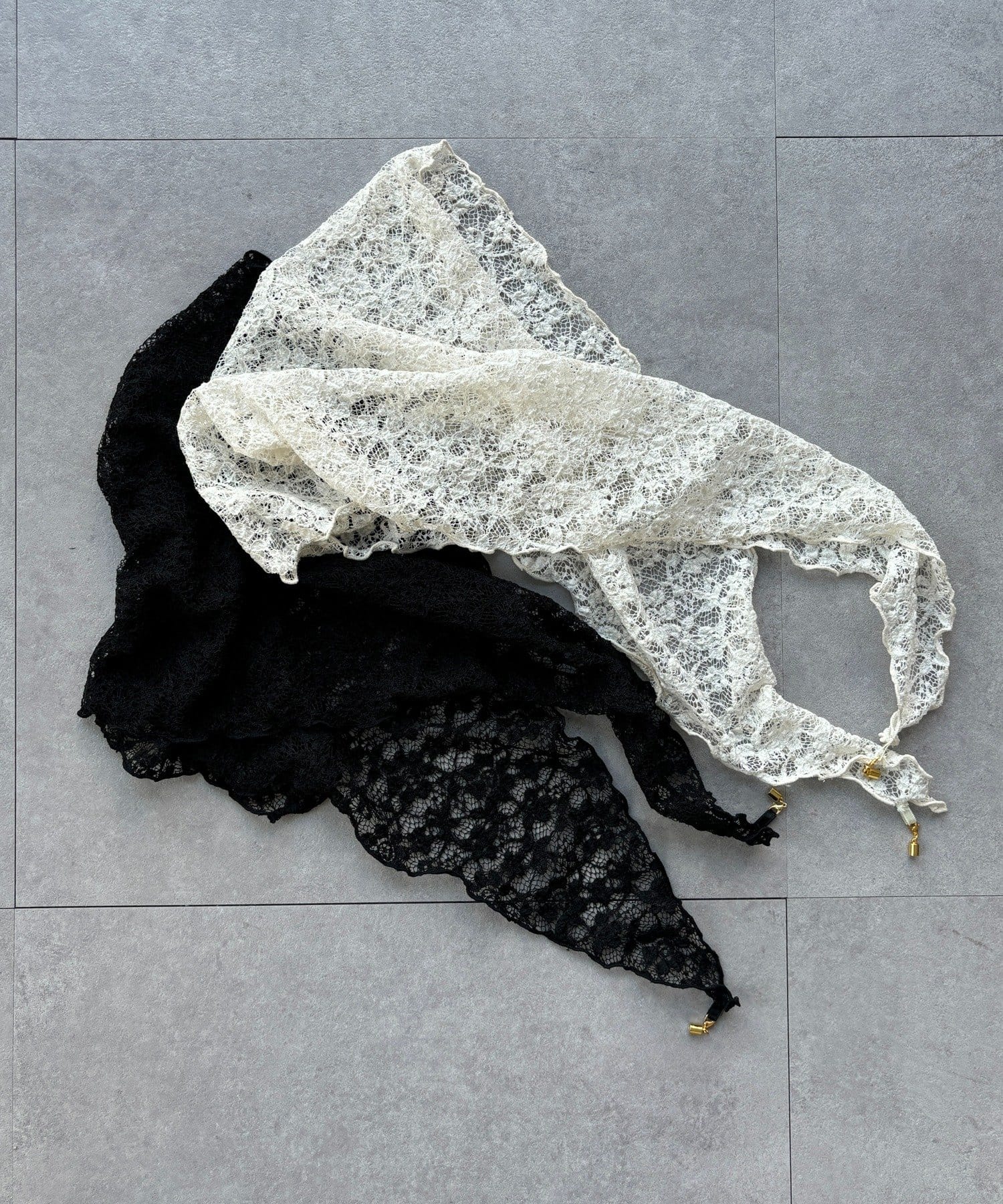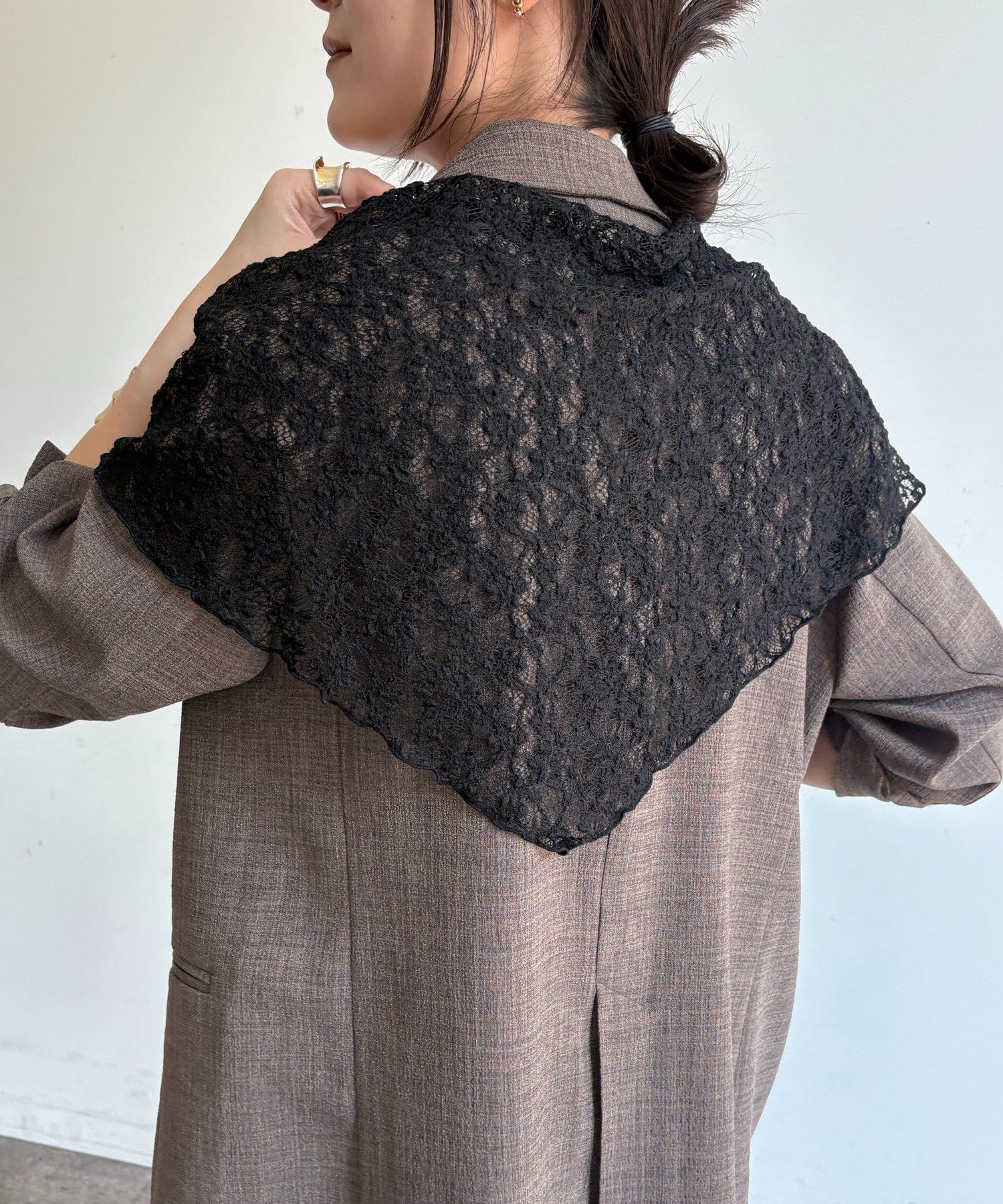 コーディネートにさりげない華やかさをプラスしてくれる、繊細なレース素材のマグネット付きスカーフ。