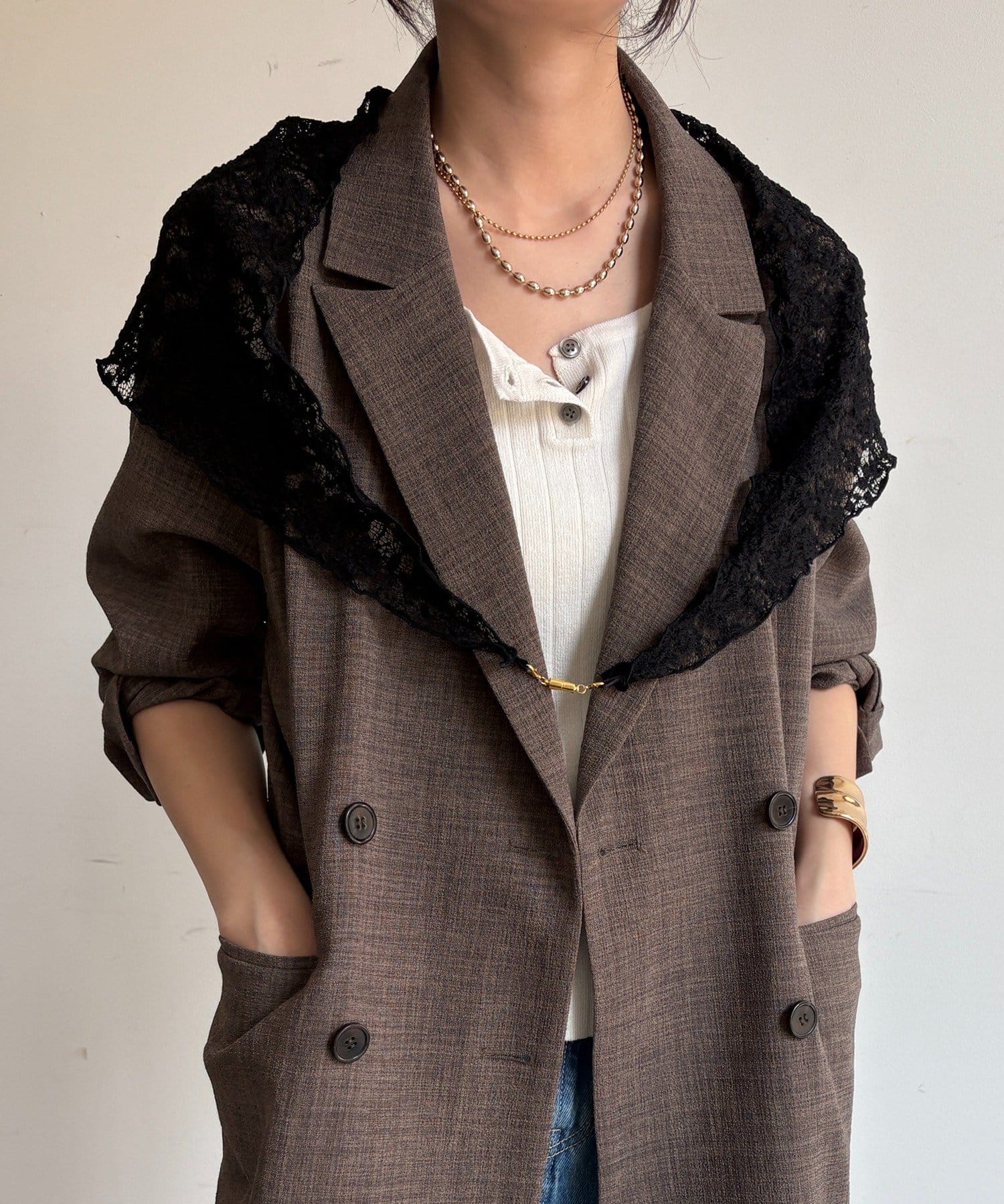シンプルなスタイリングに重ねるだけで、ぐっと女性らしくトレンド感のある着こなしが完成するアレンジアイテムです。