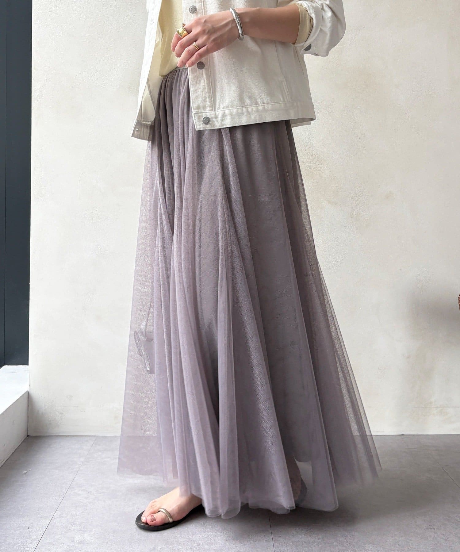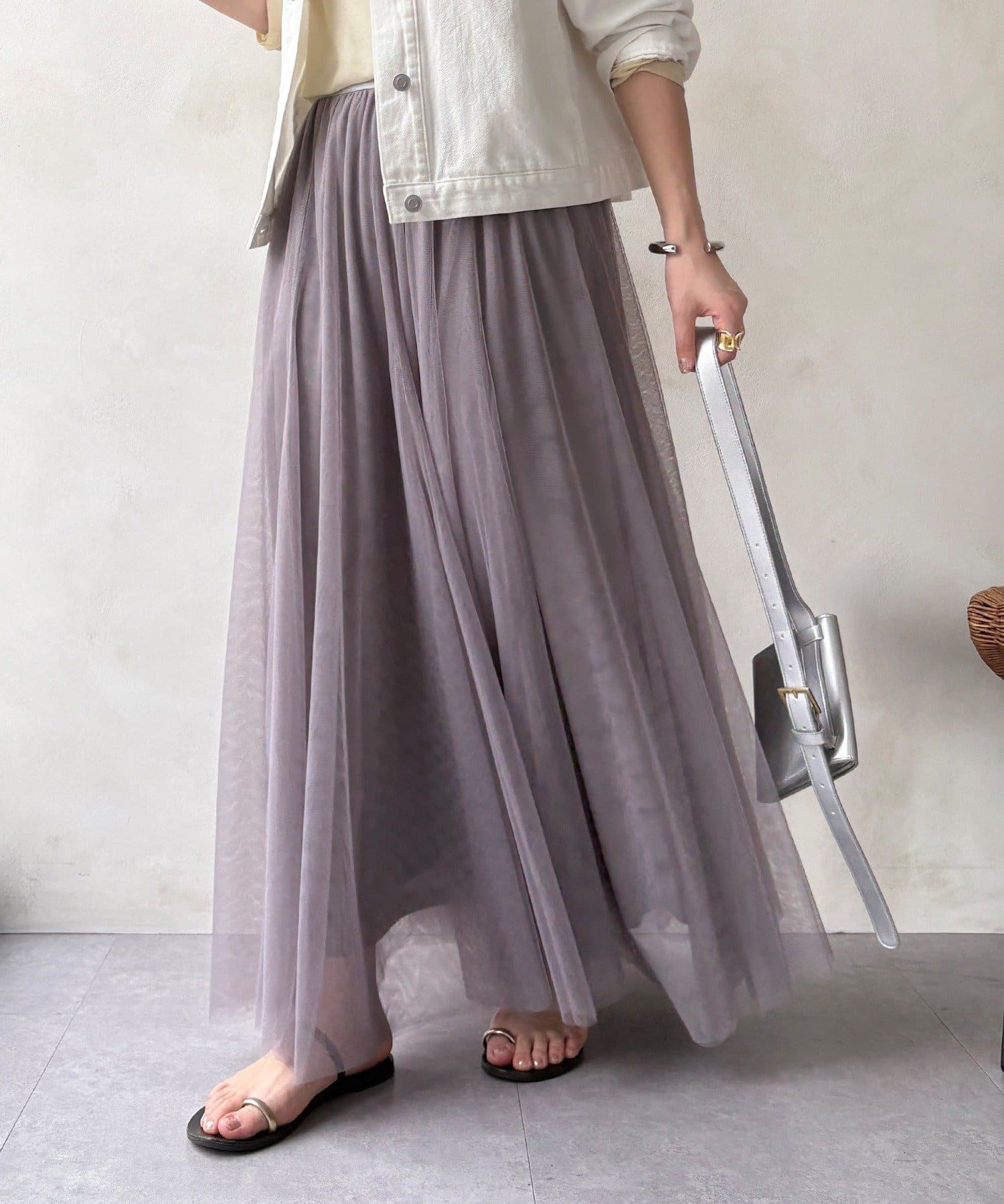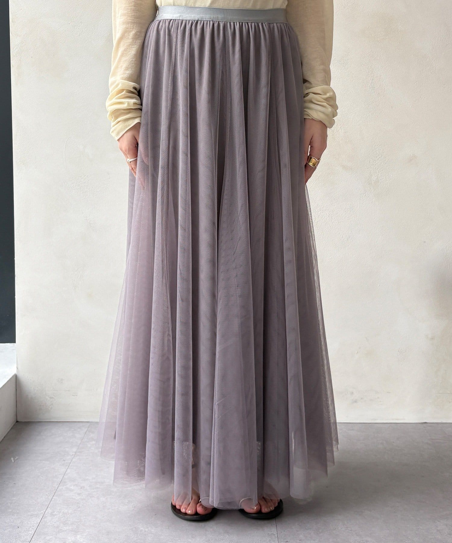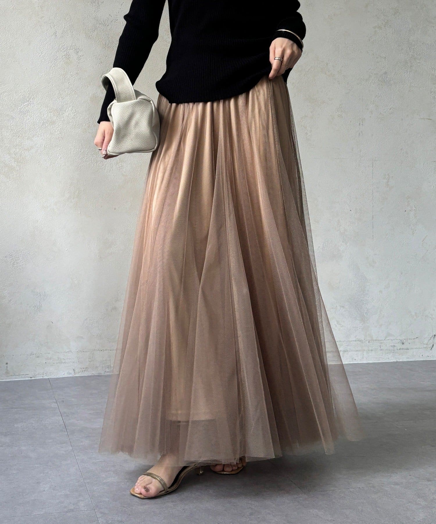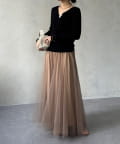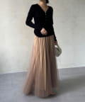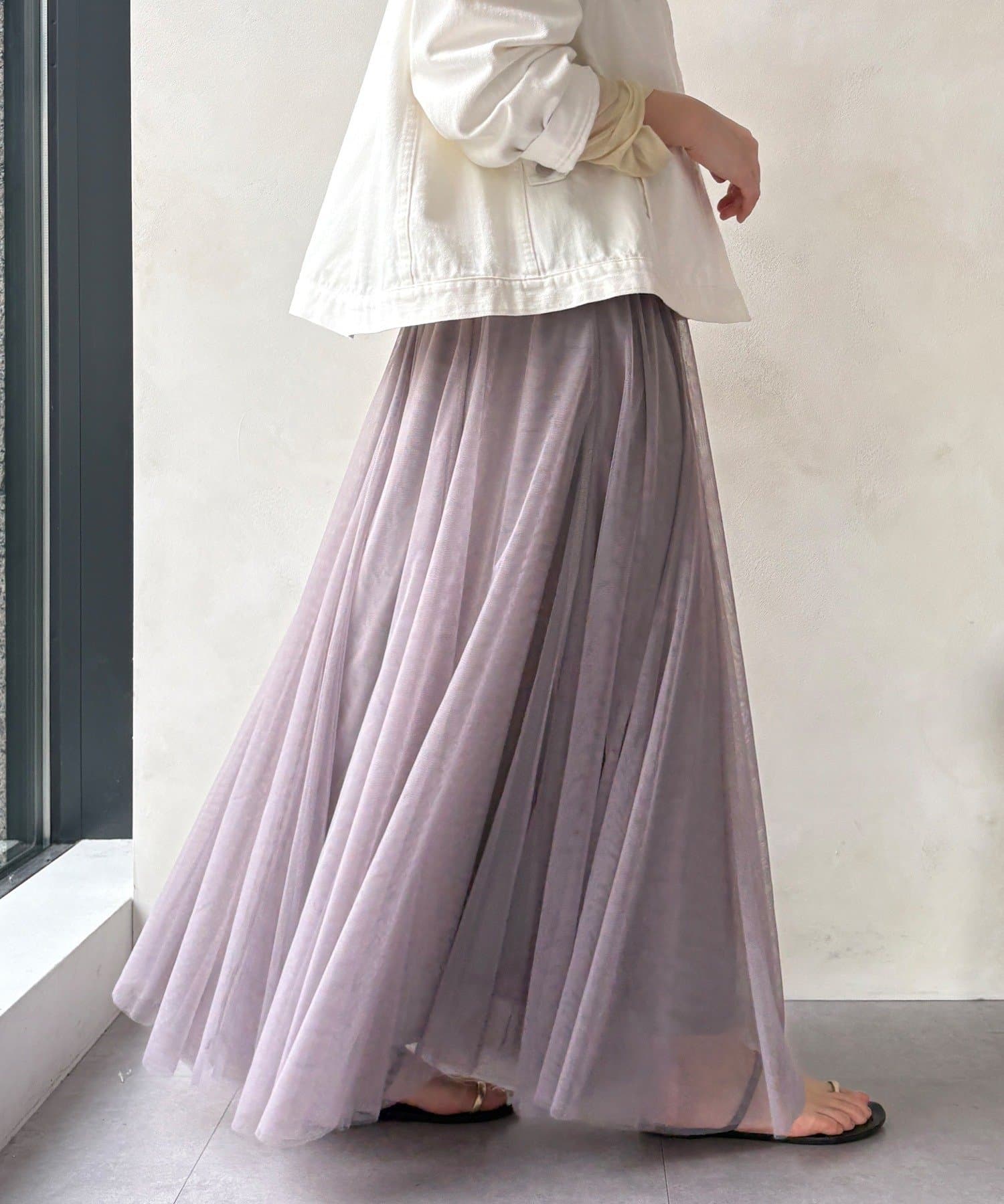 大人フェミニンに揺れるチュールフレアスカート