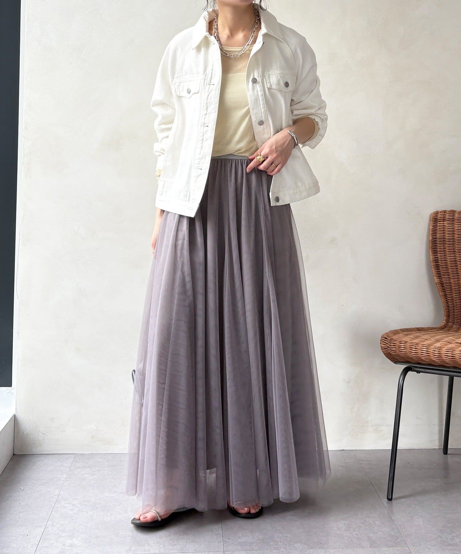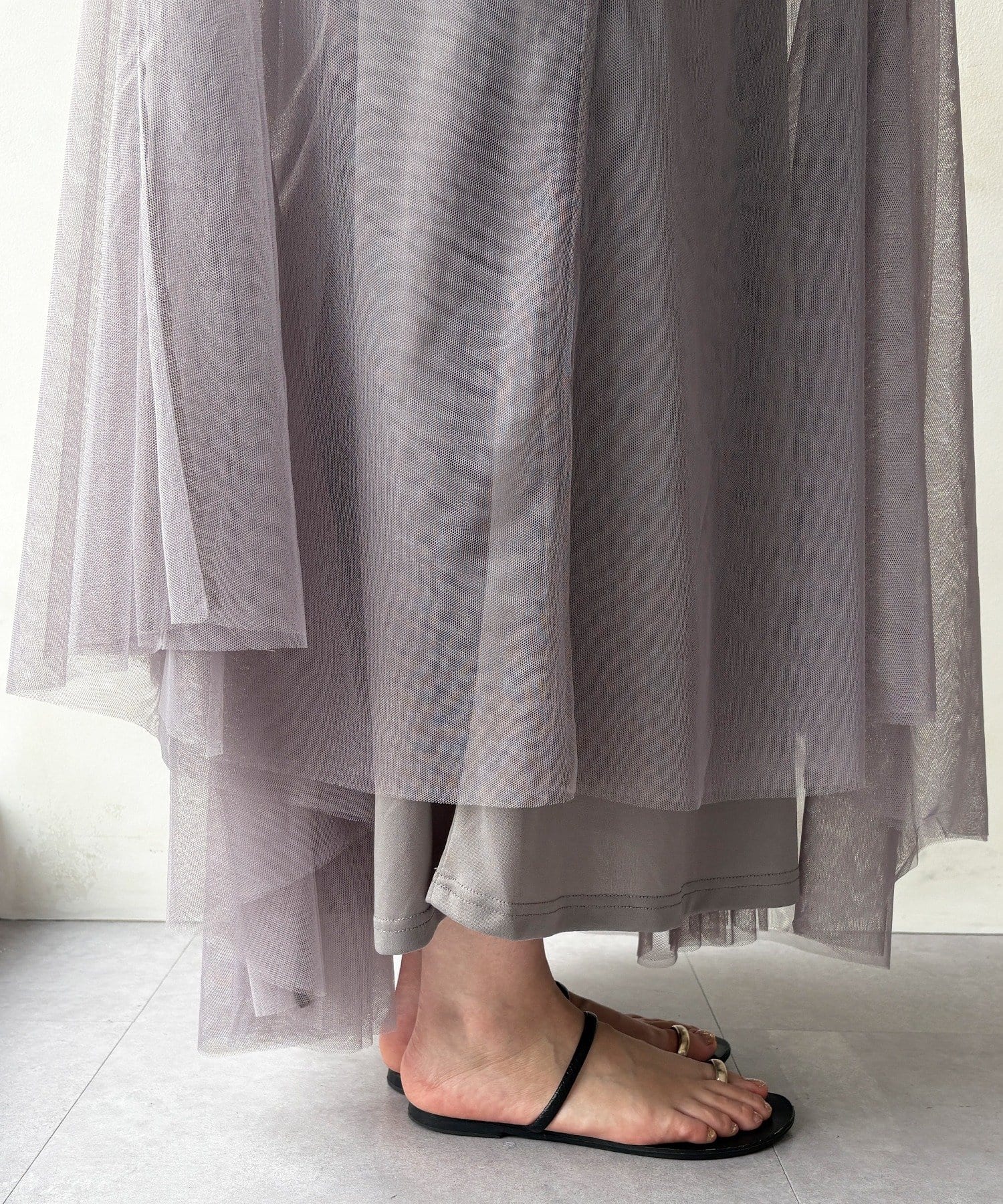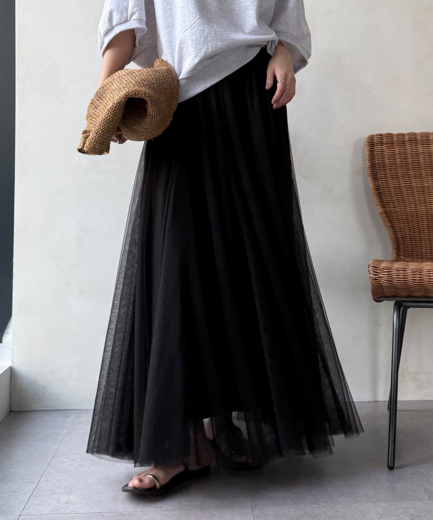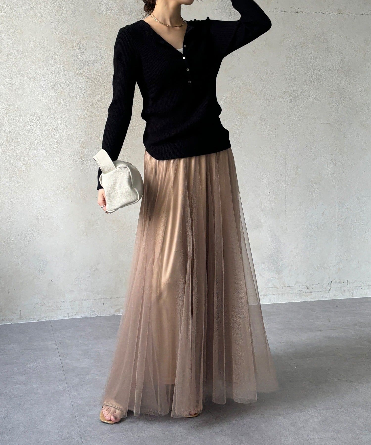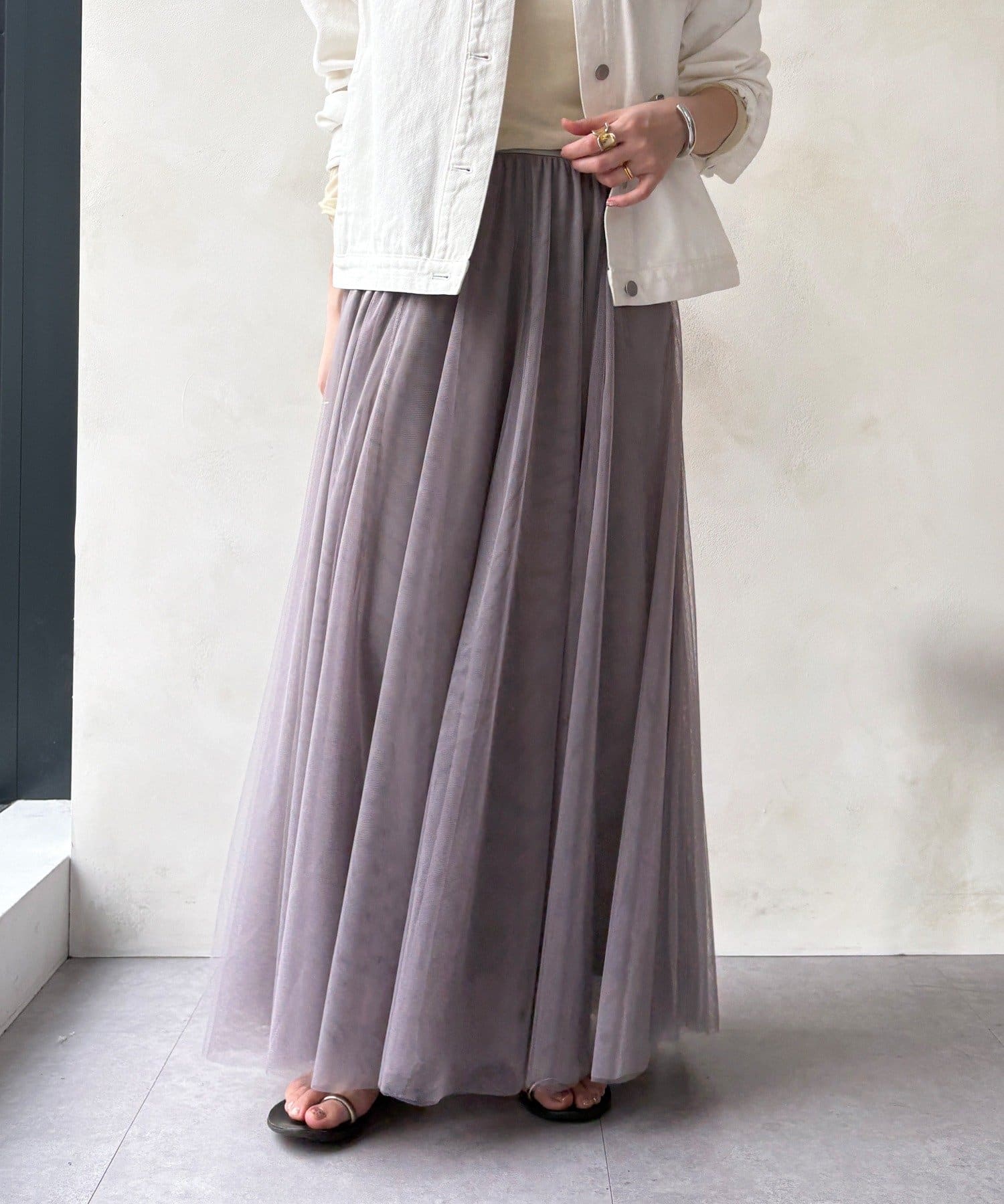 大人フェミニンに揺れるチュールフレアスカート