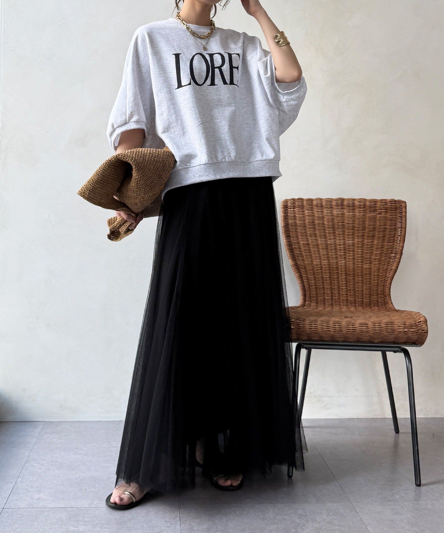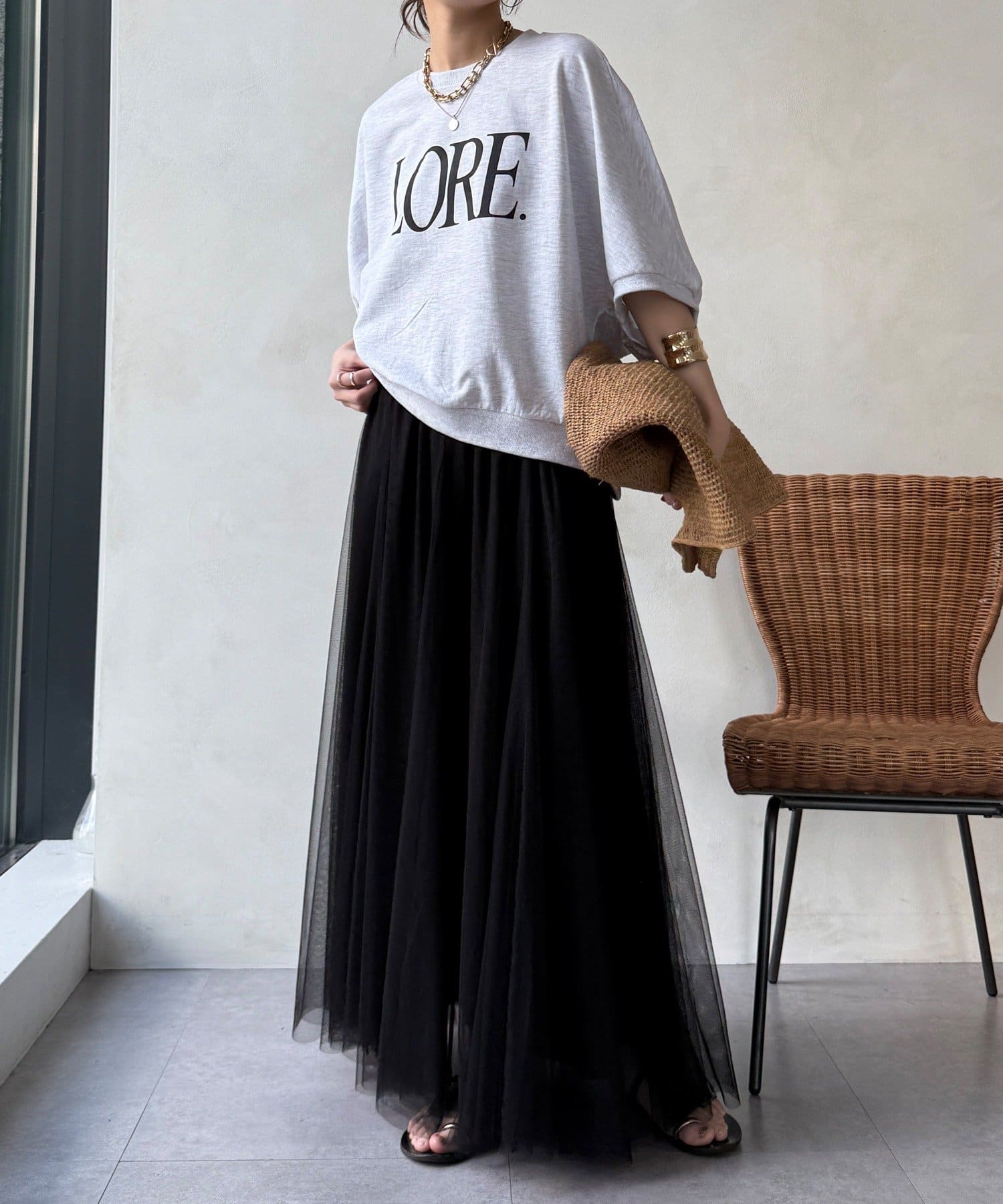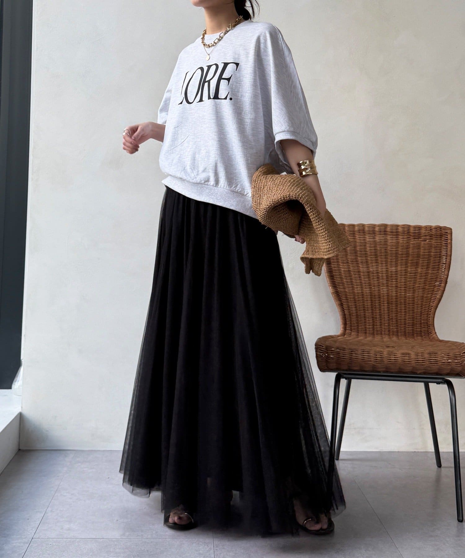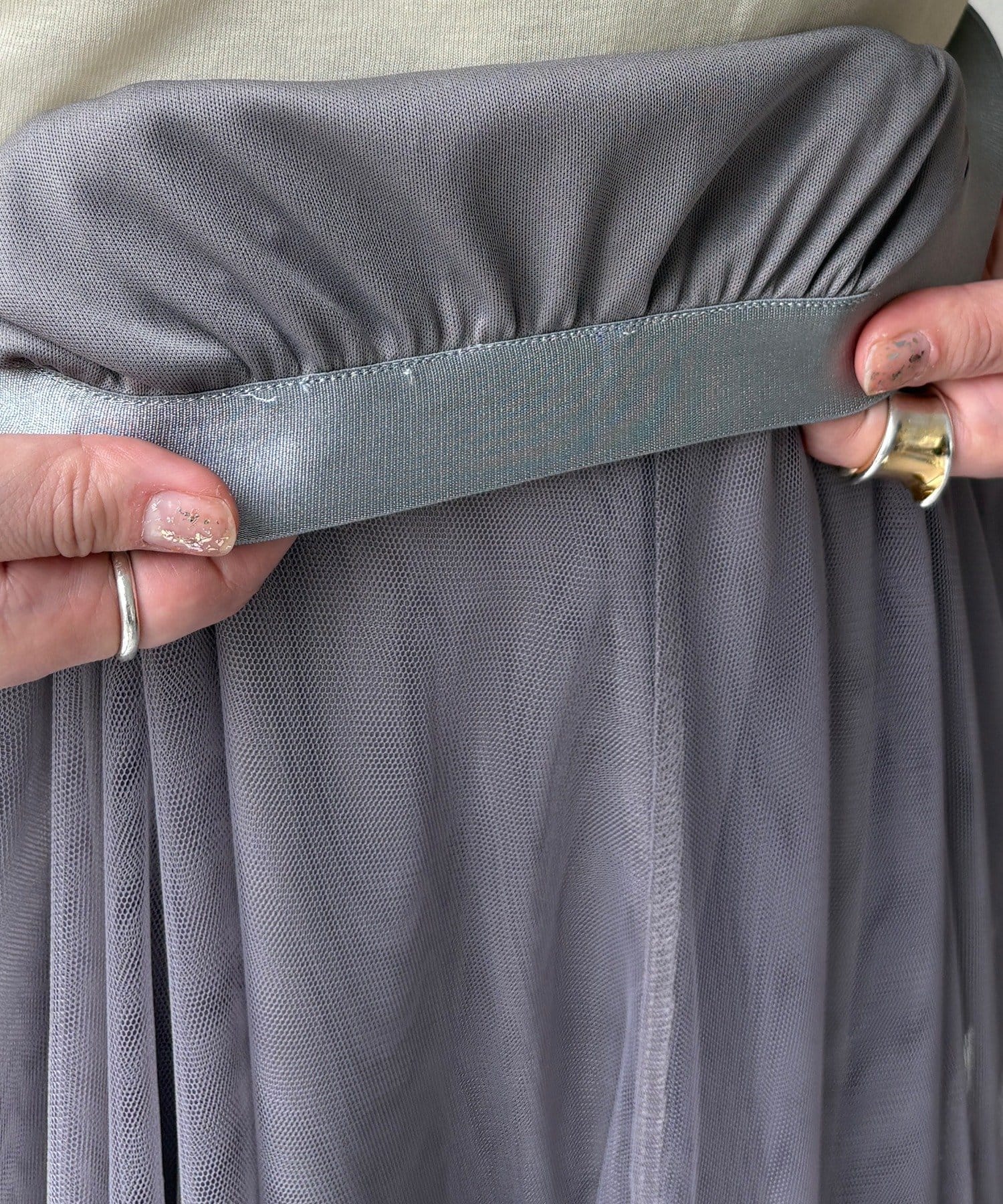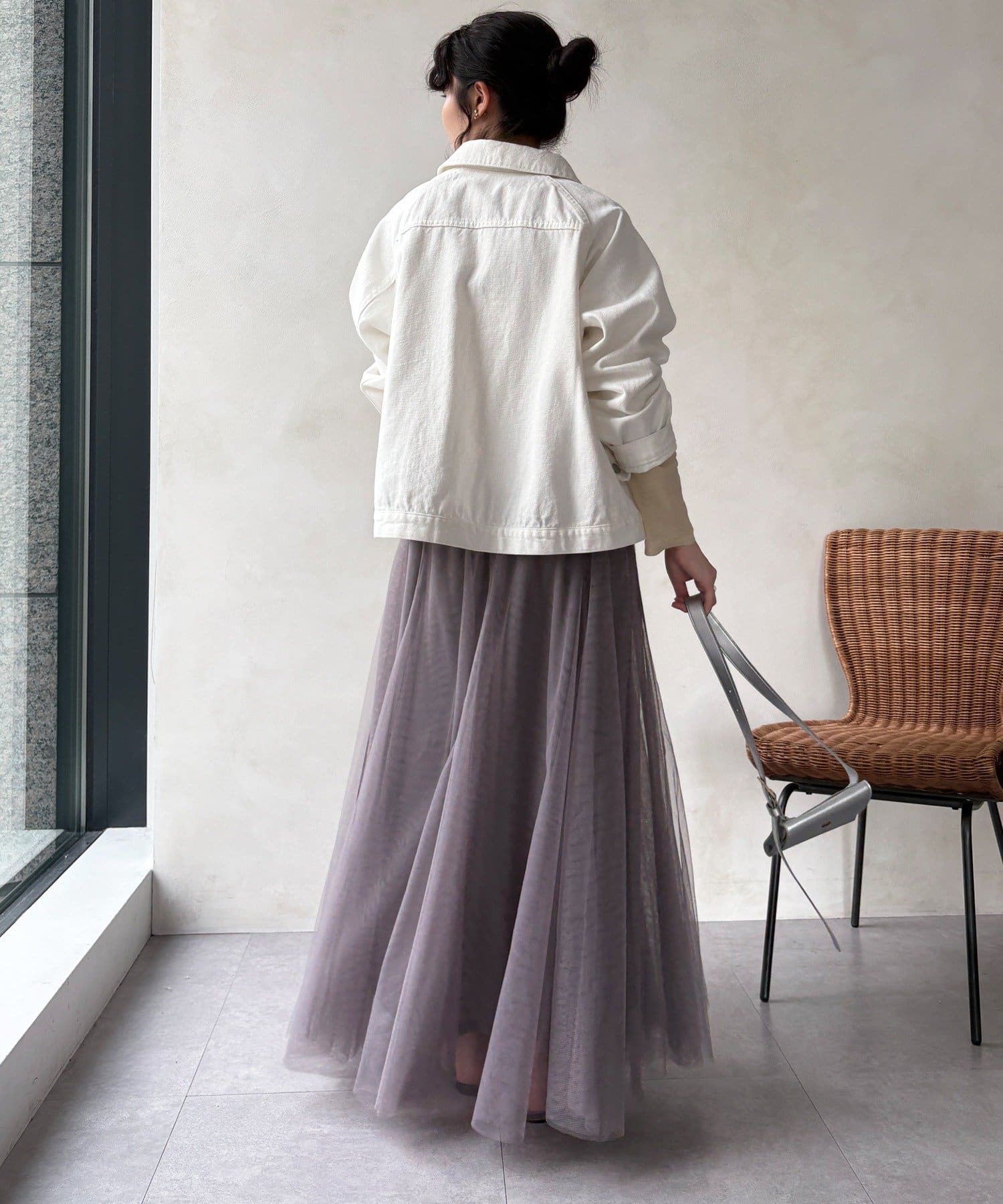 柔らかく揺れるチュールが、上品で女性らしい雰囲気を演出します。