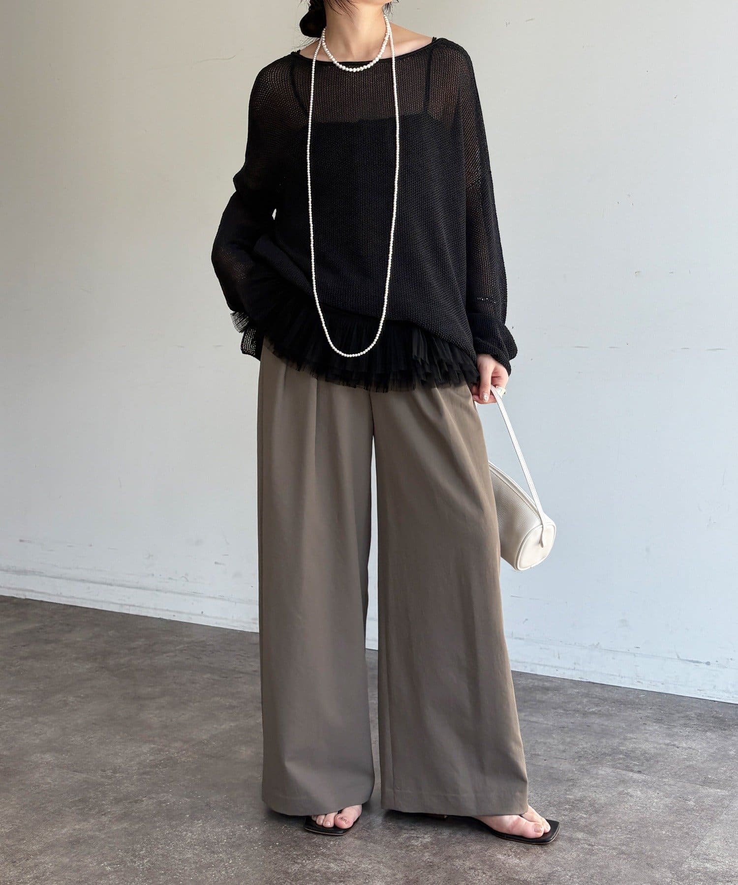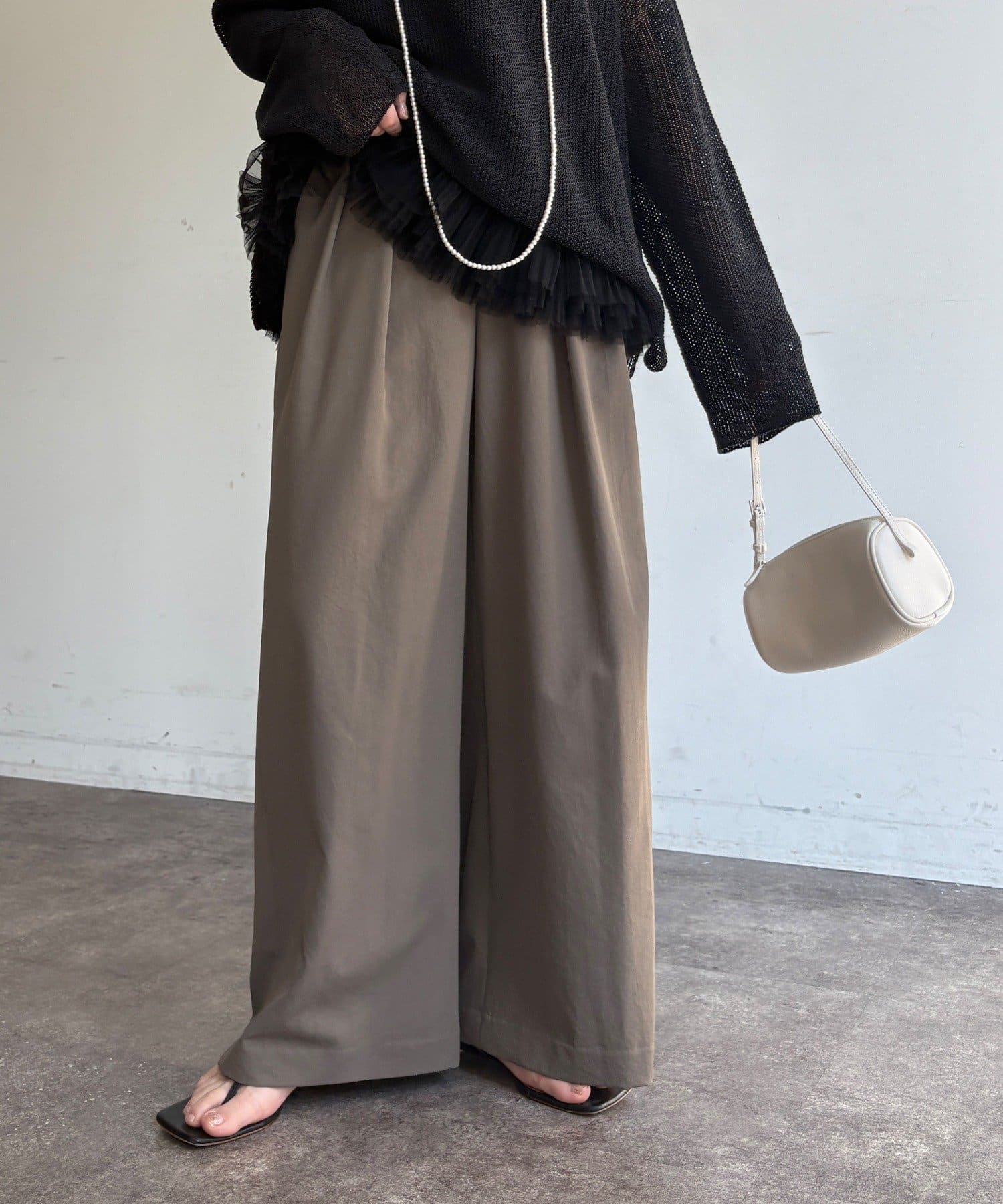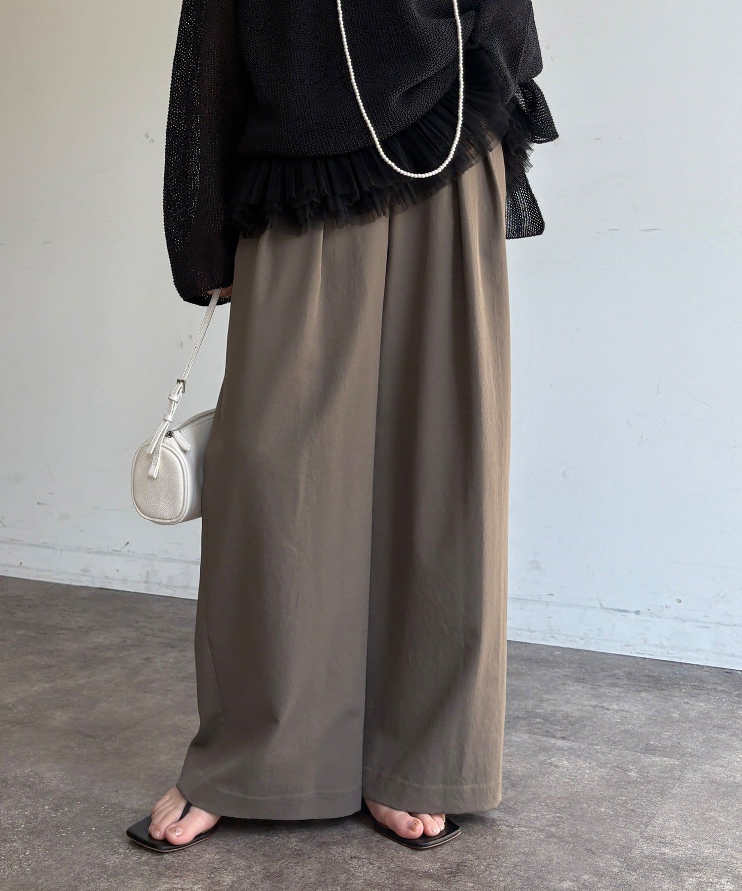 脚のラインを拾わないゆったりとしたシルエットは、驚くほど軽やかな穿き心地。
