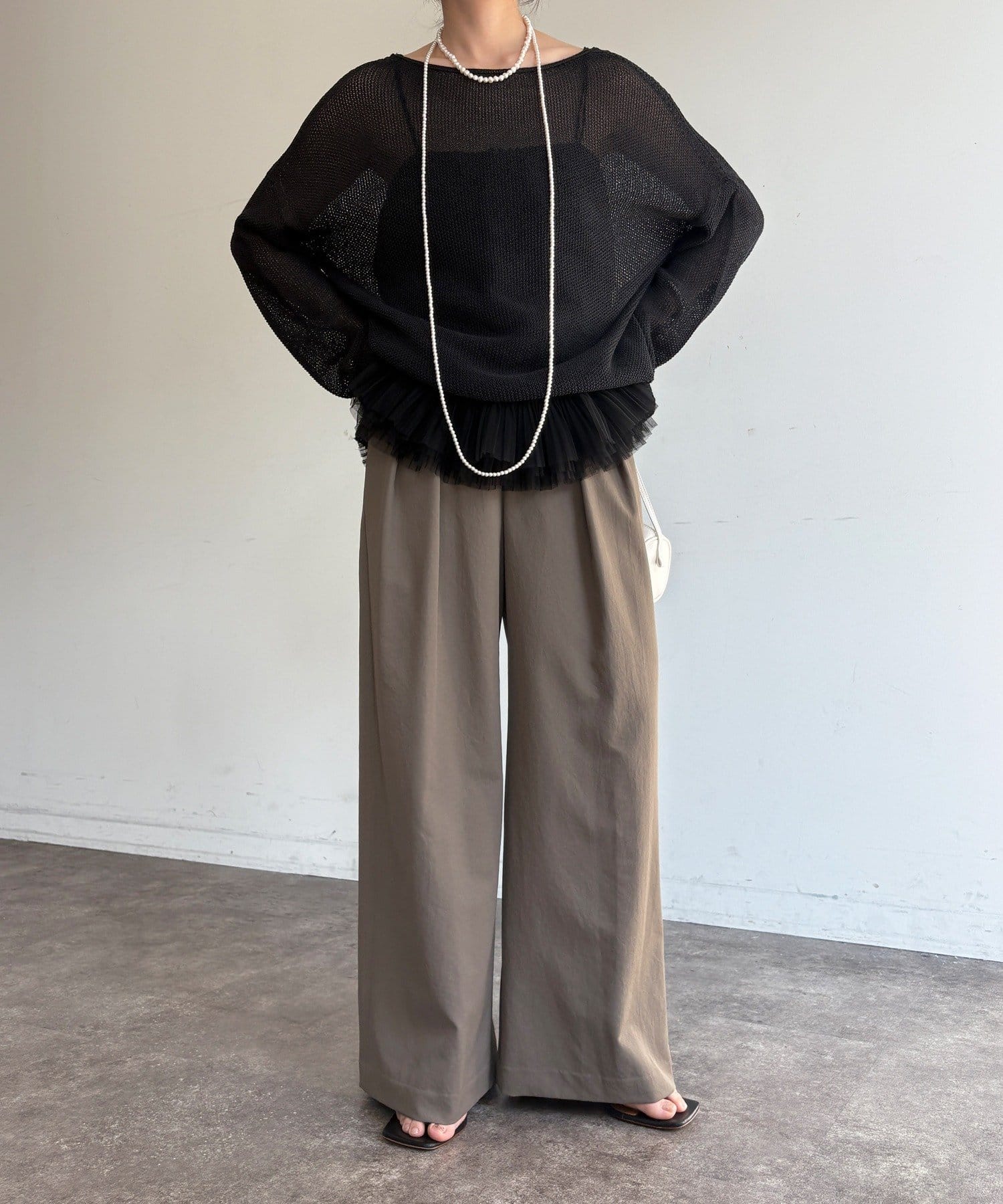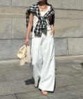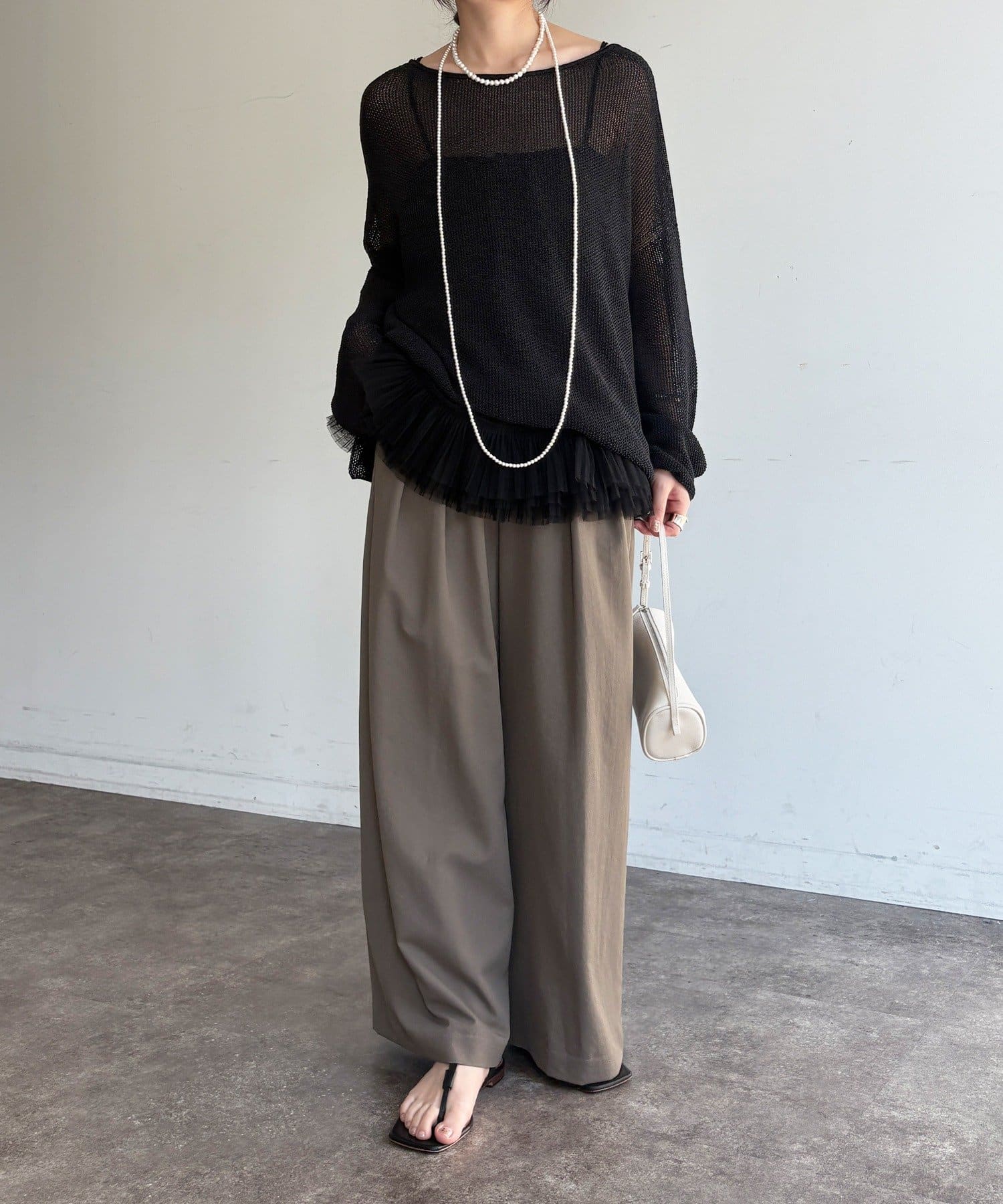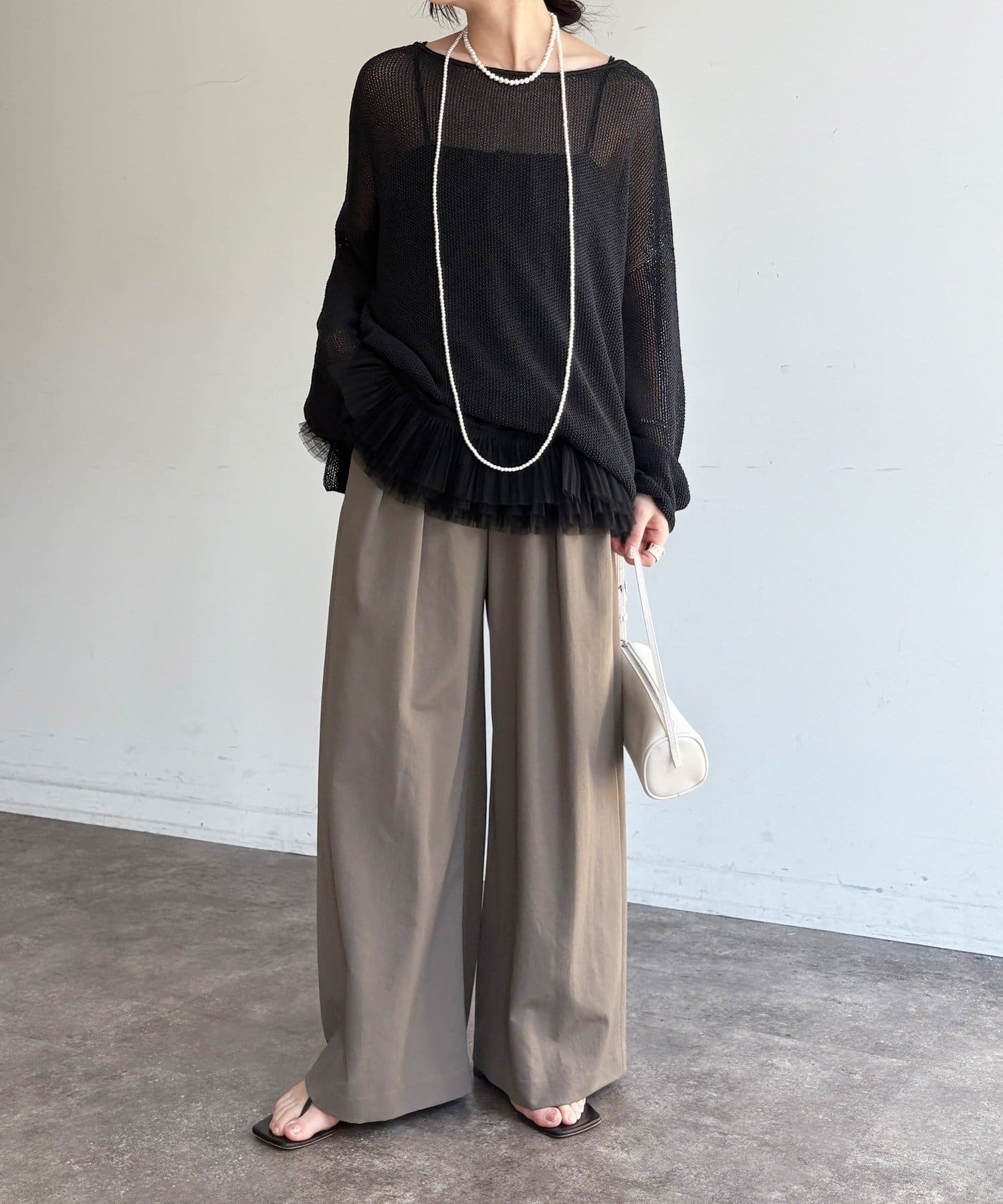 脚のラインを拾わないゆったりとしたシルエットは、驚くほど軽やかな穿き心地。