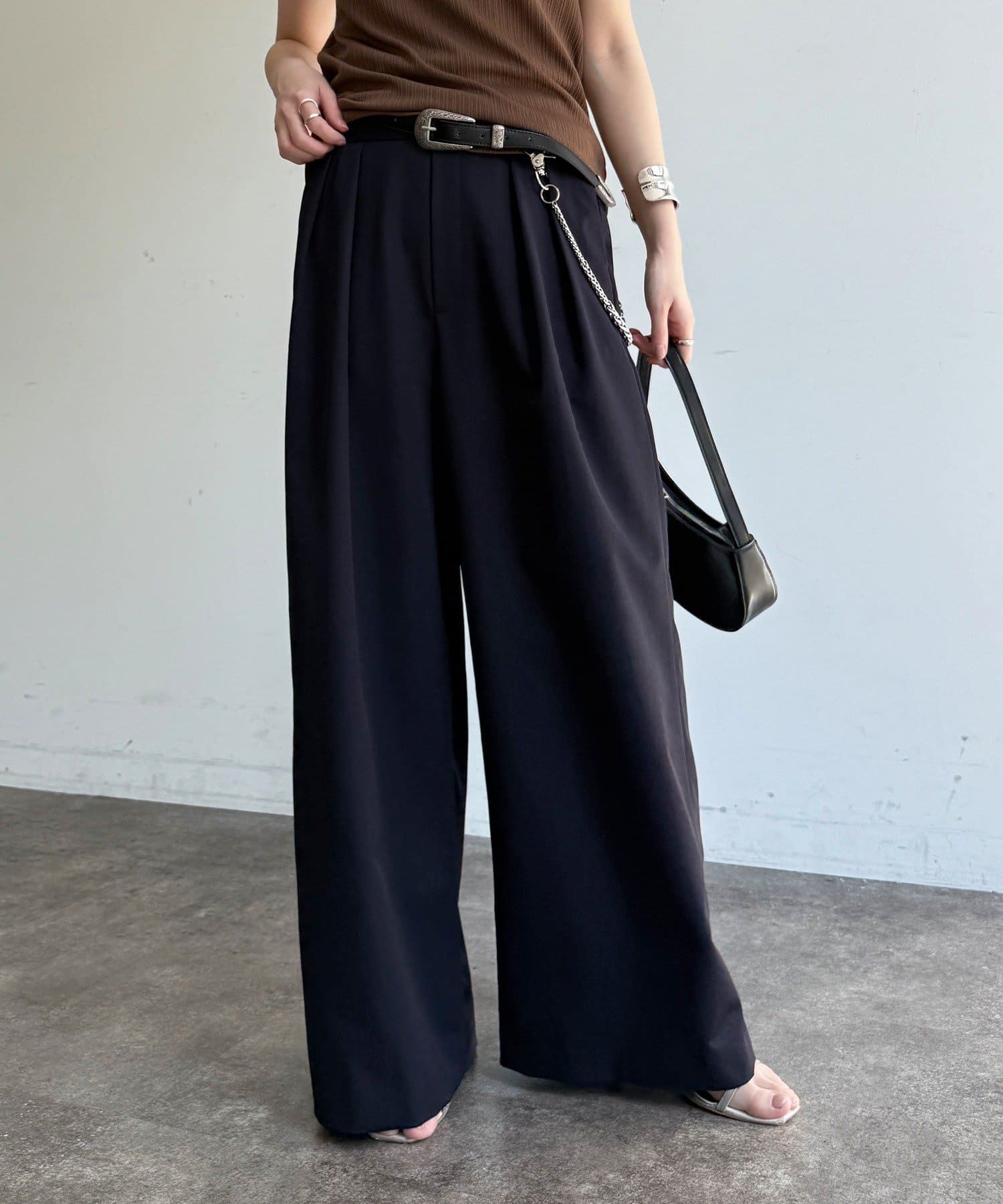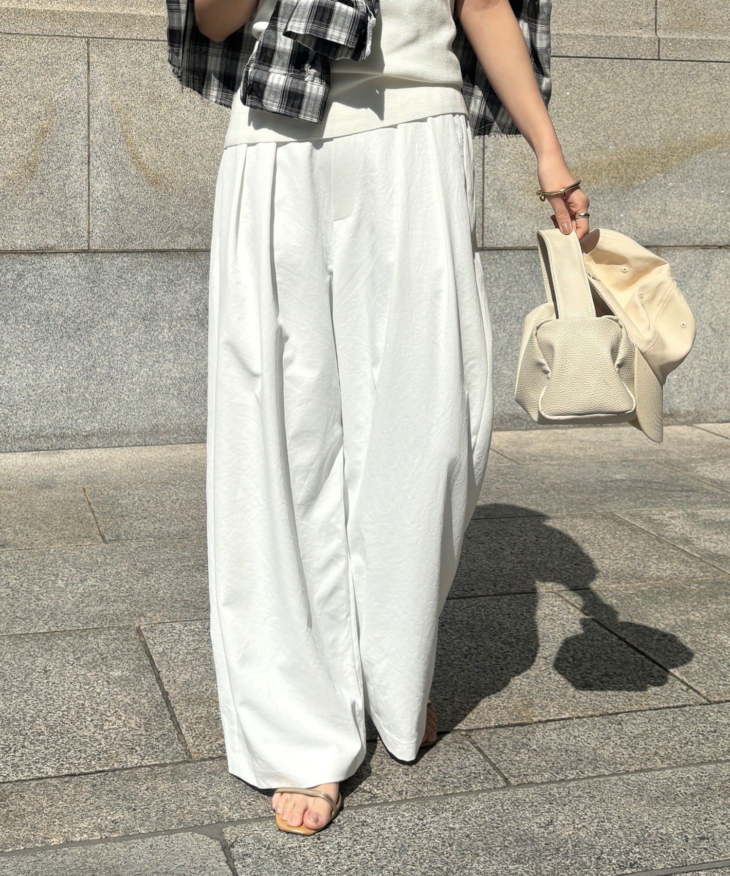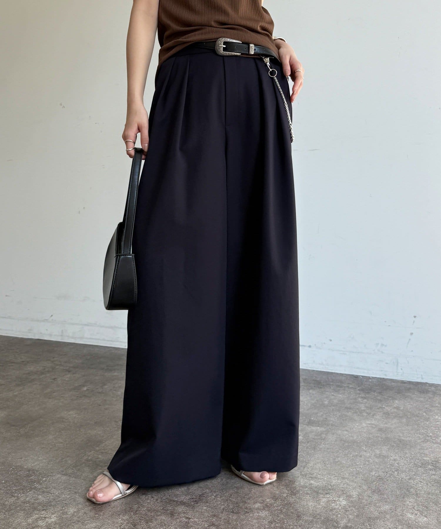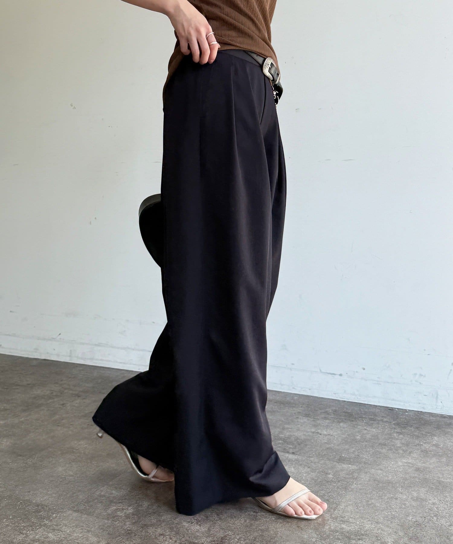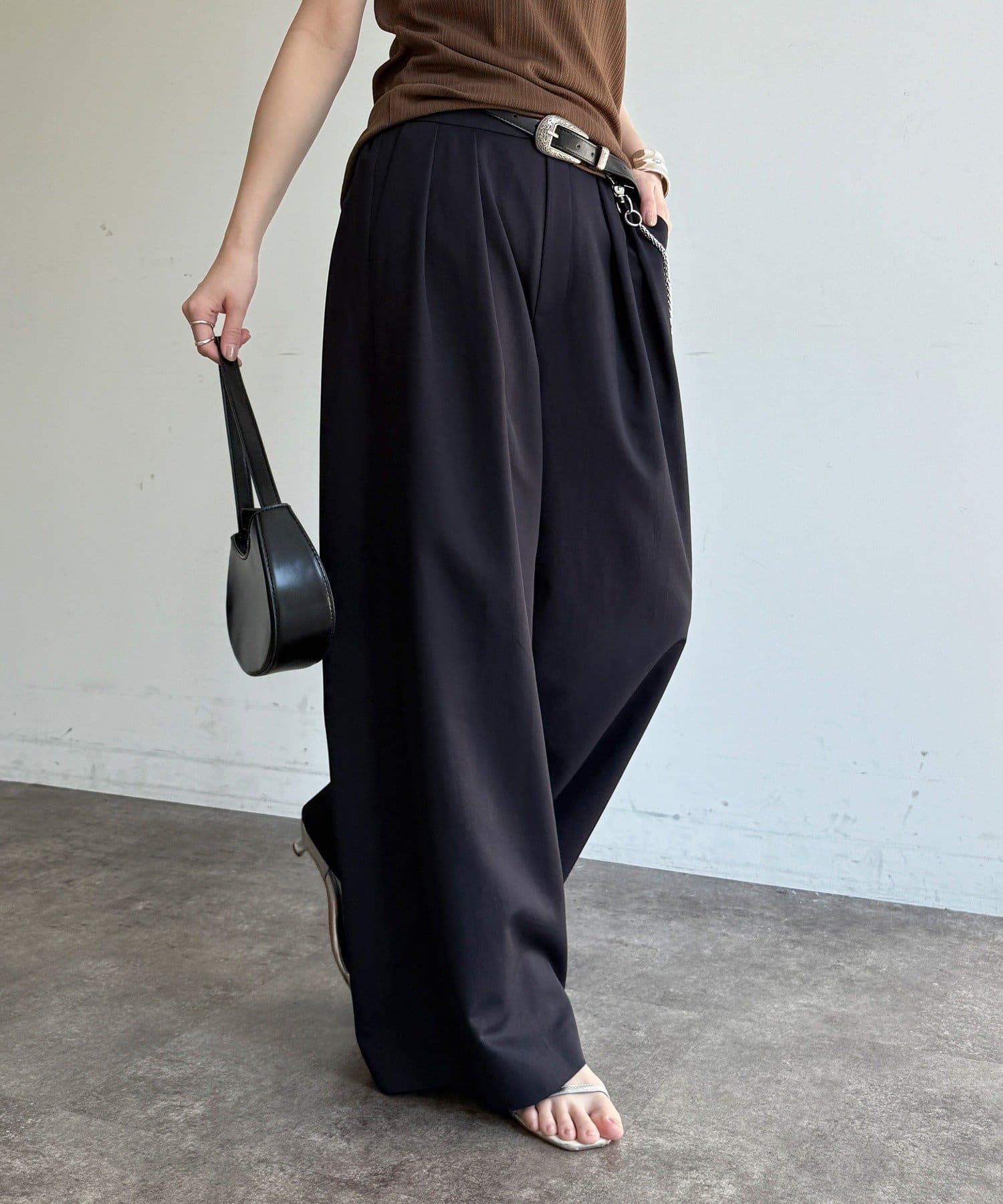 さらにフロントのタックが腰回りを自然にカバーし、穿くだけでマイナス3キロの細見えを演出します。