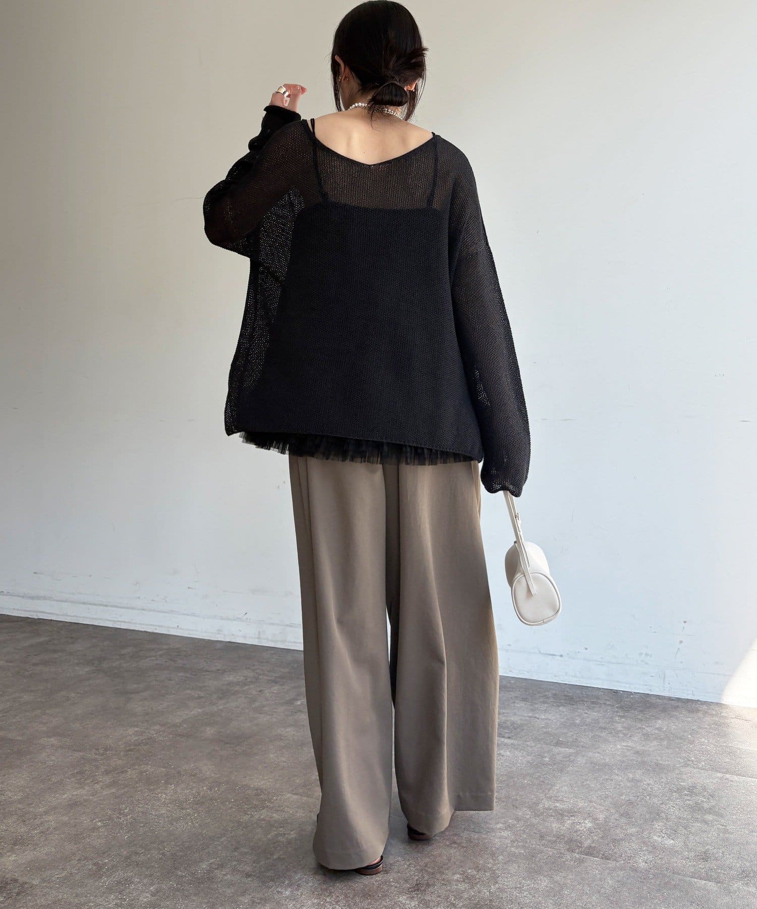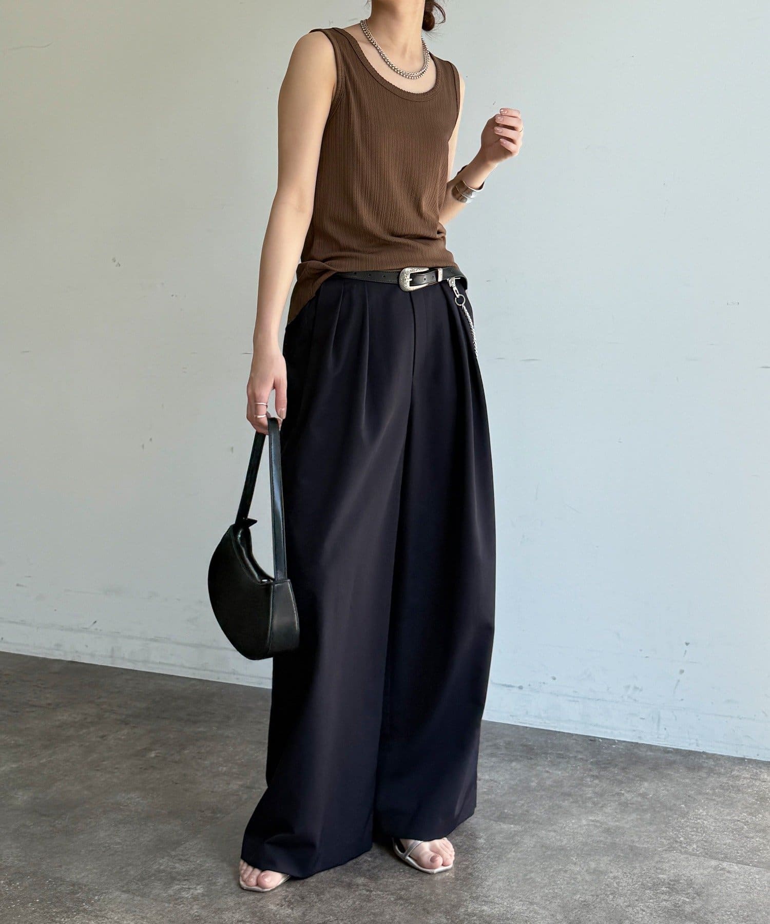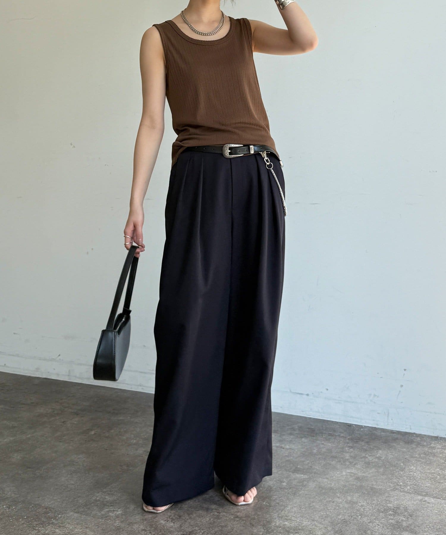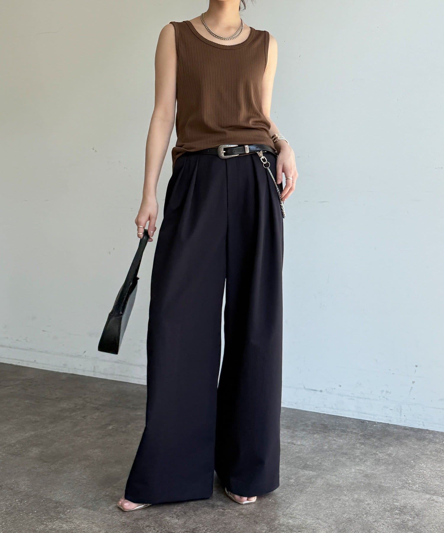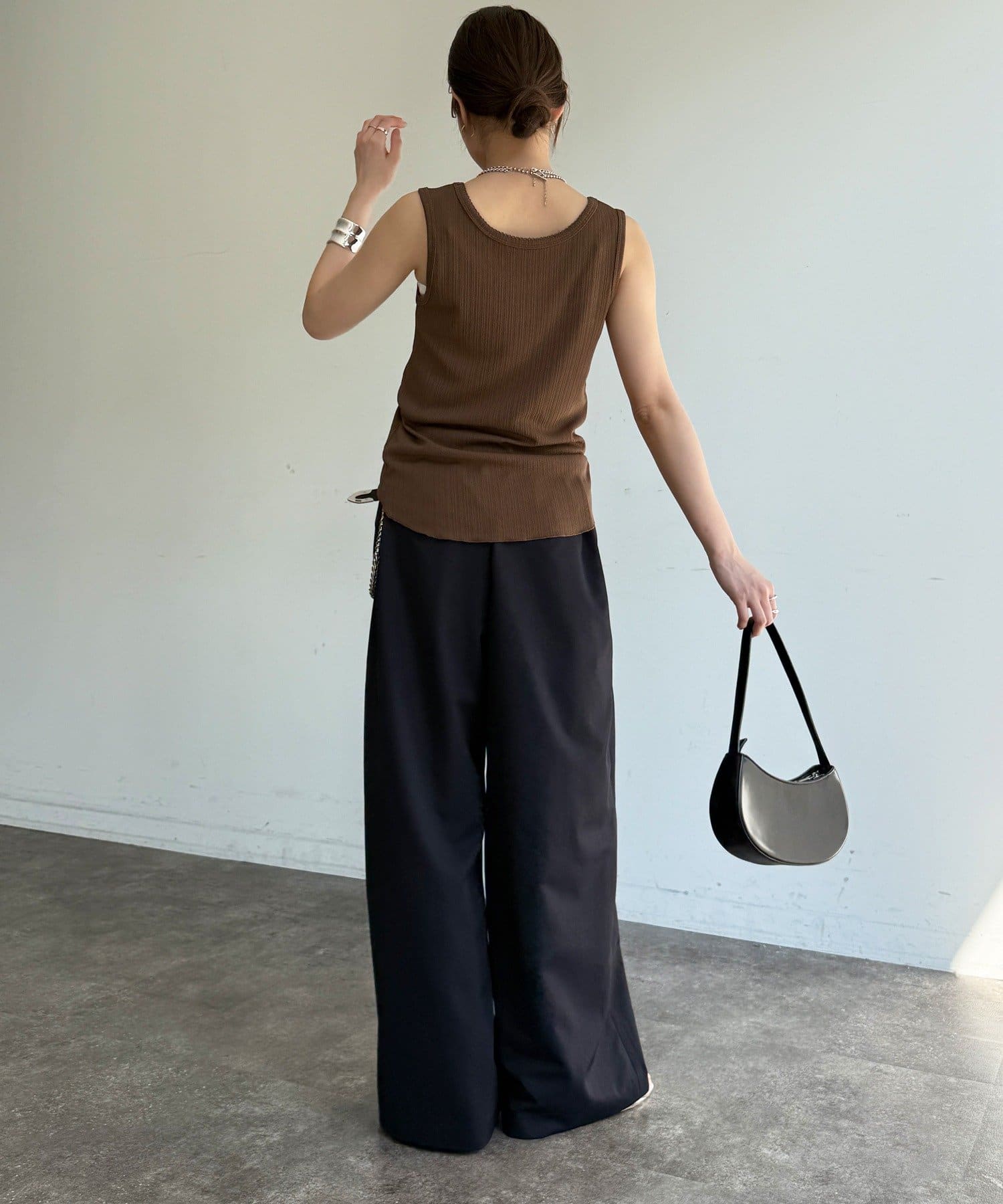 さらにフロントのタックが腰回りを自然にカバーし、穿くだけでマイナス3キロの細見えを演出します。