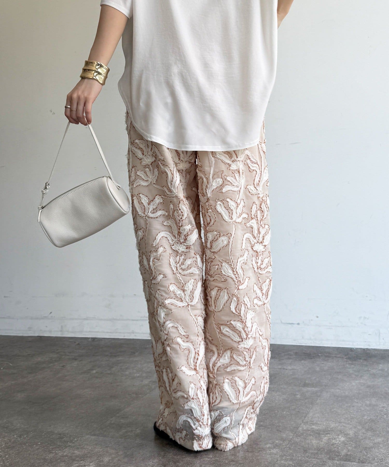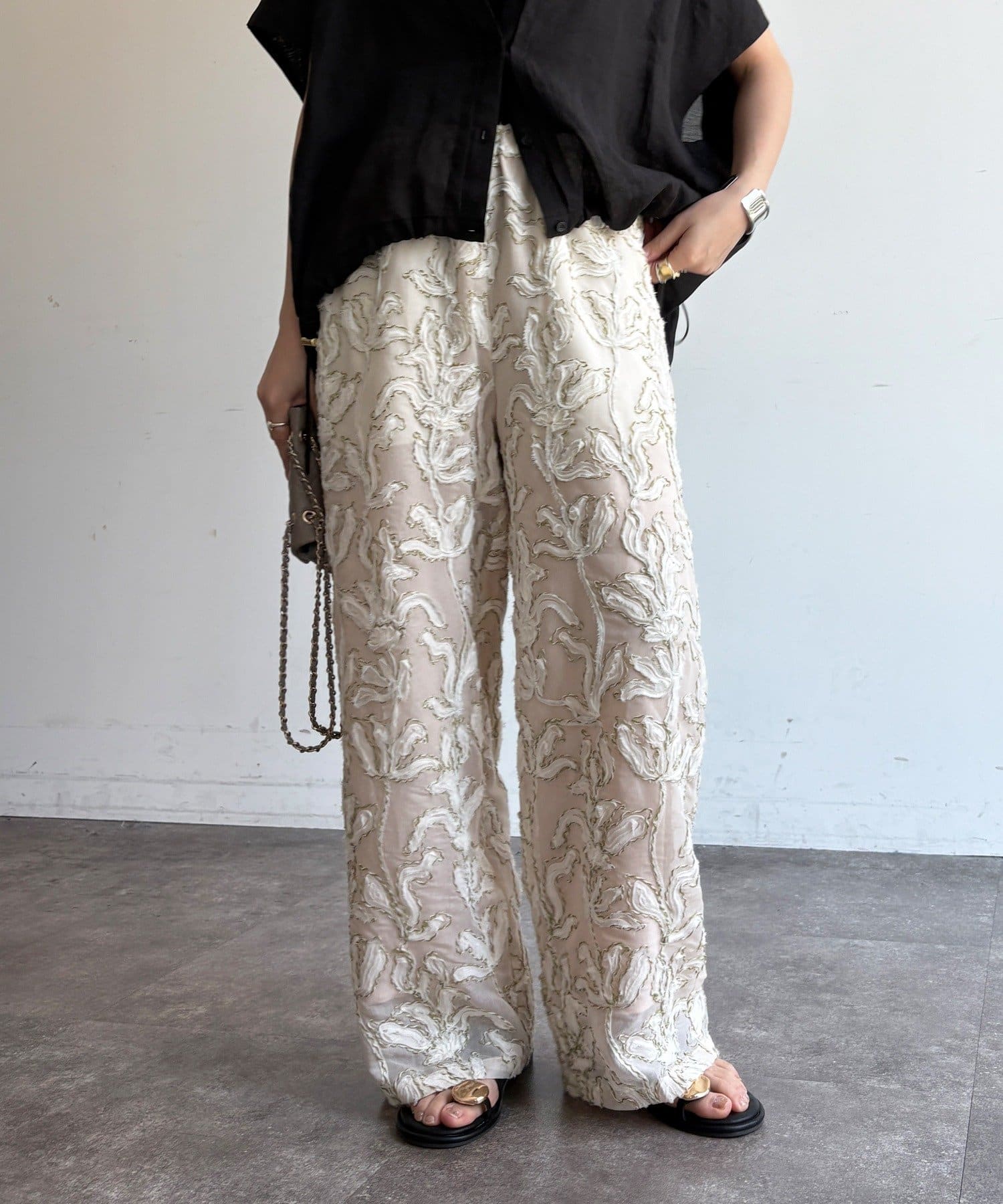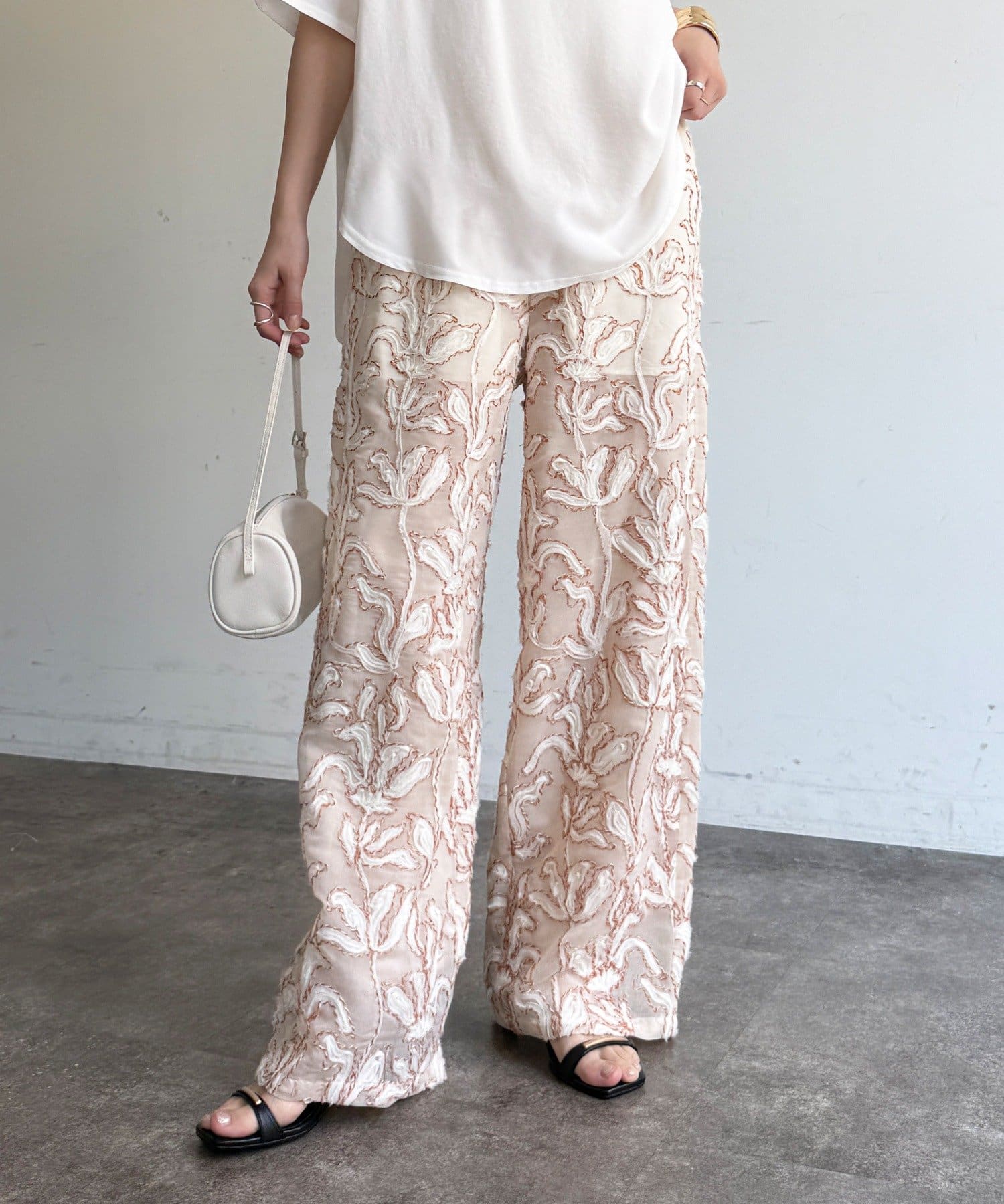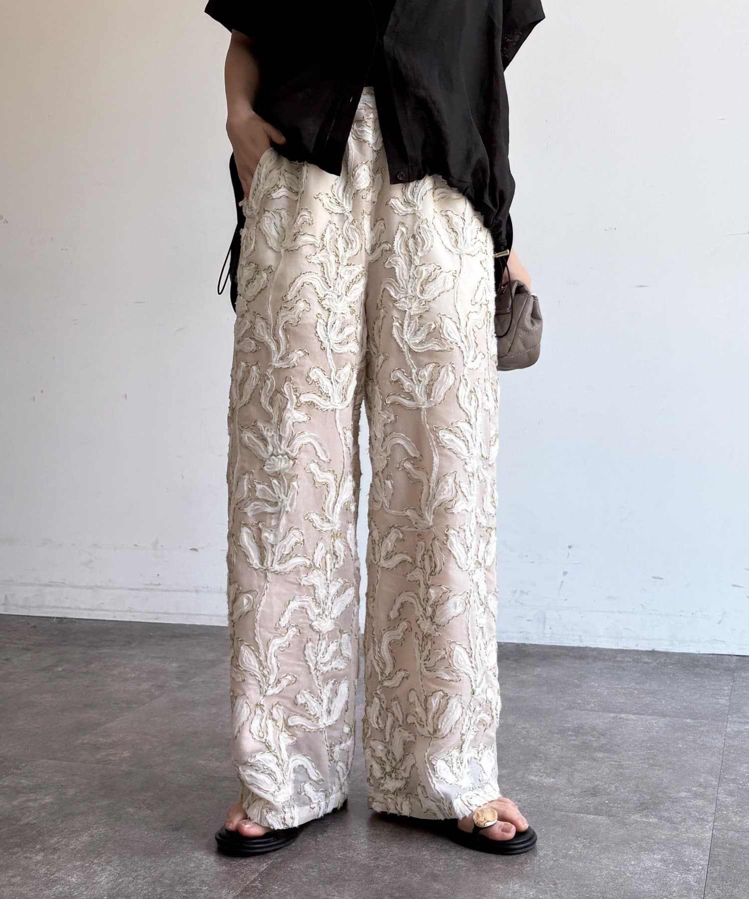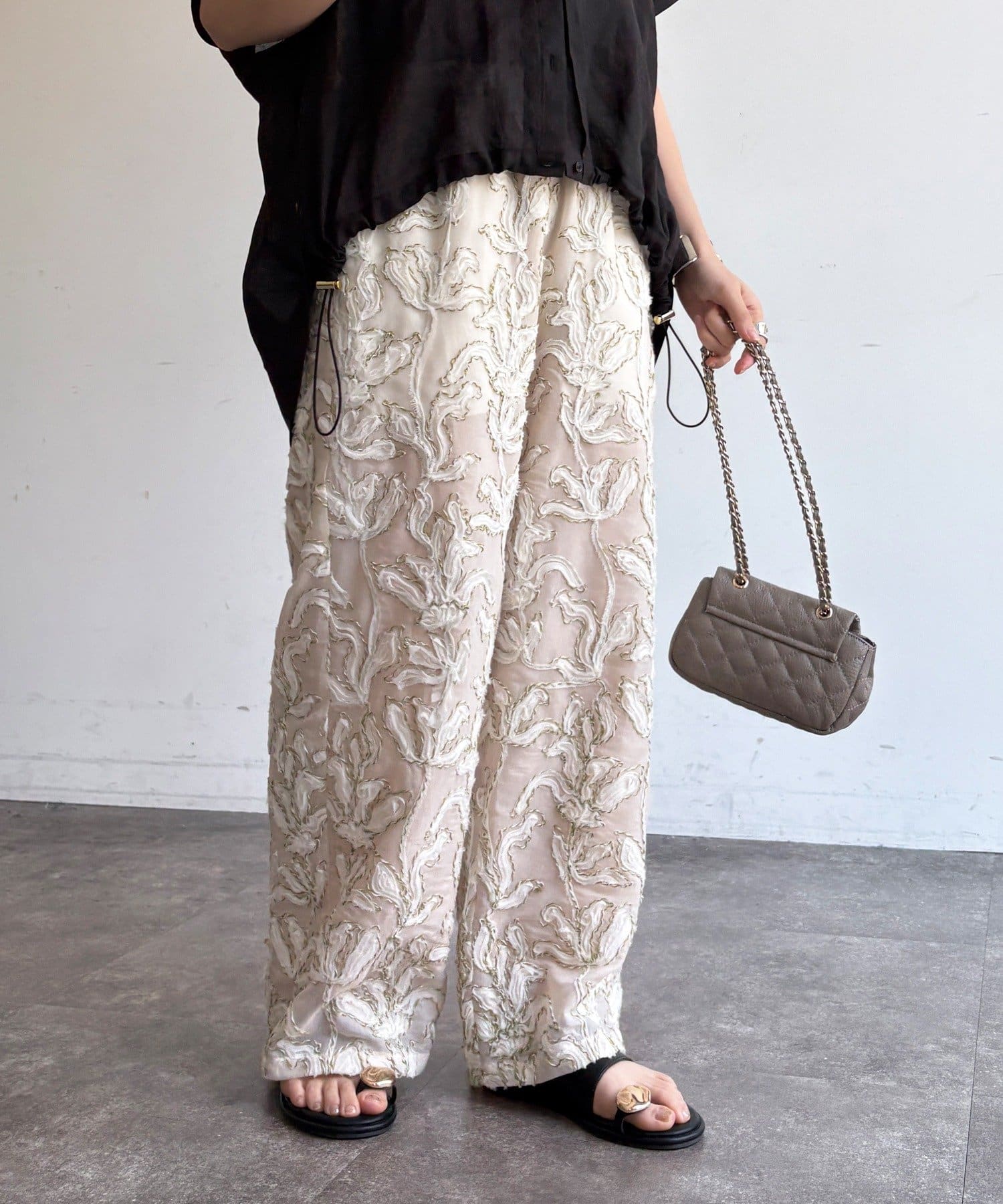 DOUDOU(ドゥドゥ) 【WEB限定】ジャガード刺繍イージーパンツ