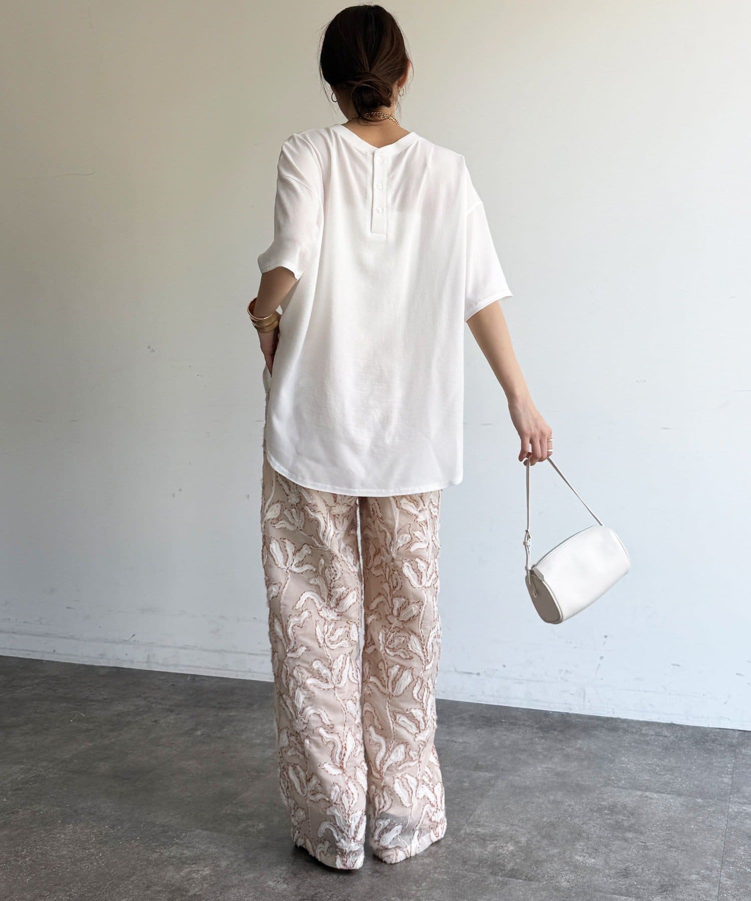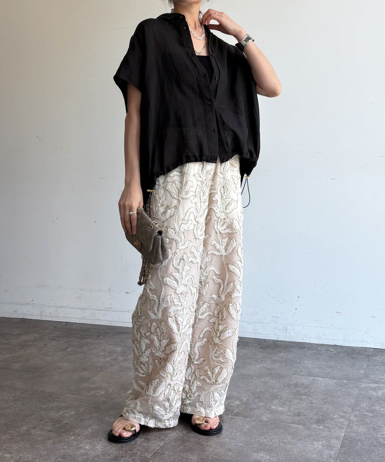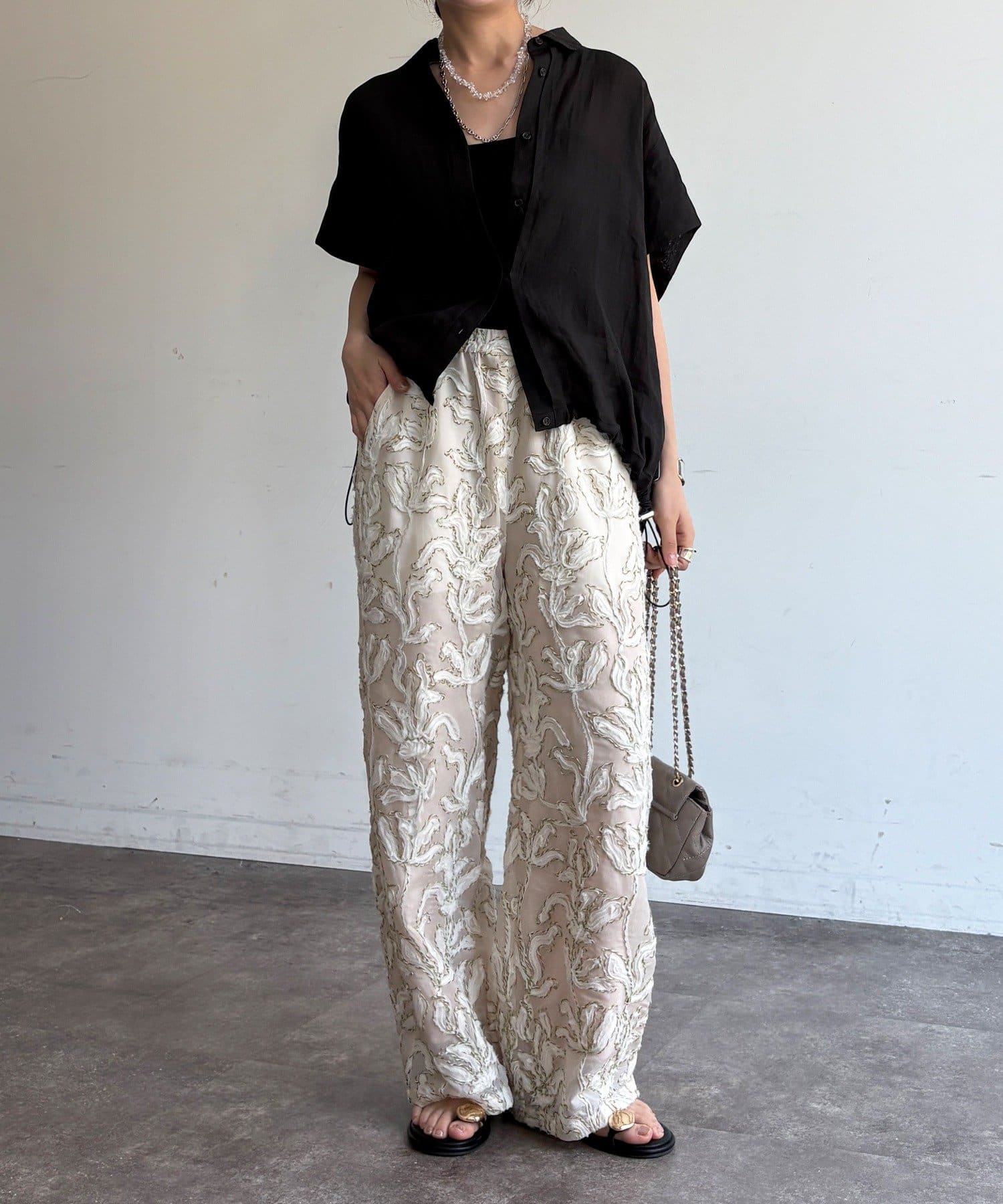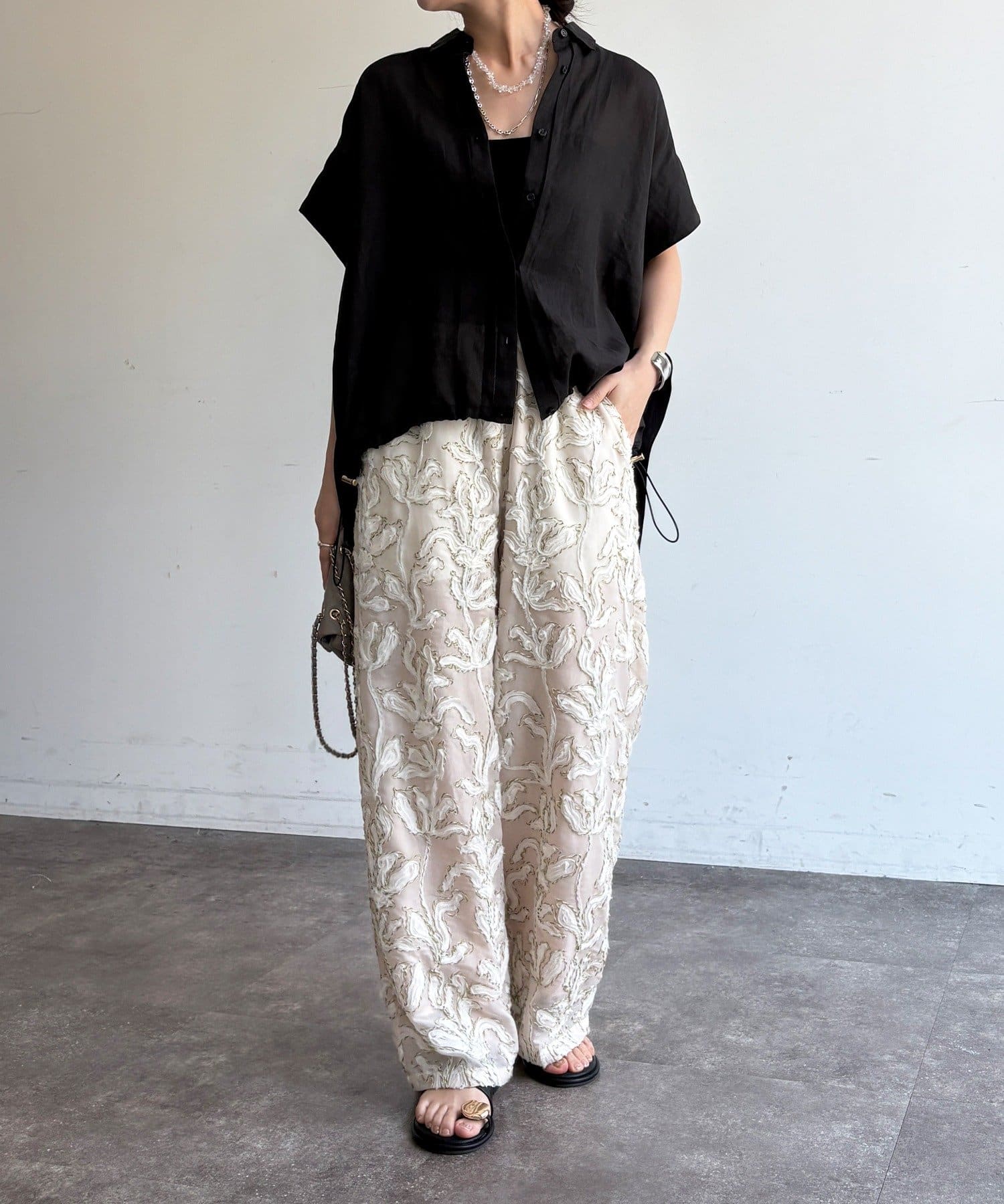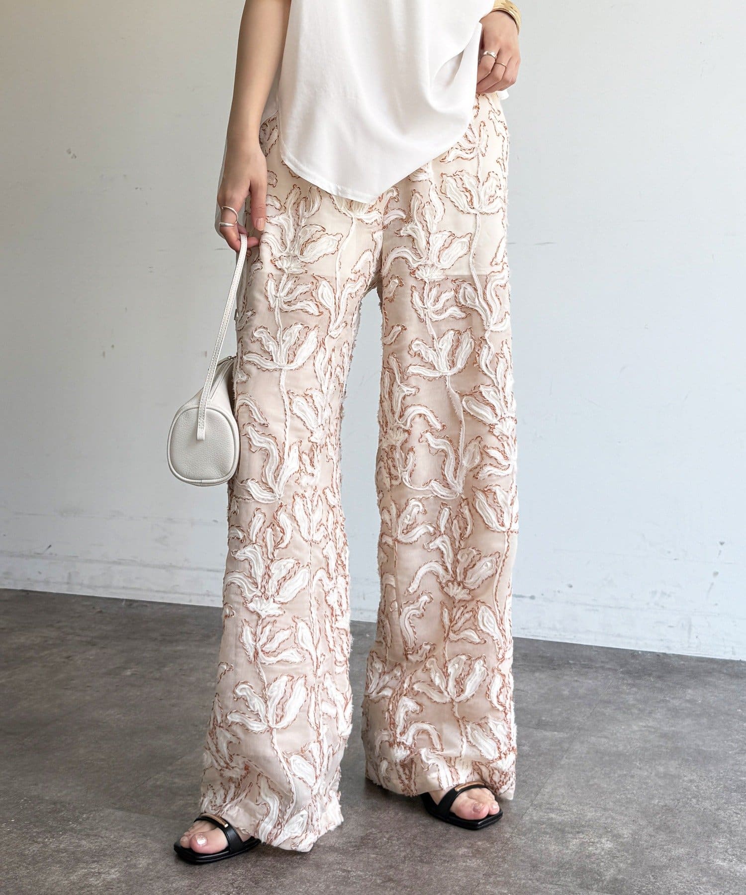 DOUDOU(ドゥドゥ) 【WEB限定】ジャガード刺繍イージーパンツ