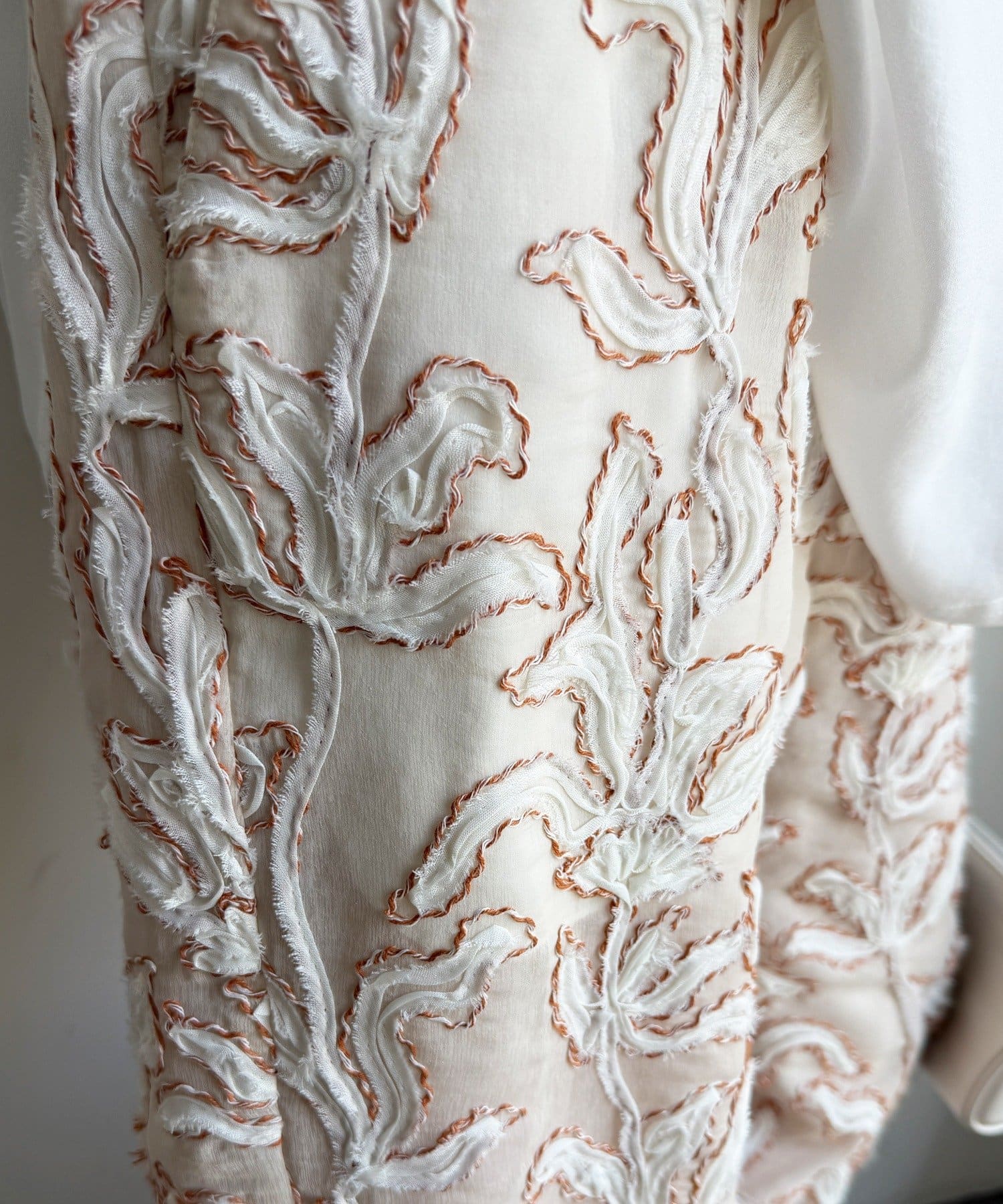 やわらかく流れるような柄と淡いカラーが上品な雰囲気に。