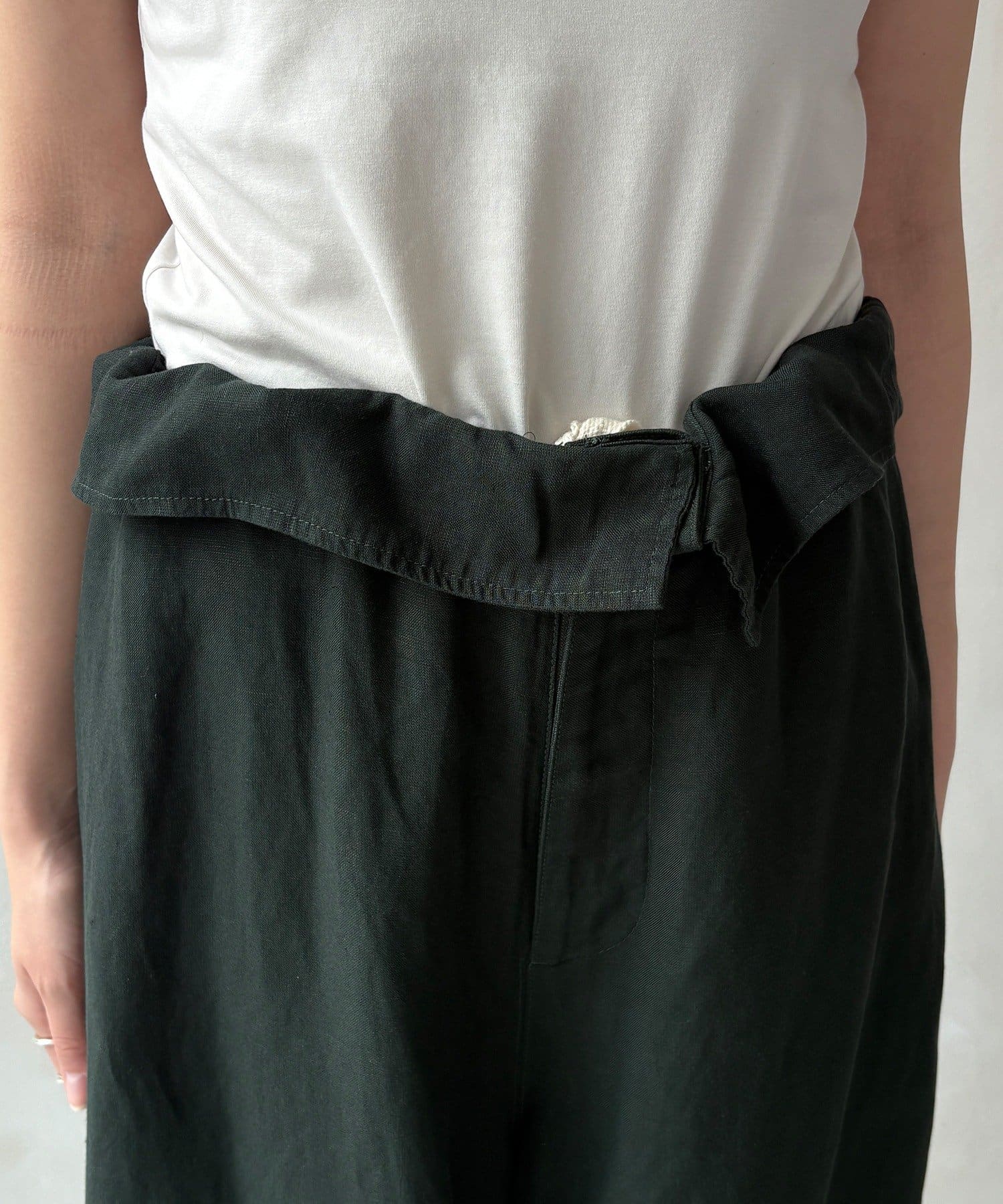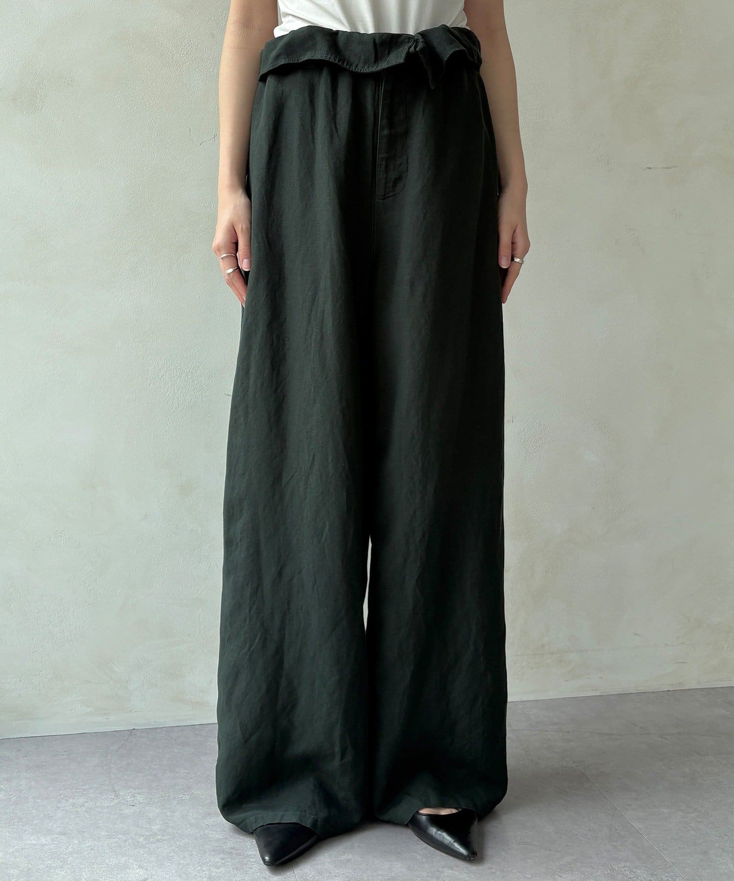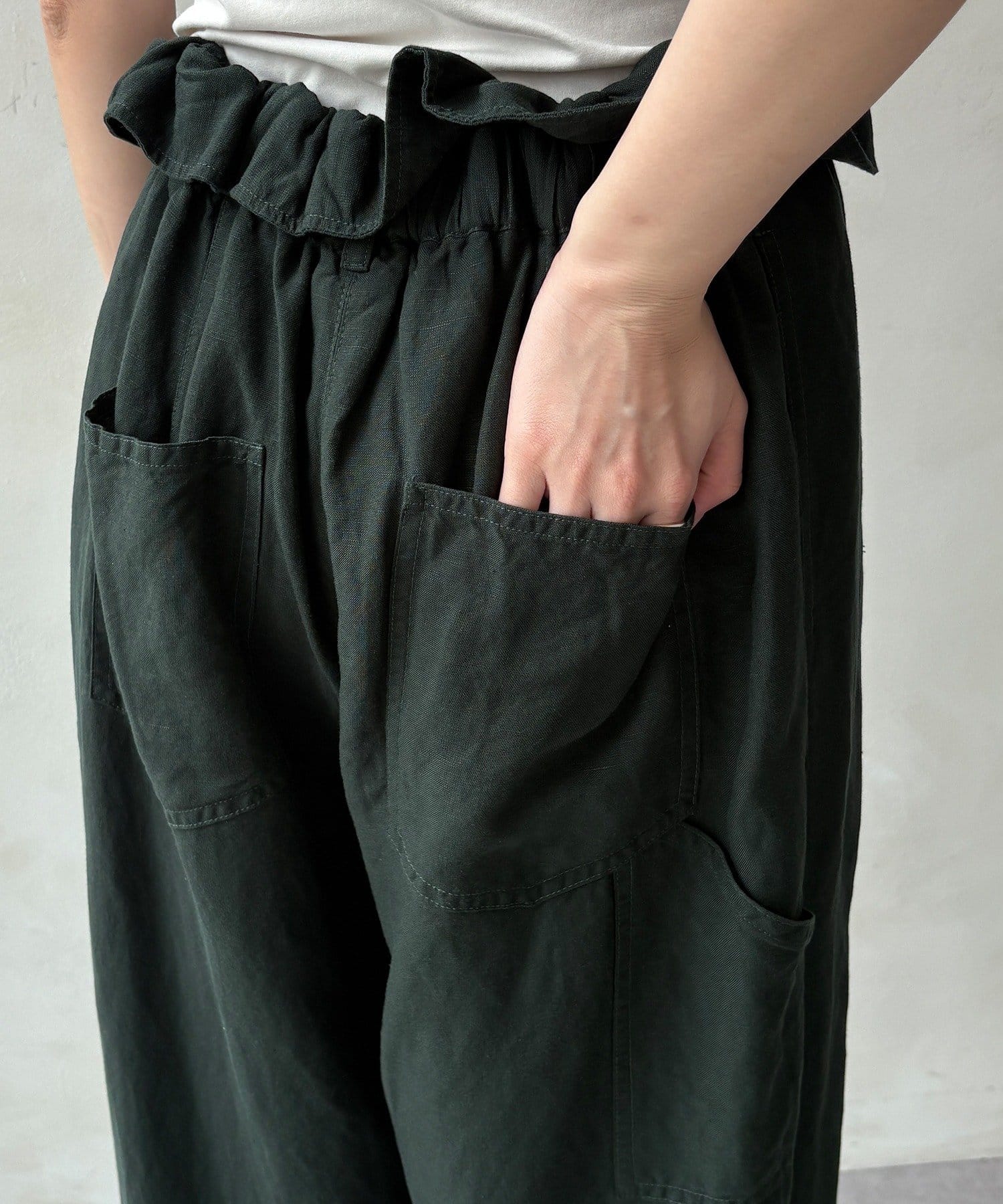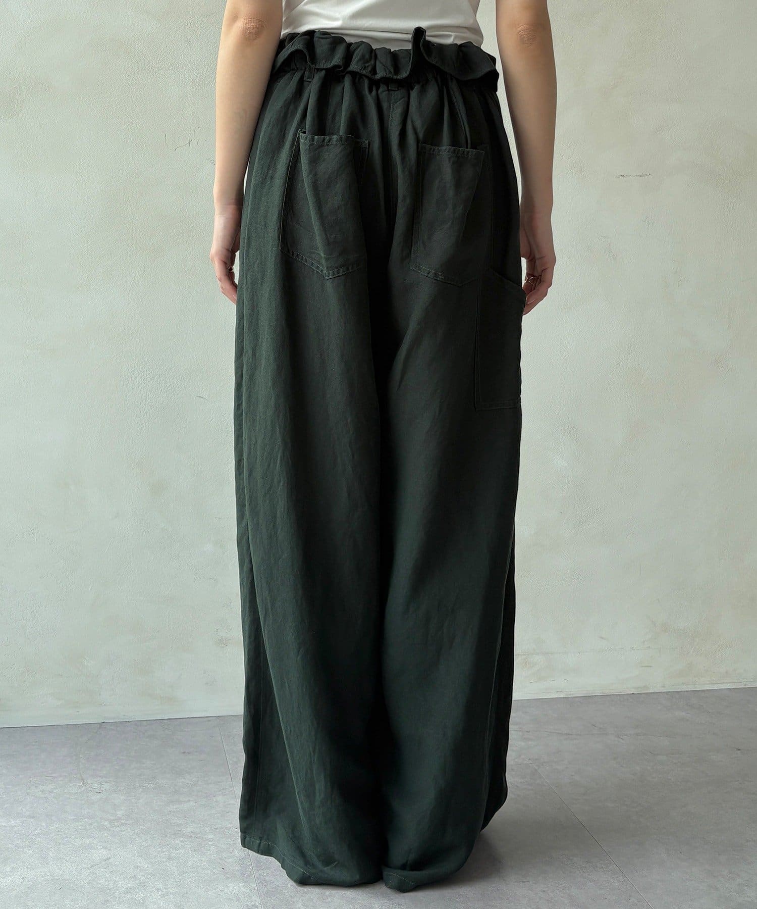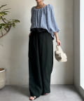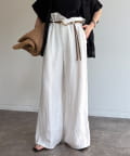 ウエストギャザーリネン混パンツ