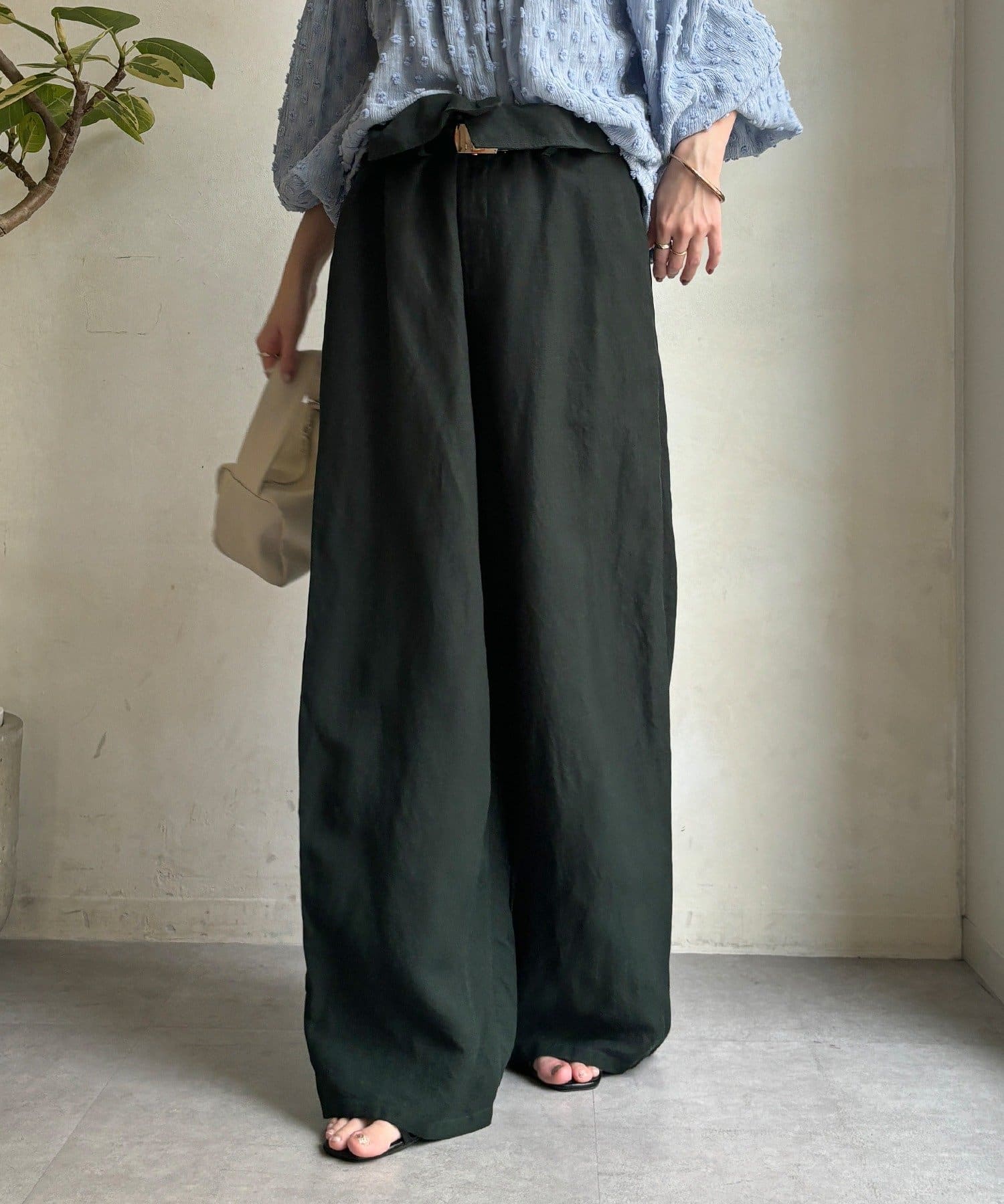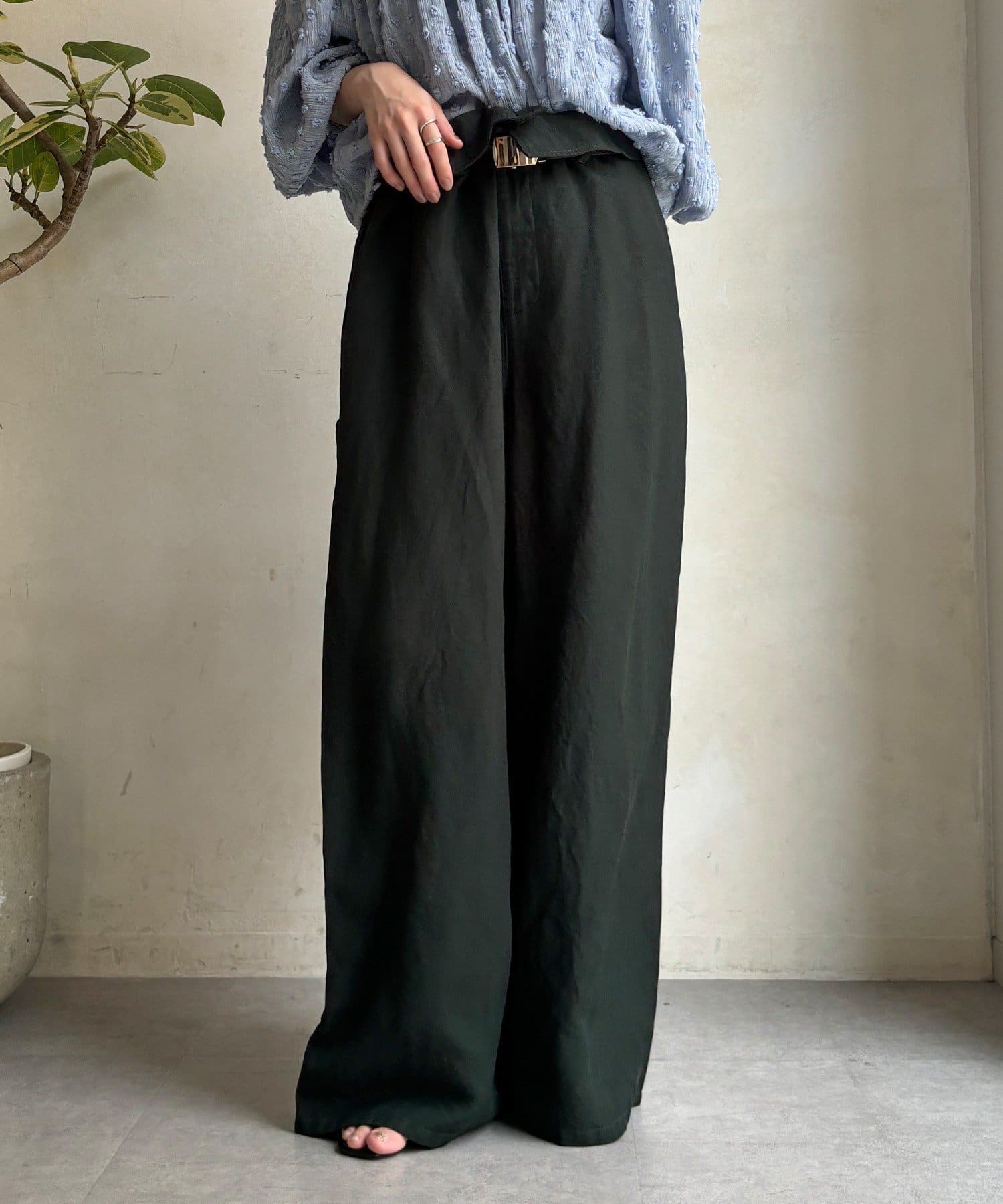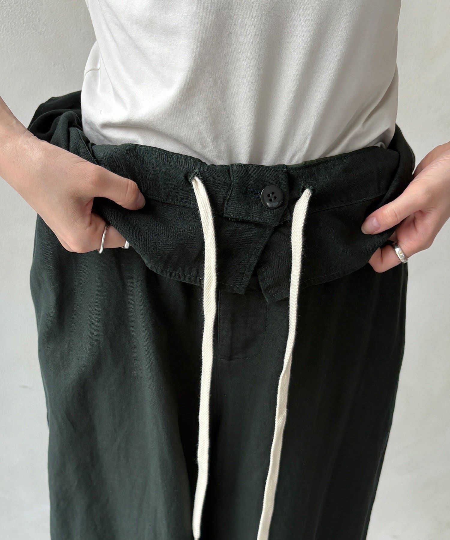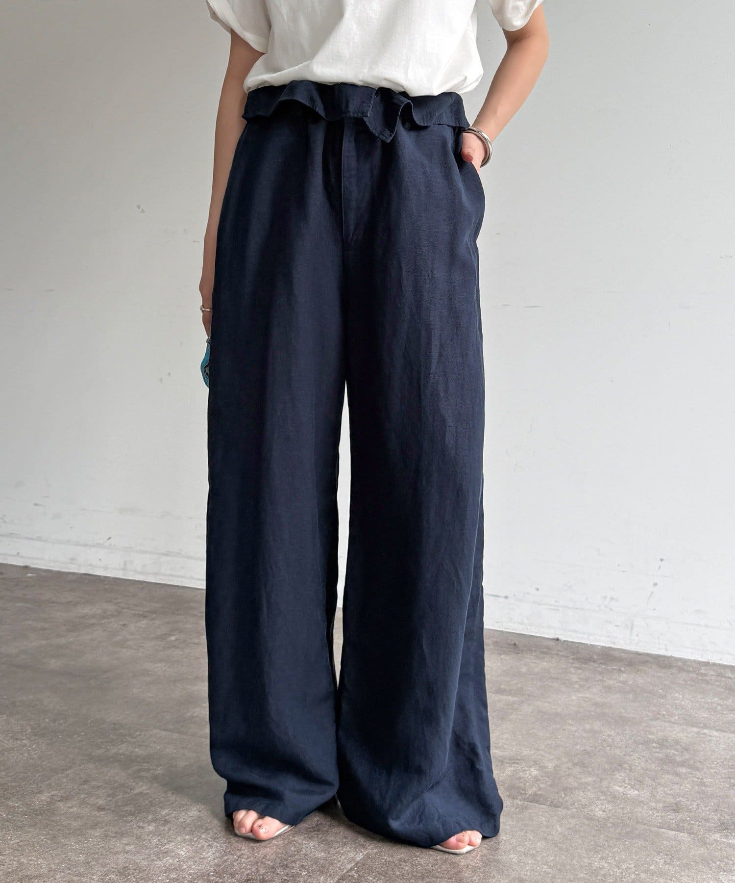 ウエストギャザーリネン混パンツ