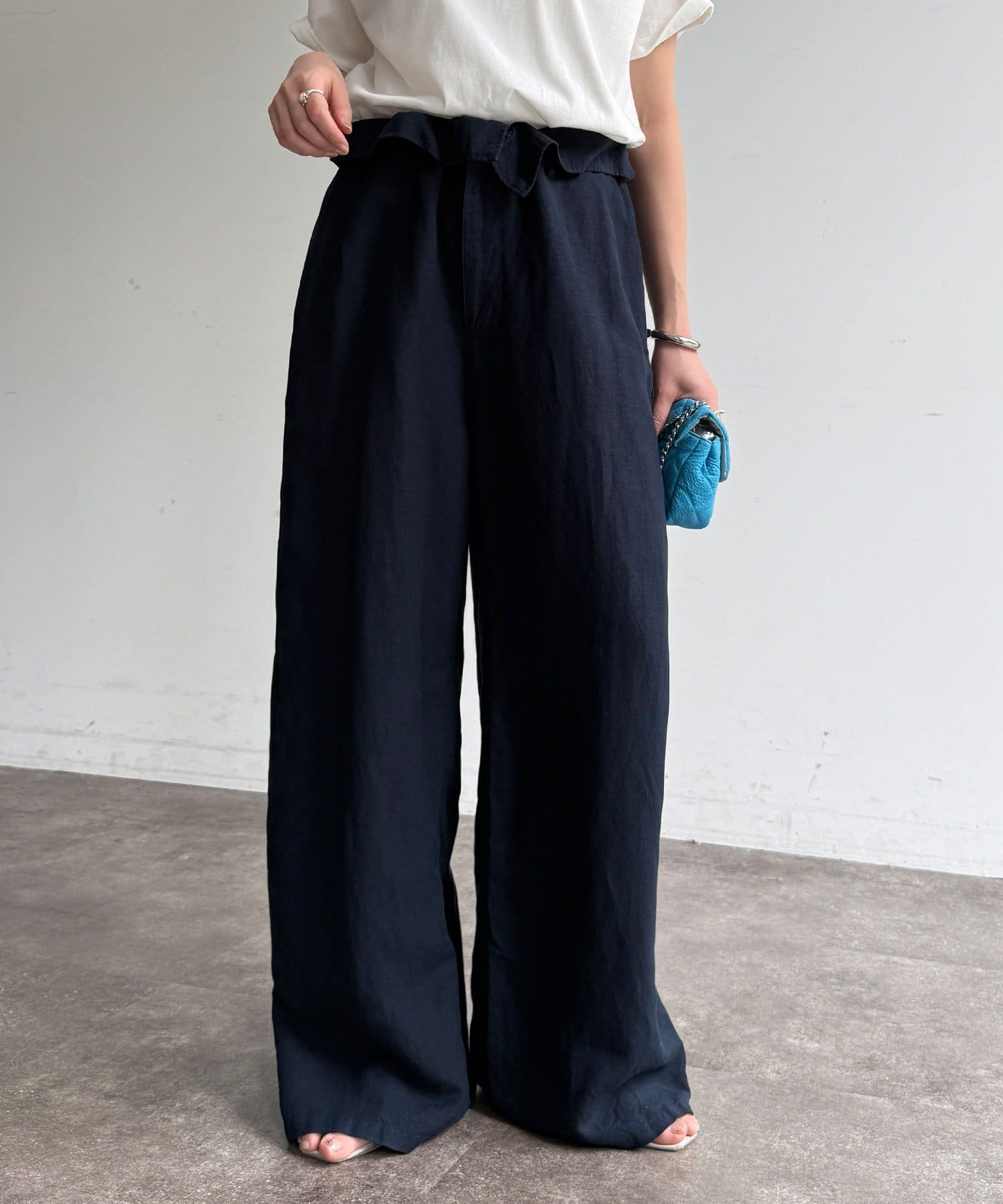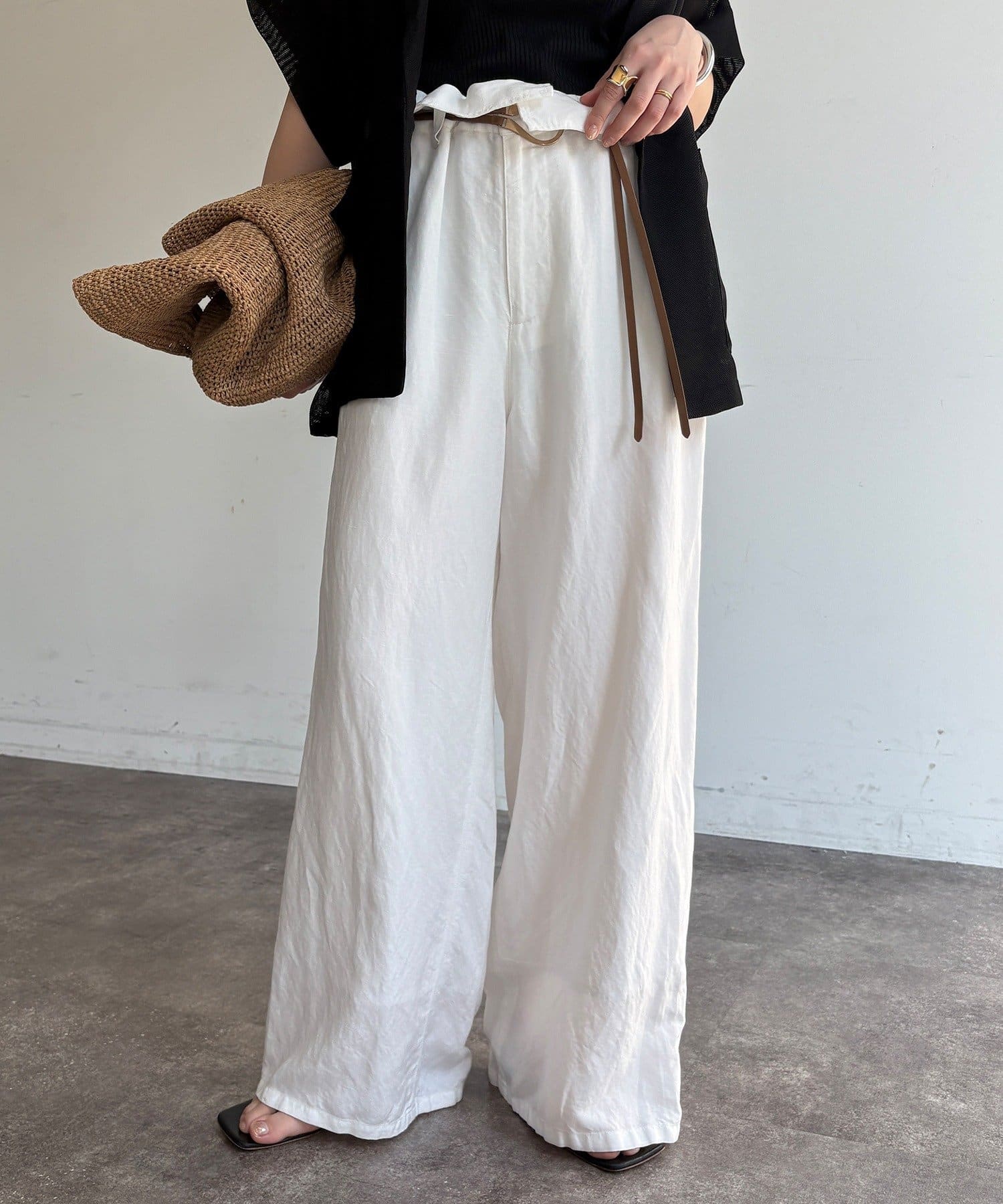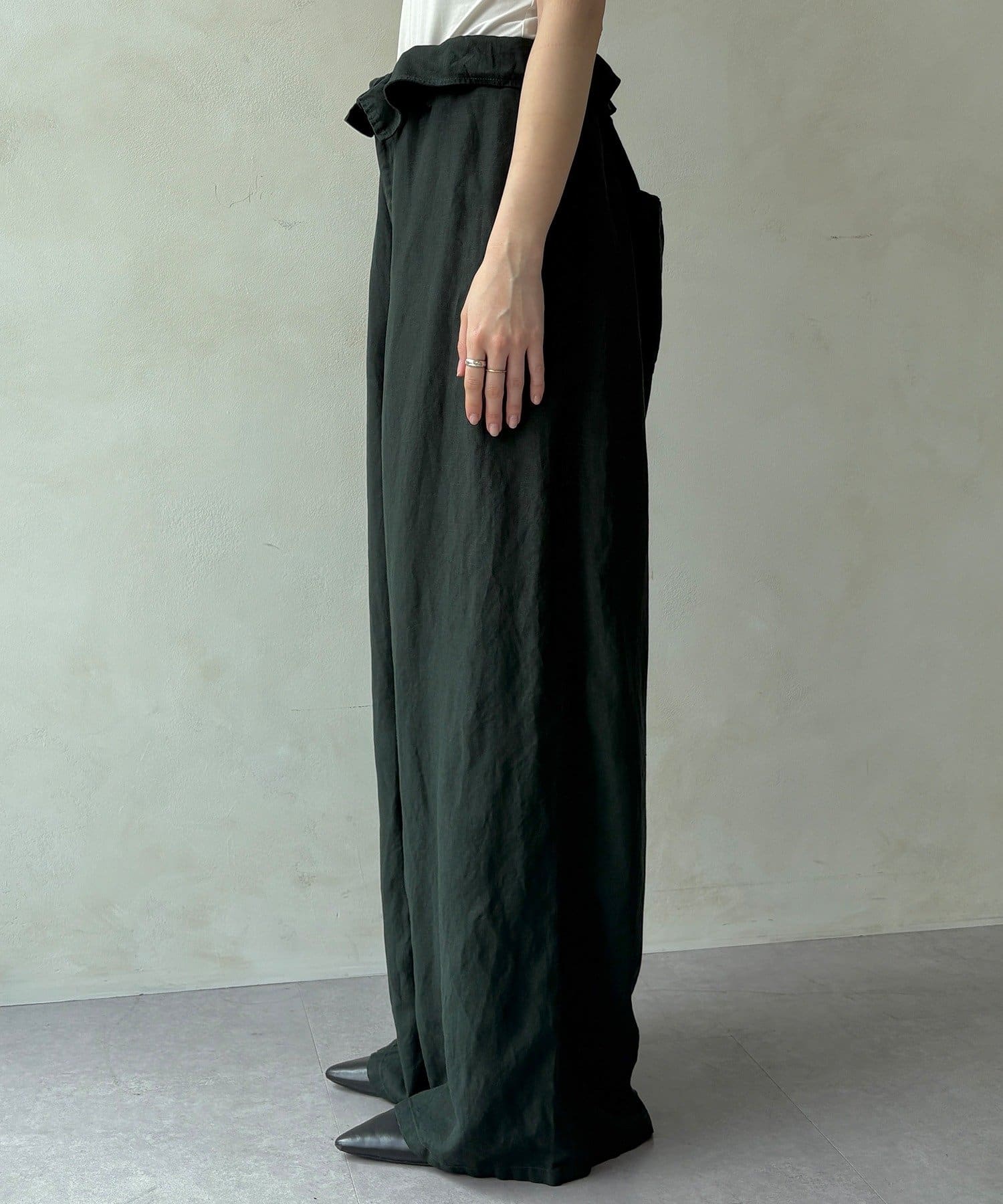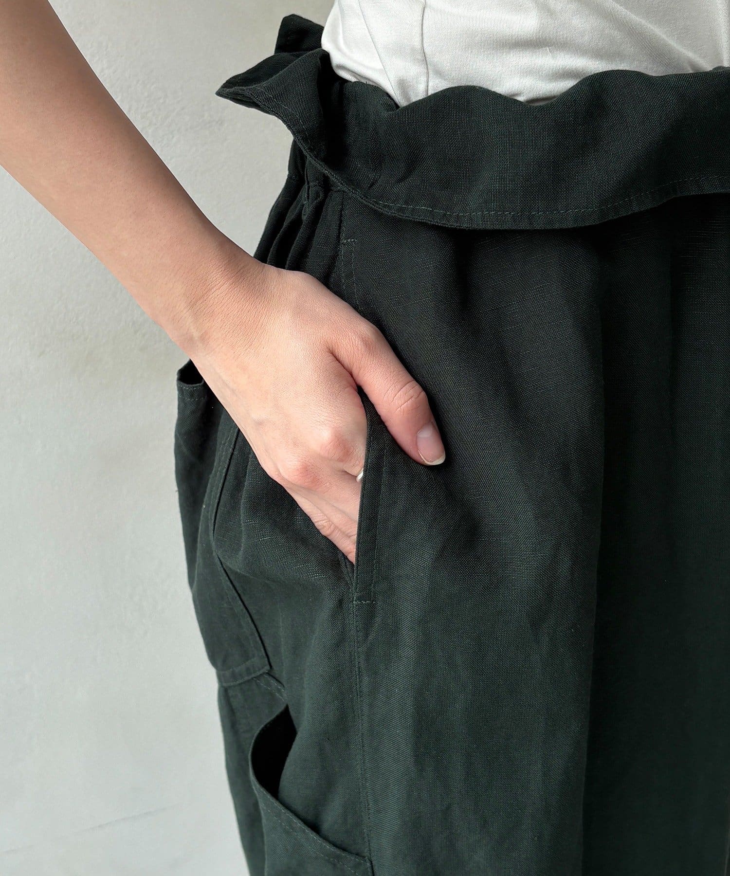 ウエストギャザーリネン混パンツ