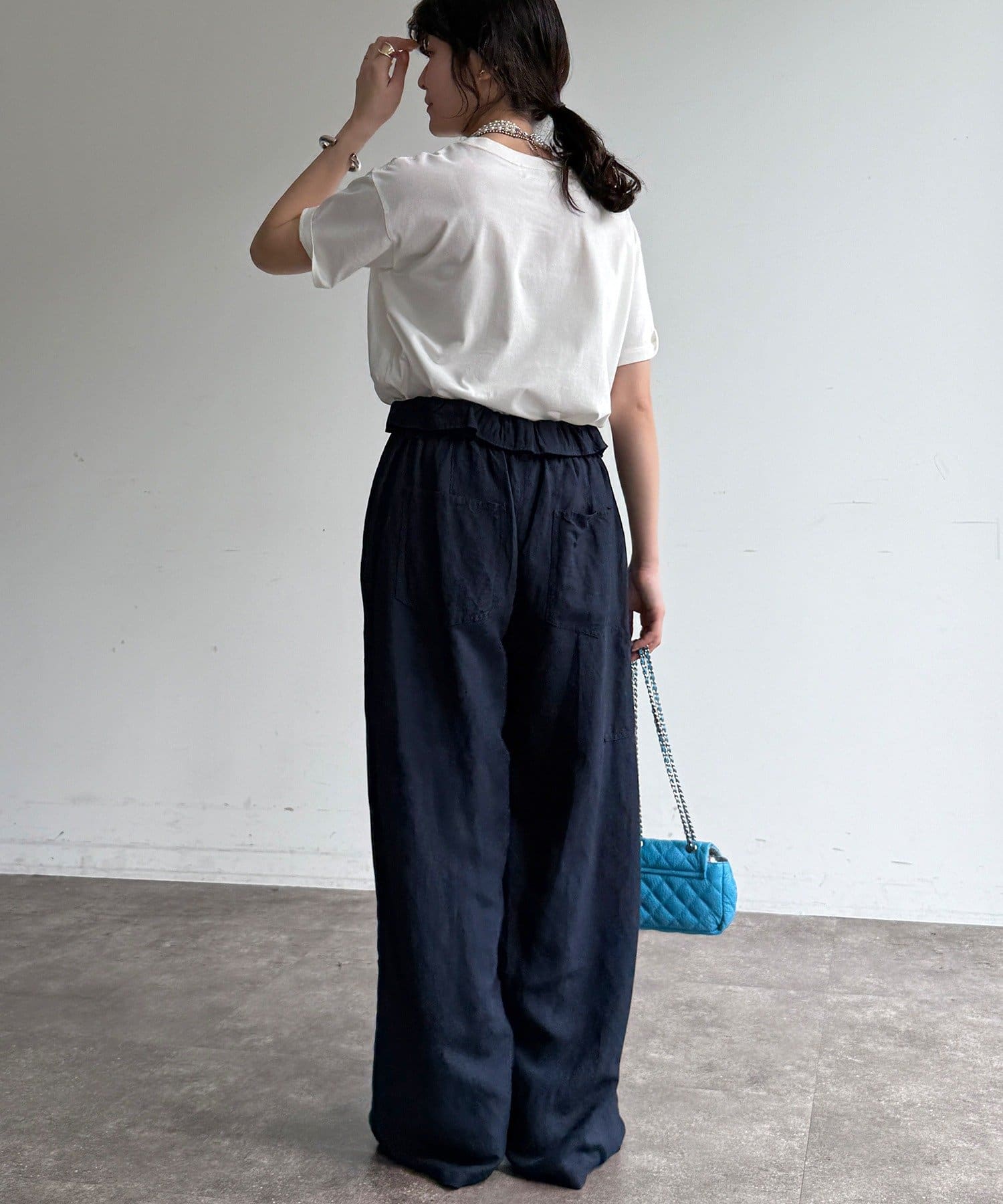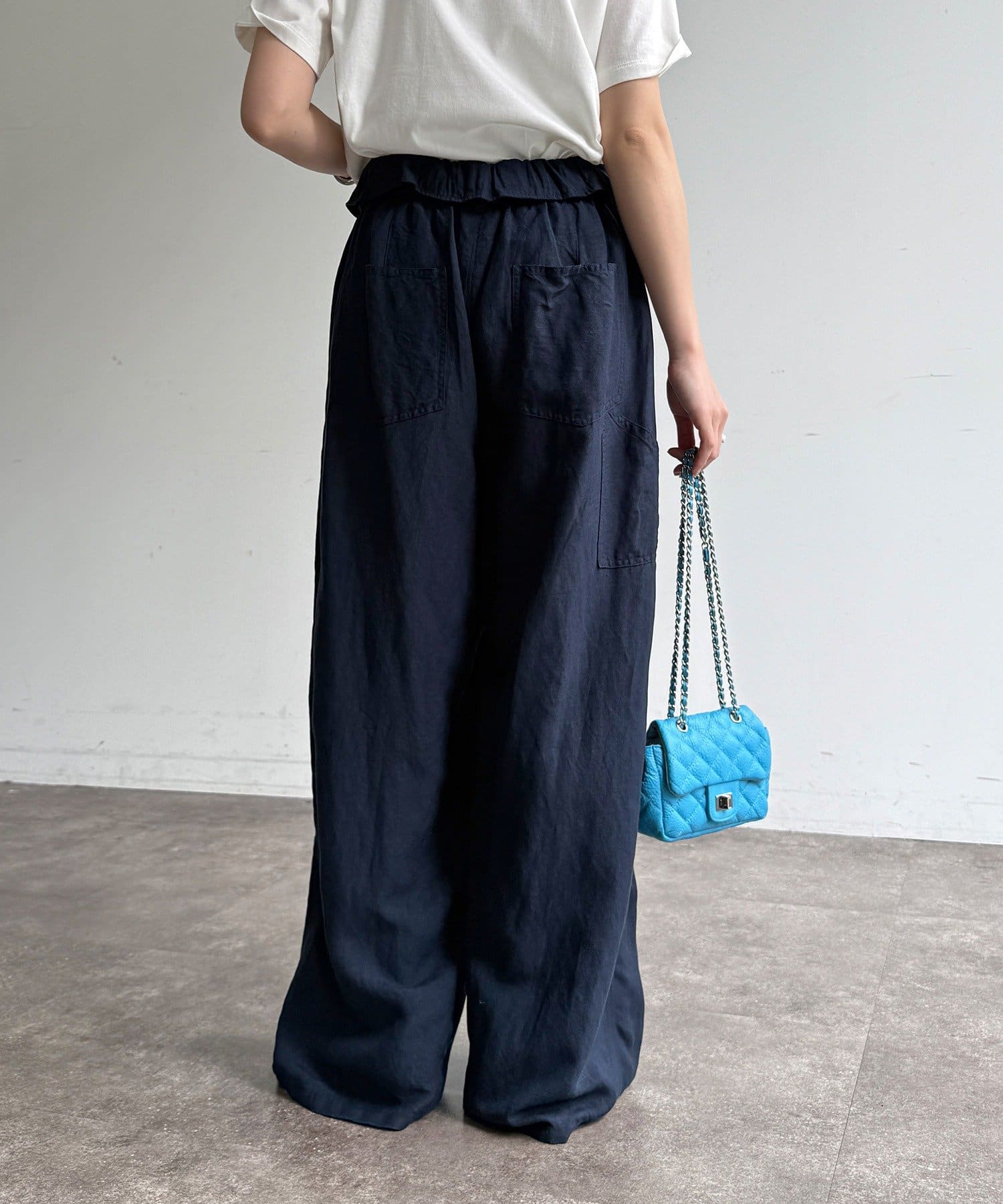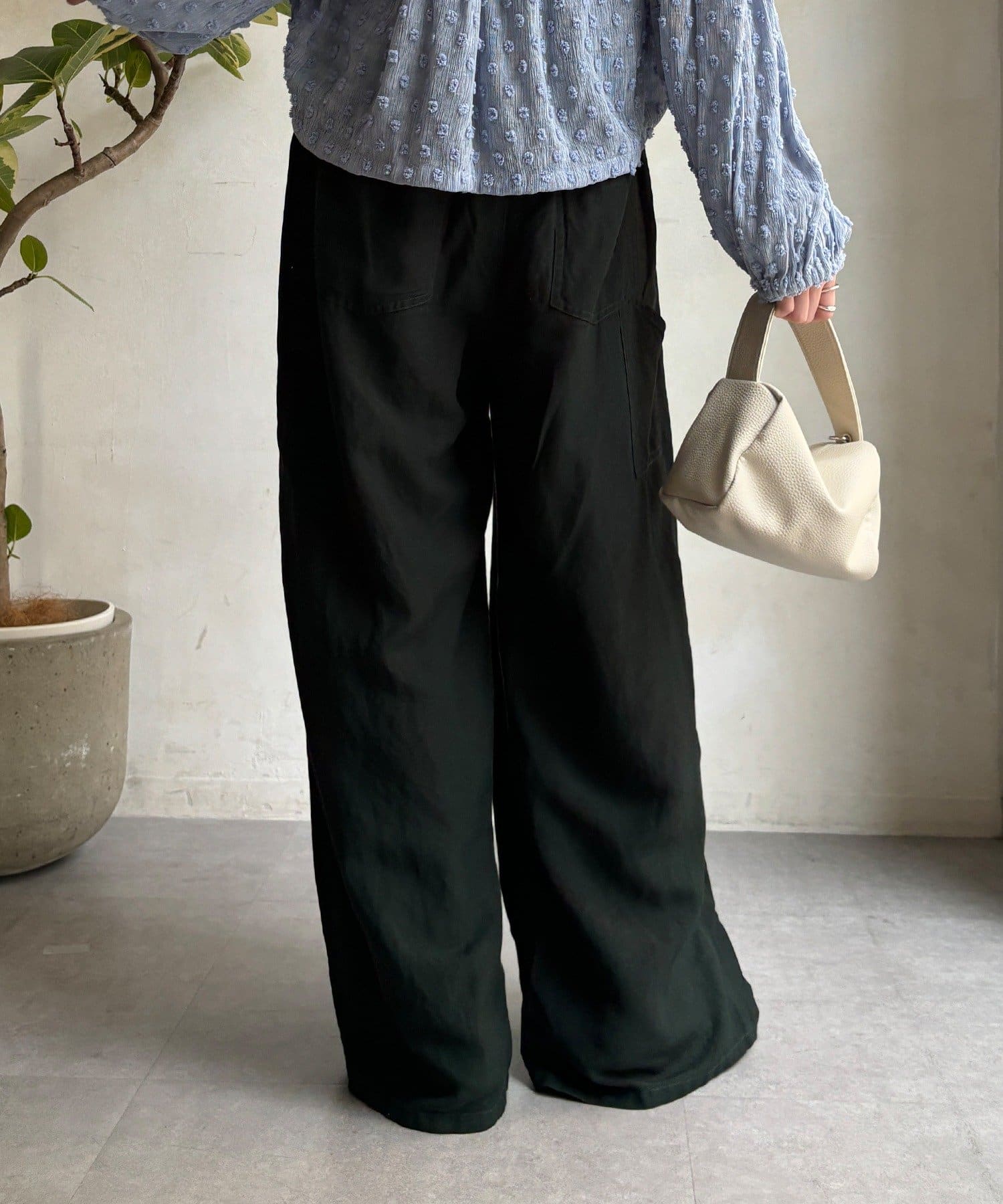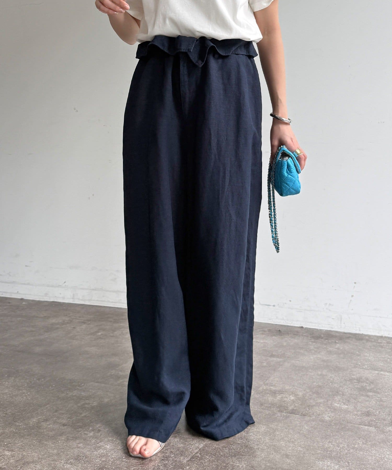 ウエストギャザーリネン混パンツ