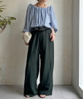 ウエストのギャザーがかわいい!リネンワイドパンツ