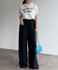 シンプルなトップスと合わせても、パンツにインパクトがあるので