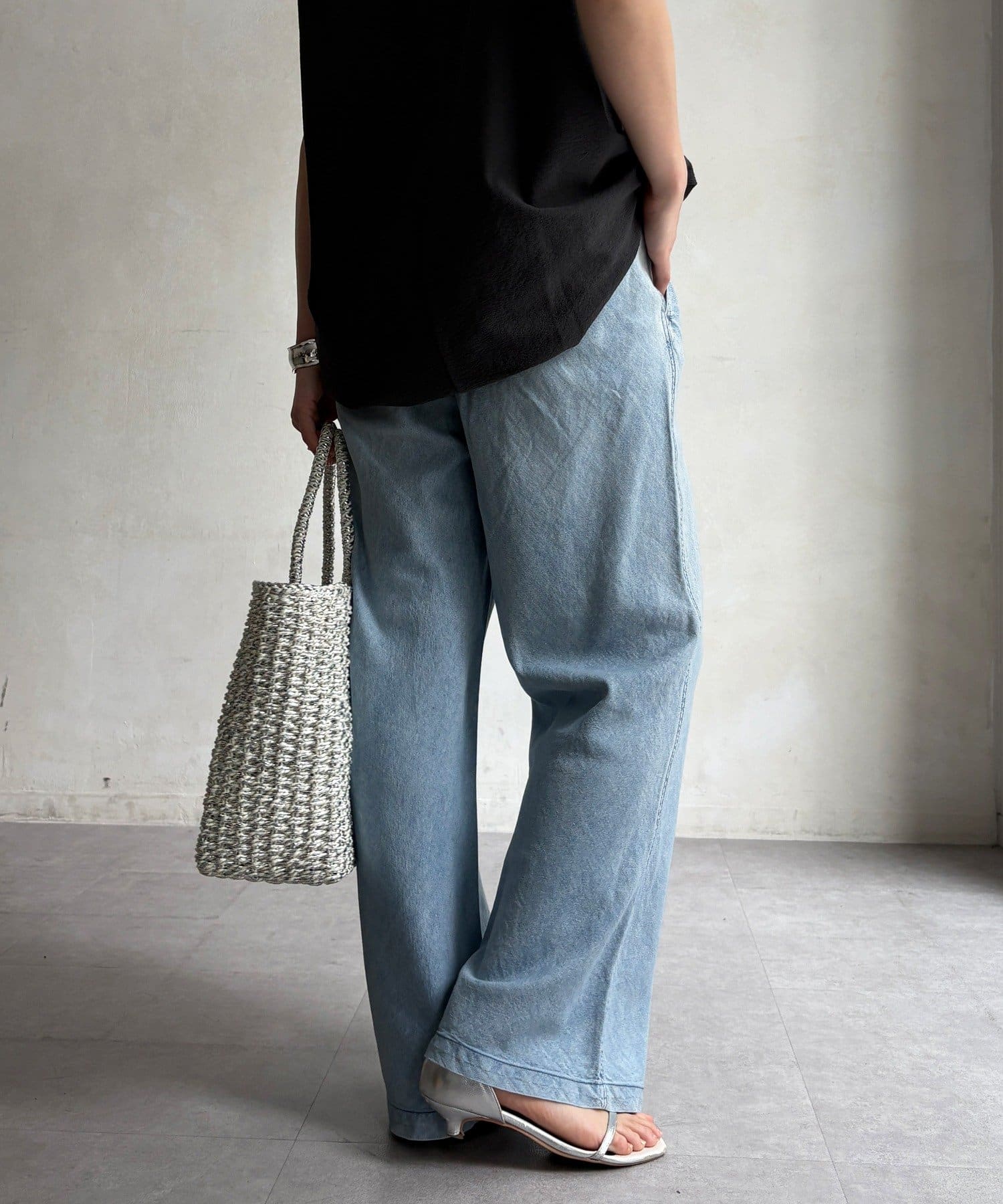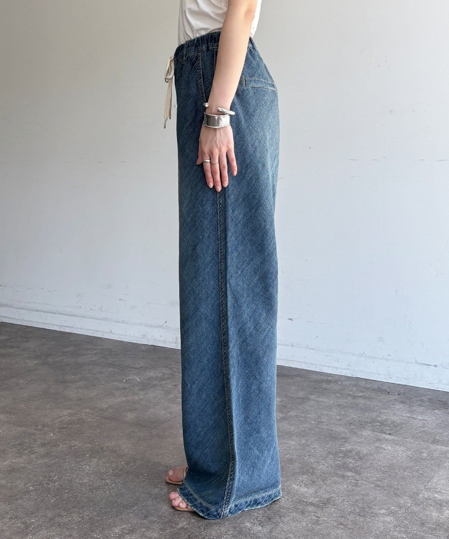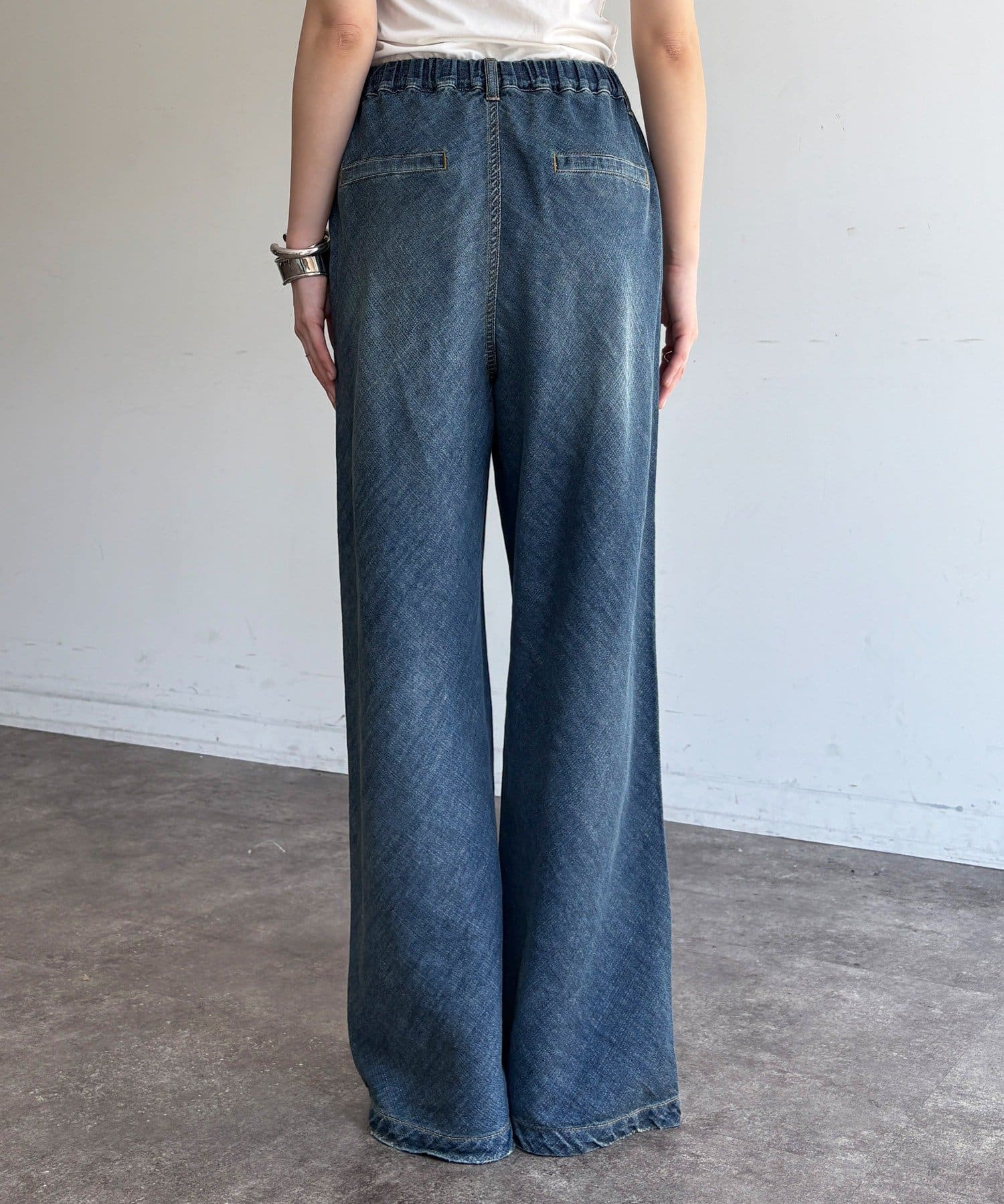 麻混のデニム素材ならではの涼しげな表情が、春夏の季節に心地よい抜け感をプラスしてくれます。