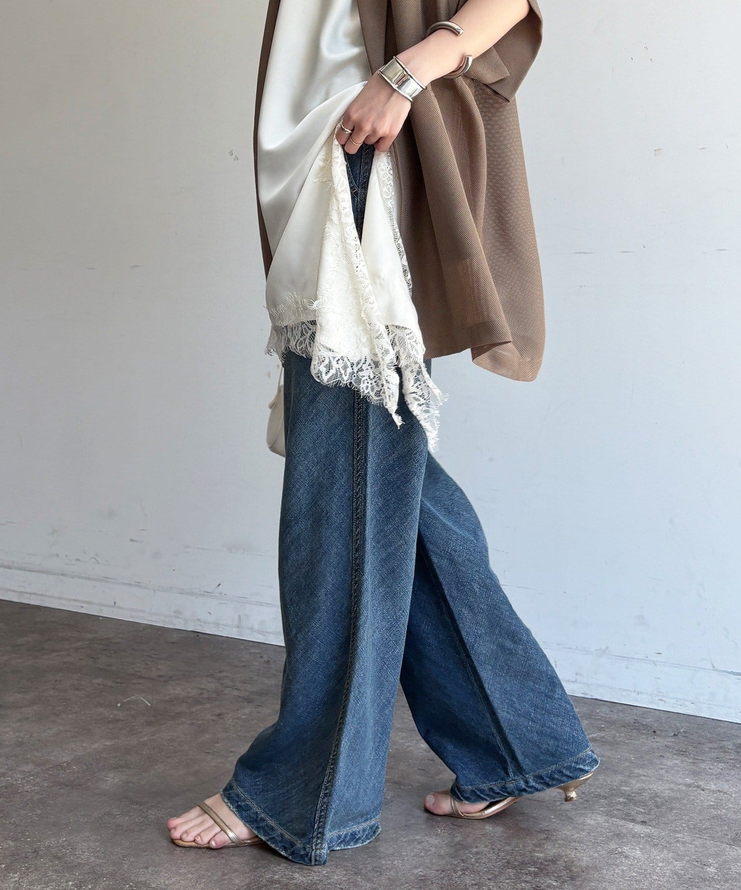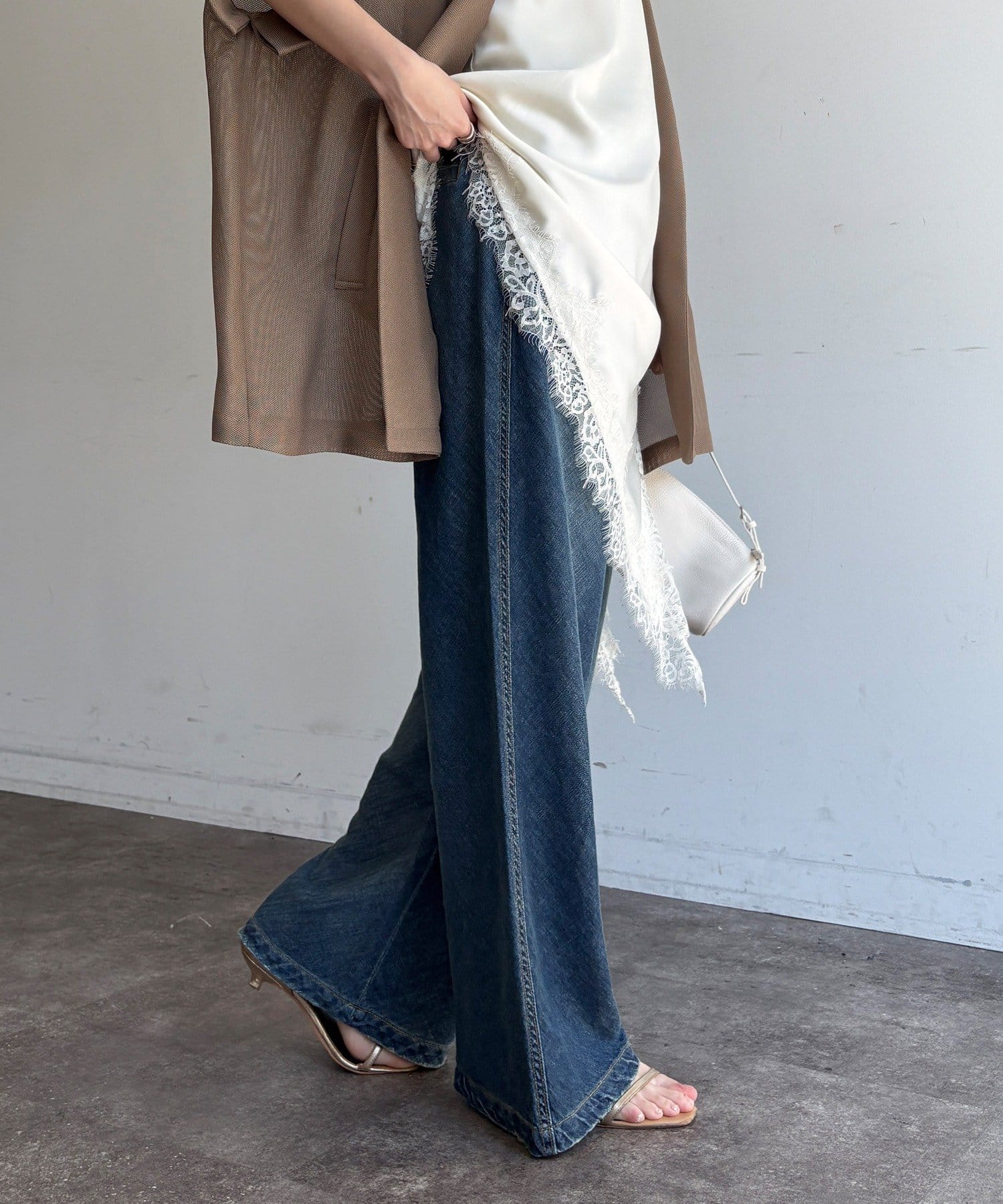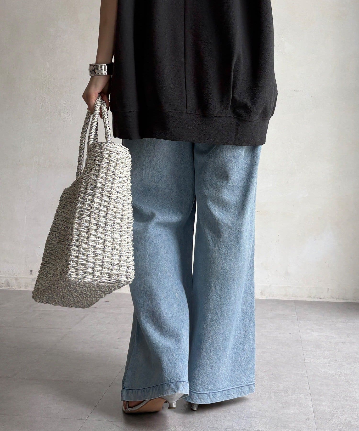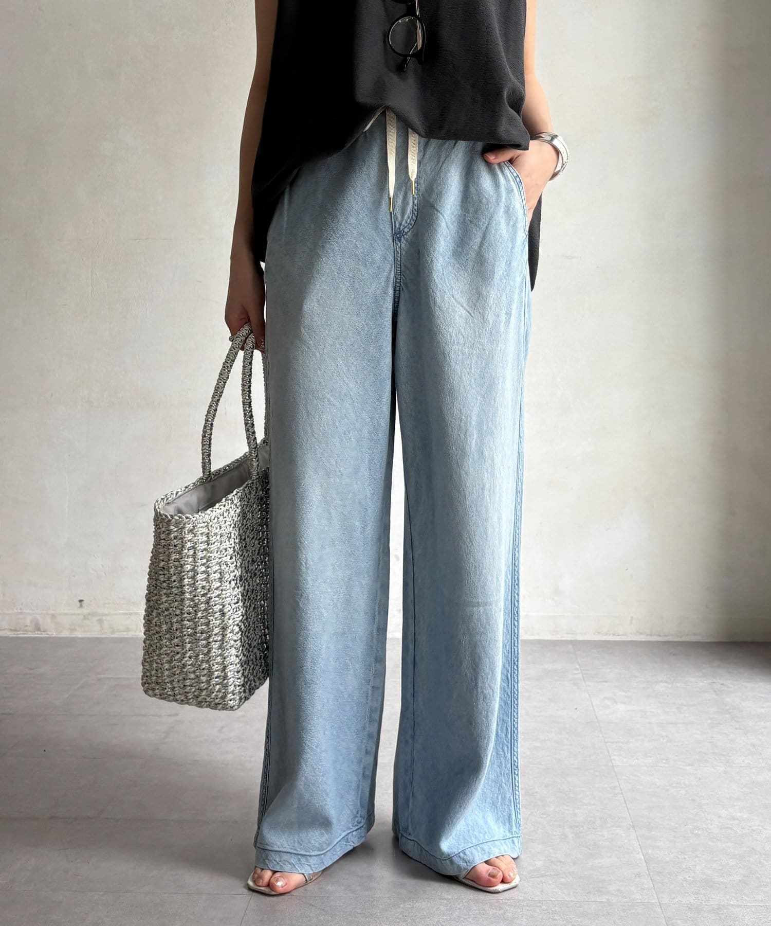 麻混のデニム素材ならではの涼しげな表情が、春夏の季節に心地よい抜け感をプラスしてくれます。