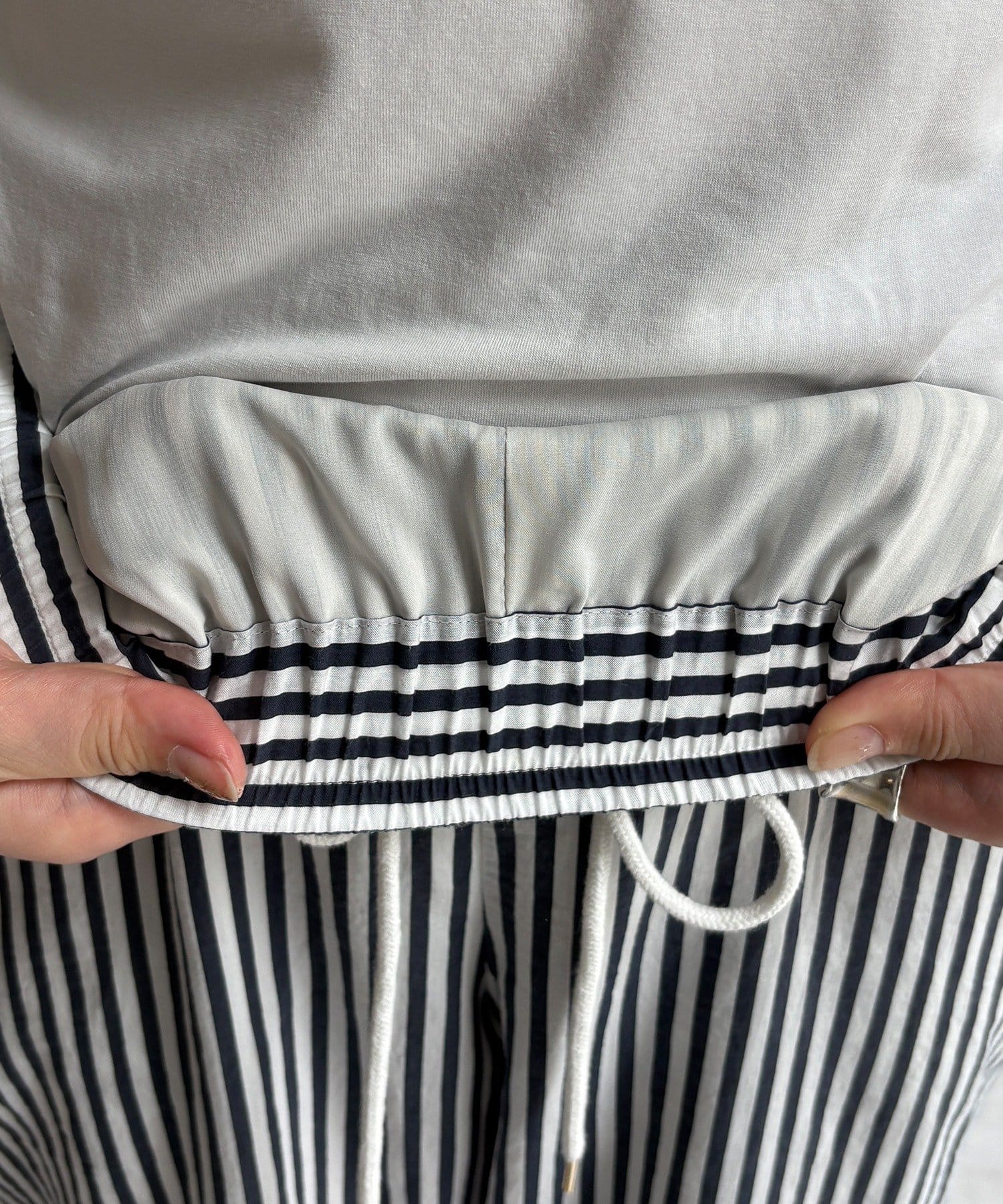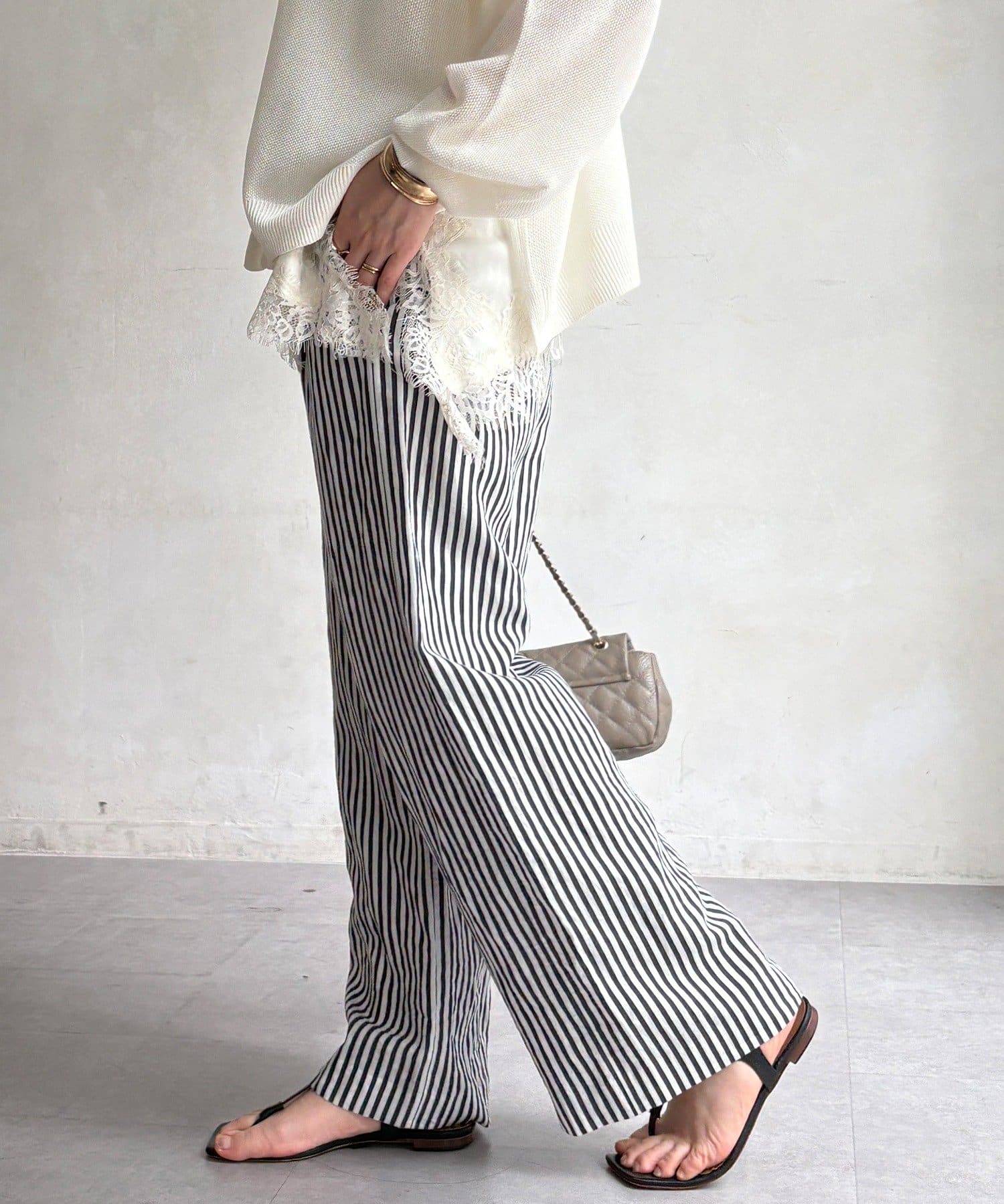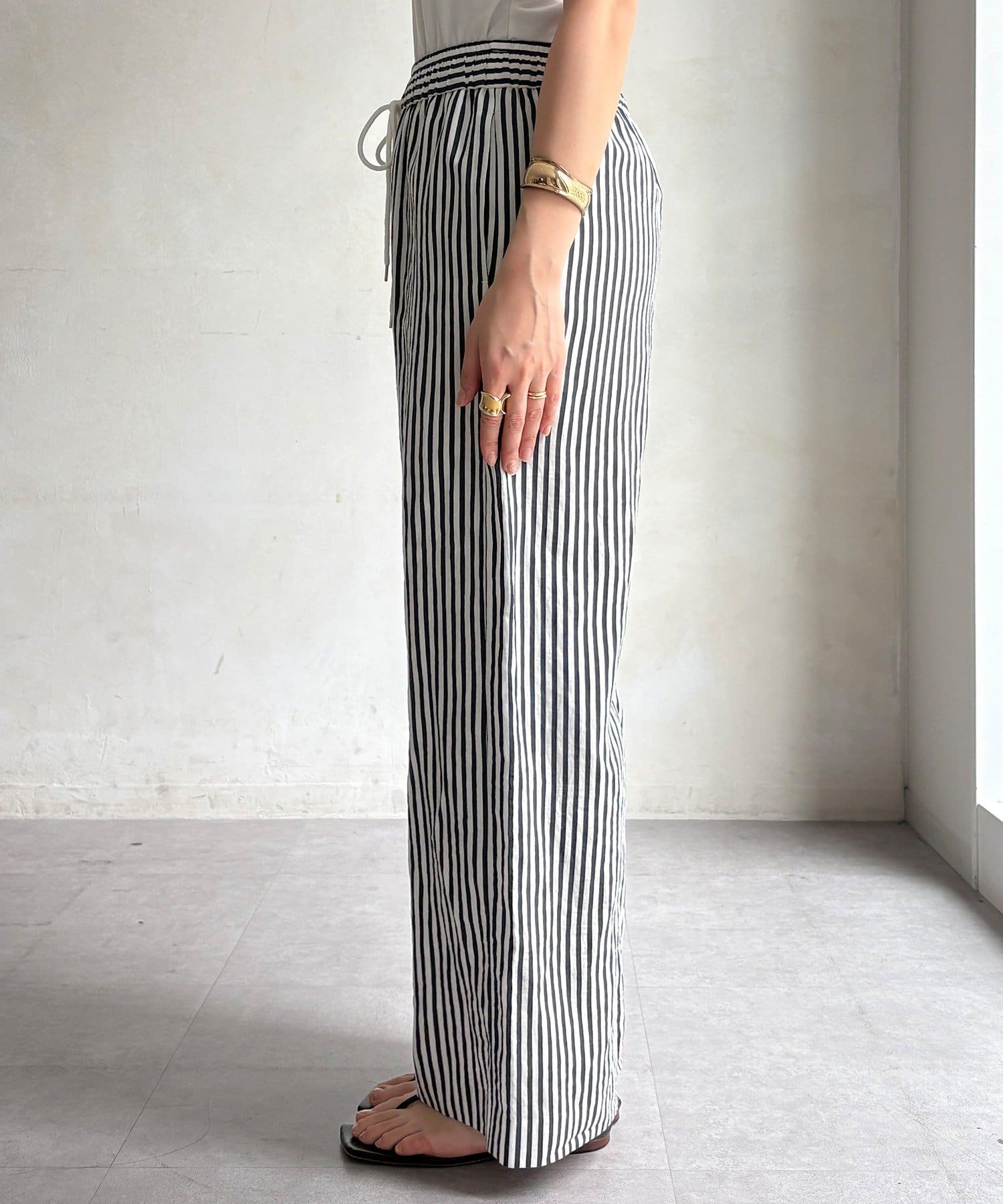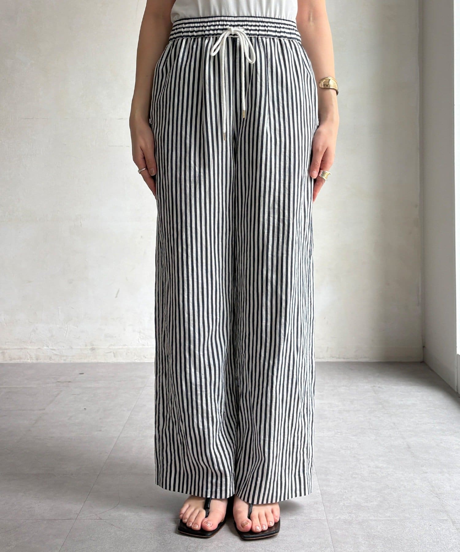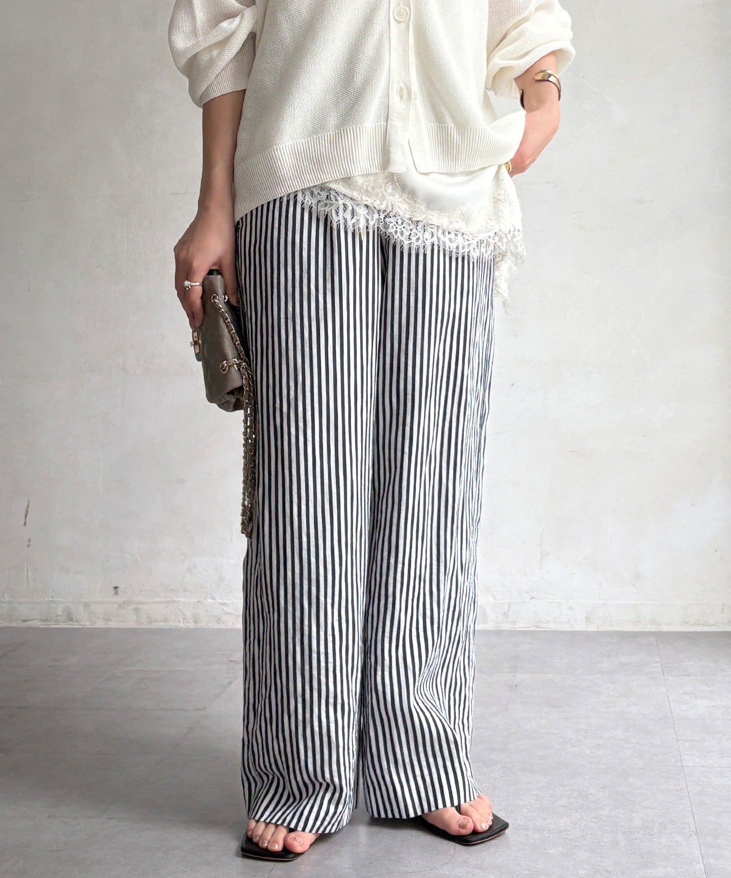 ストライプがスタイルアップ効果に。リラクシーな履き心地のイージーパンツ