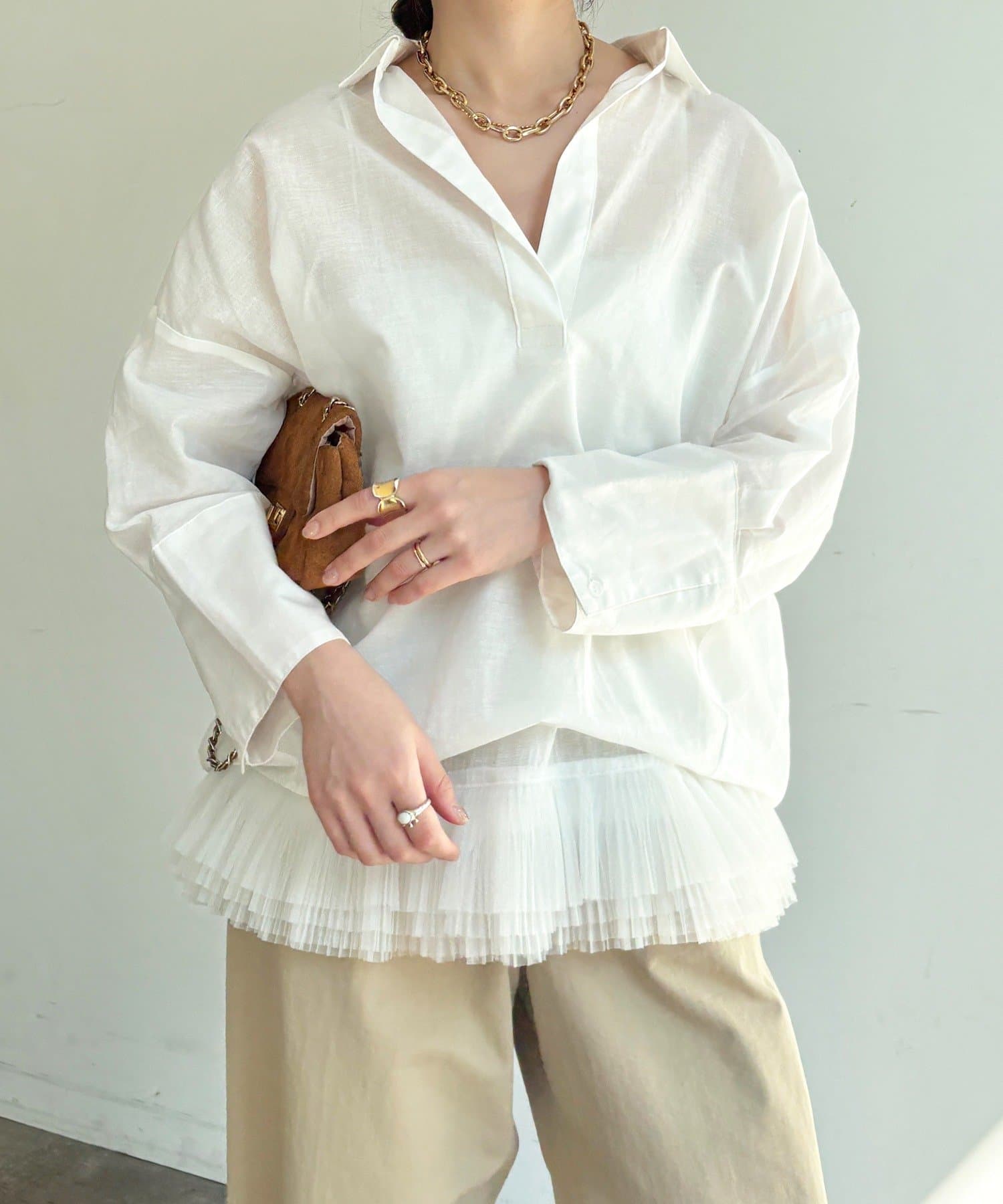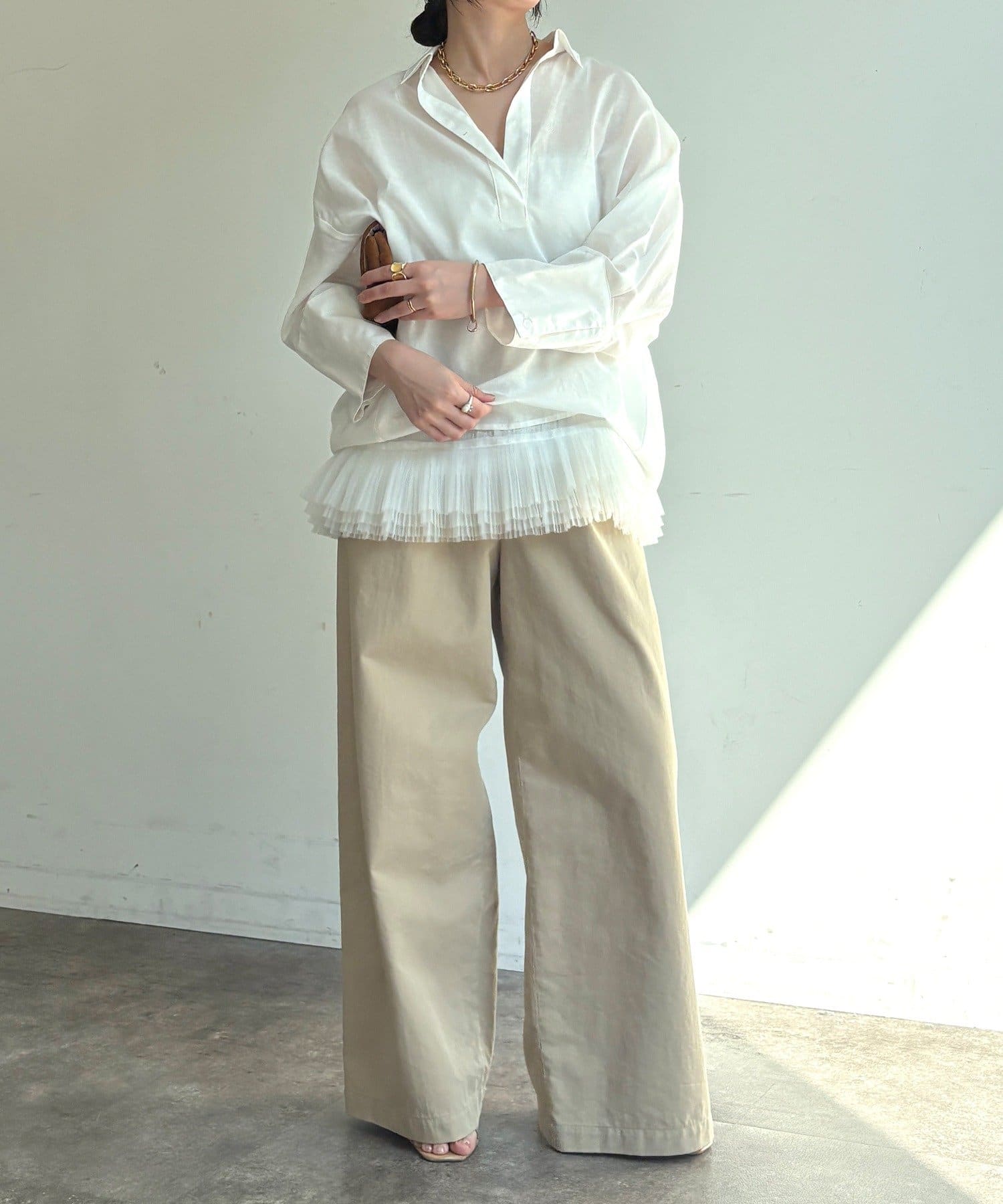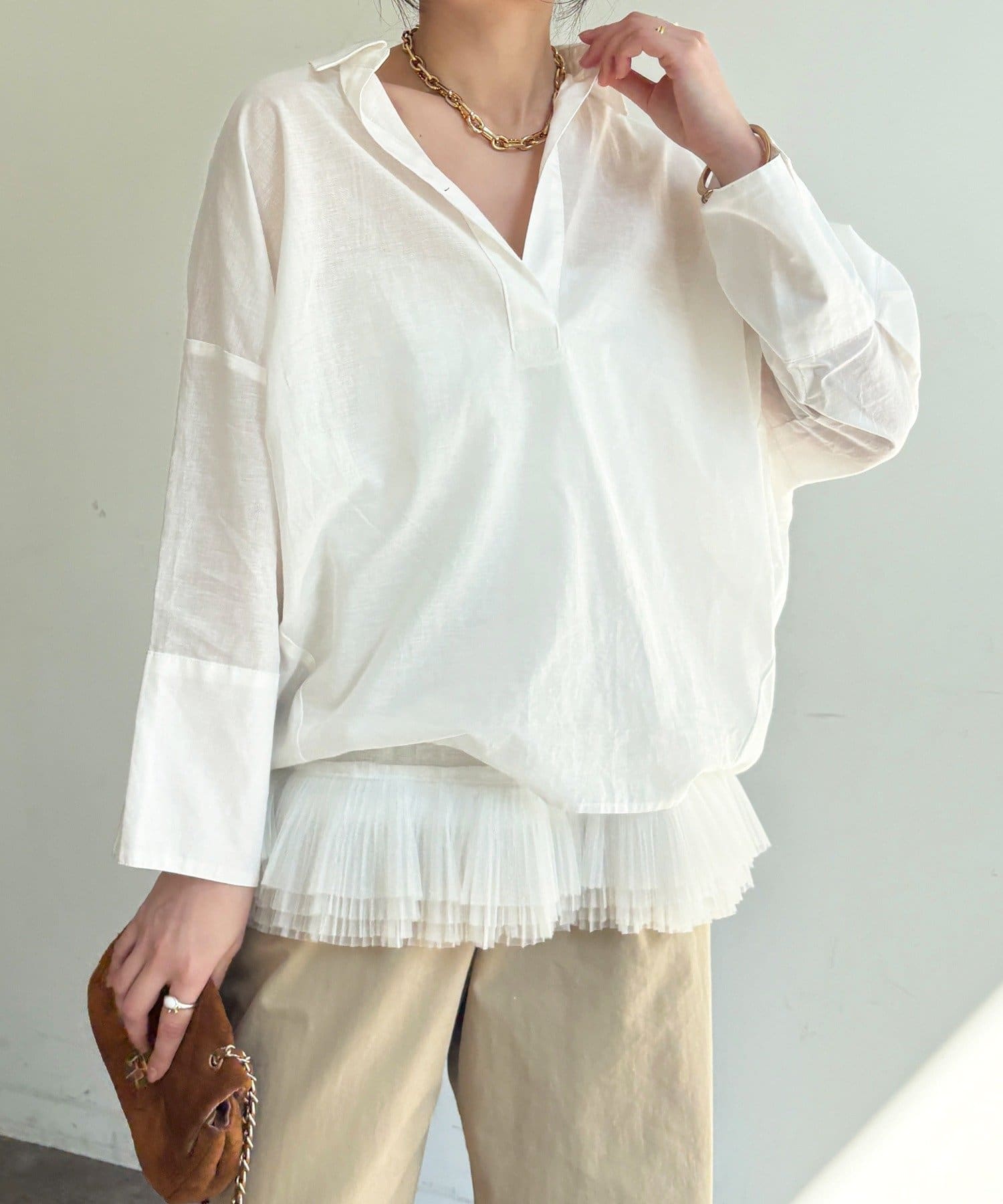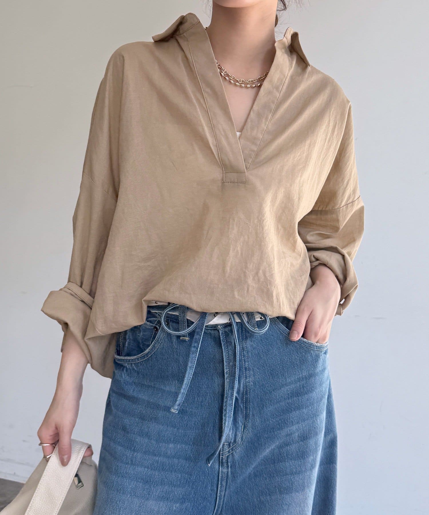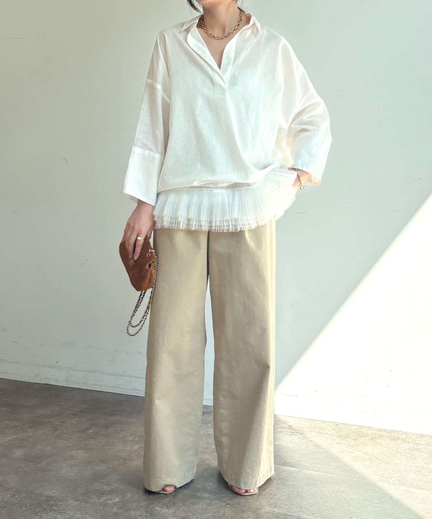 ・リネン混素材×シアーで、ナチュラルかつ軽やかな印象に