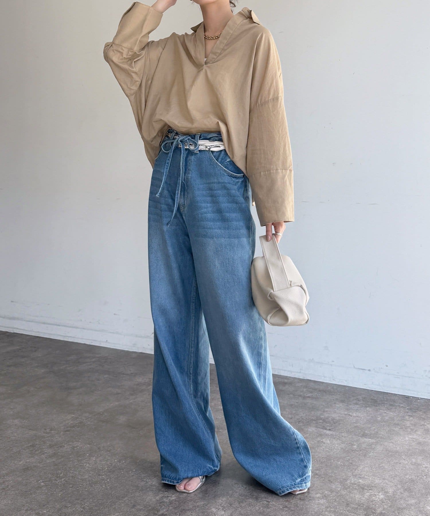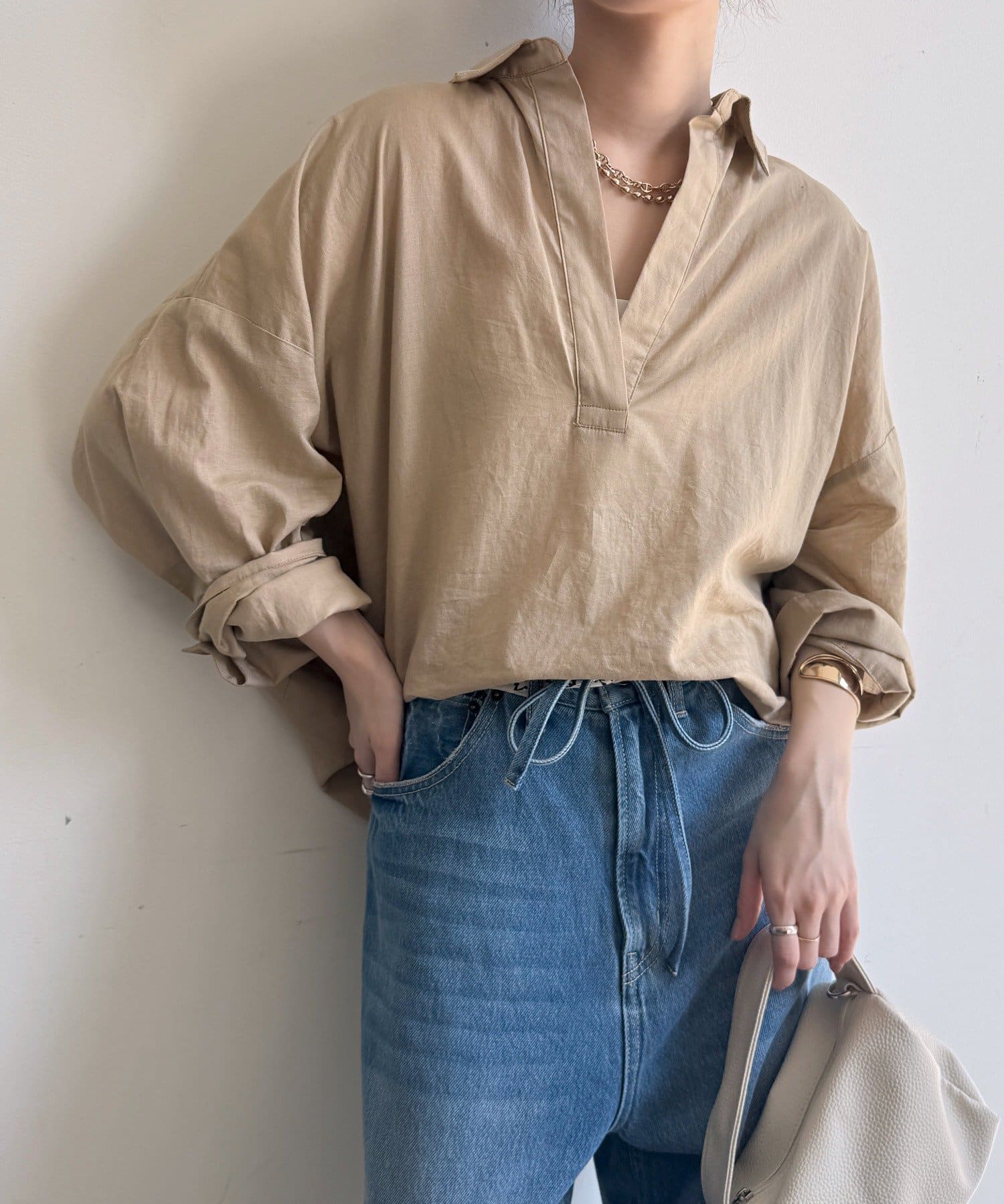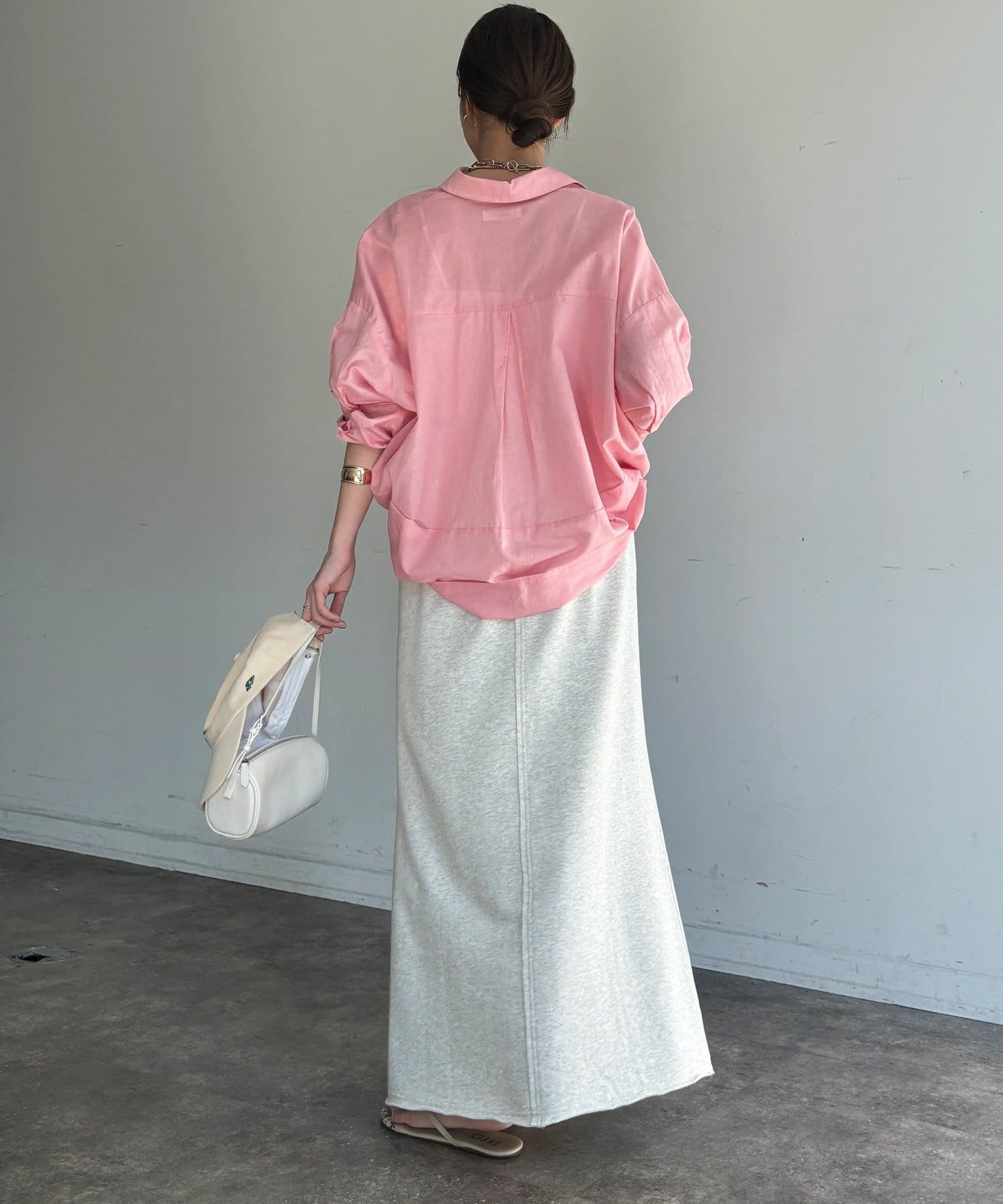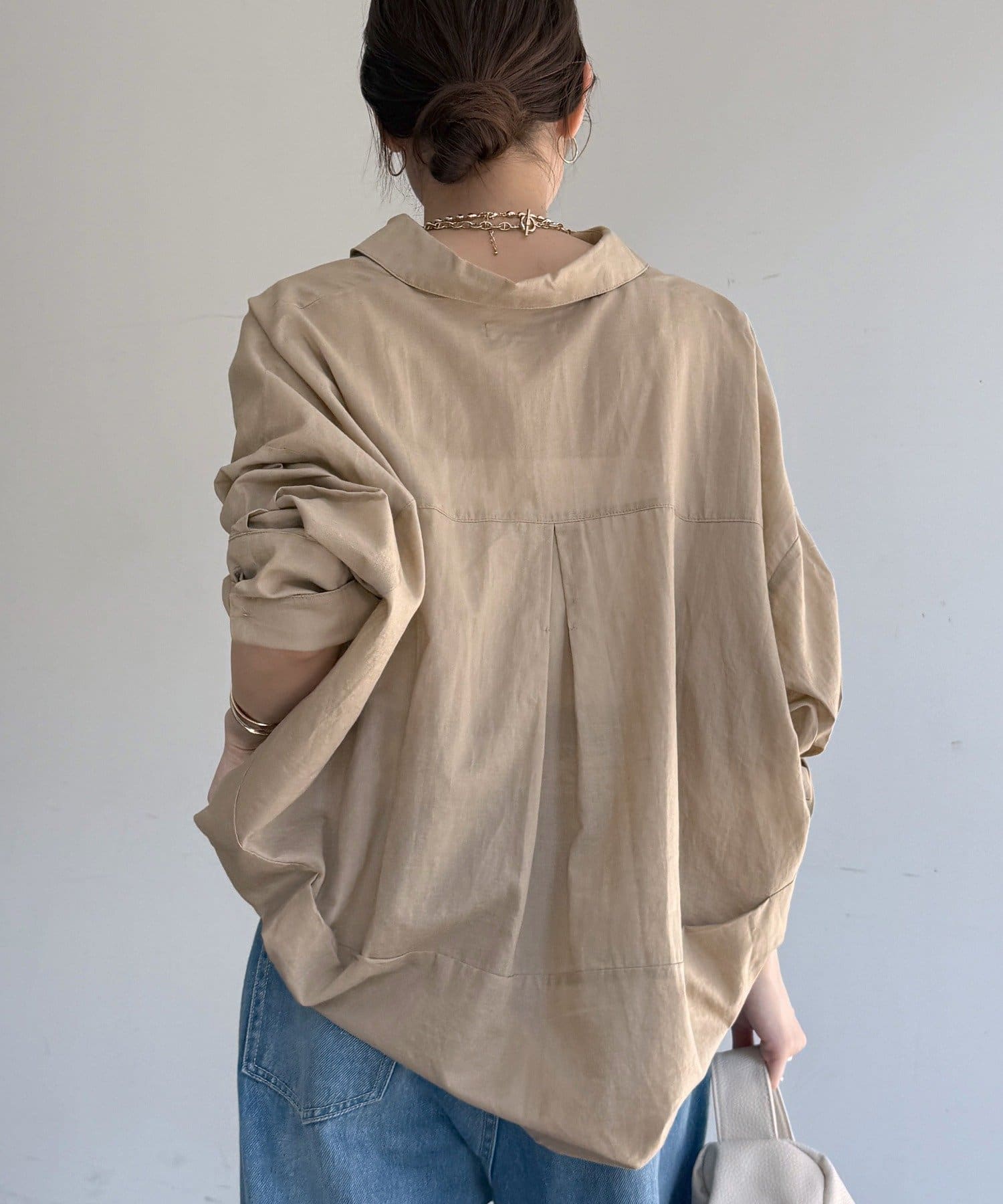 肩の力を抜いたオーバーシルエットで、大人の余裕を感じさせる一着です。