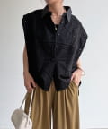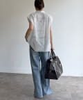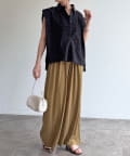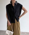 肩先を少し纏うデザインになっており、ノースリーブながらも