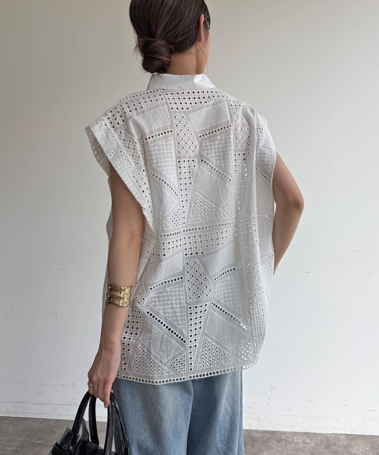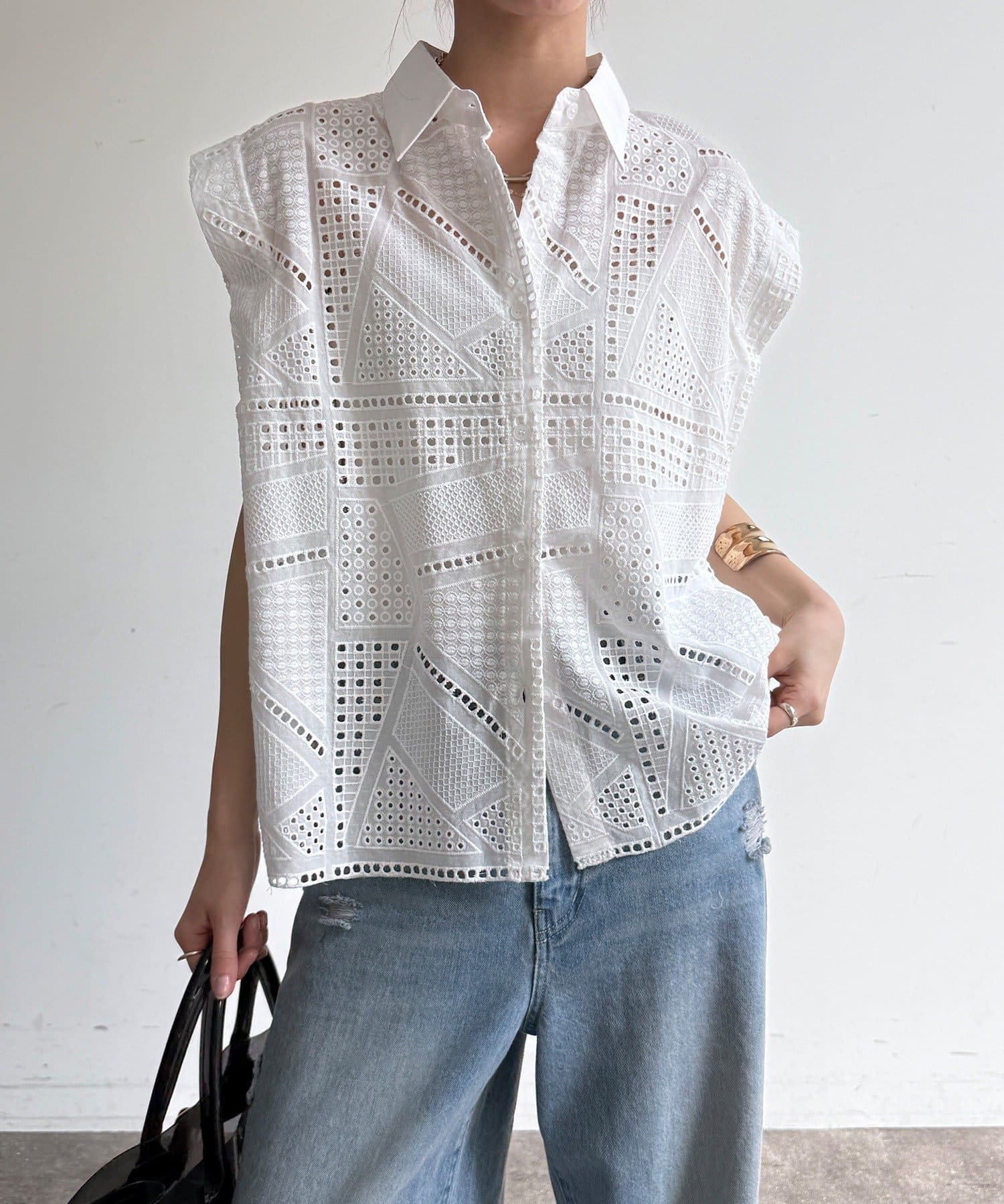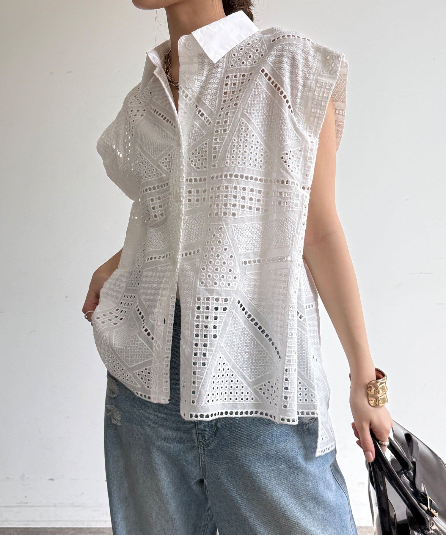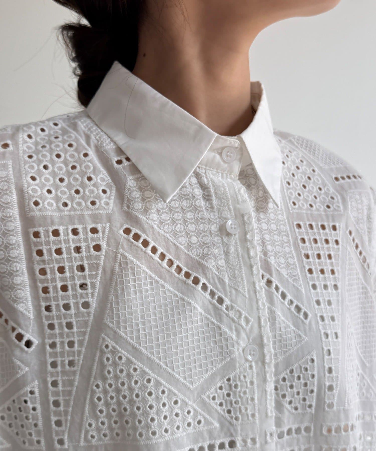 幾何学模様が洗練された印象に。大人の贅沢カットワークシャツ