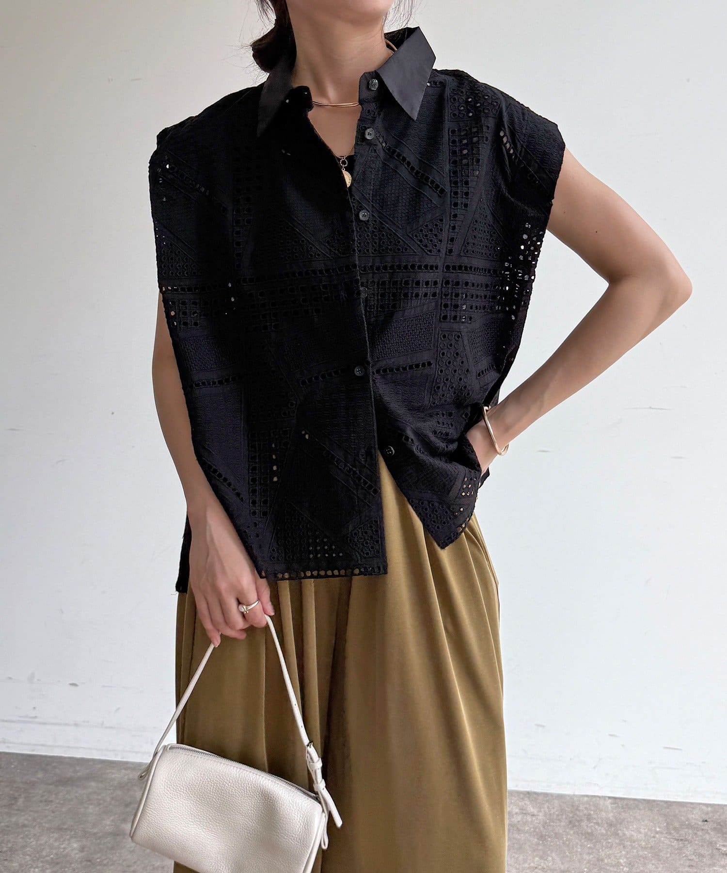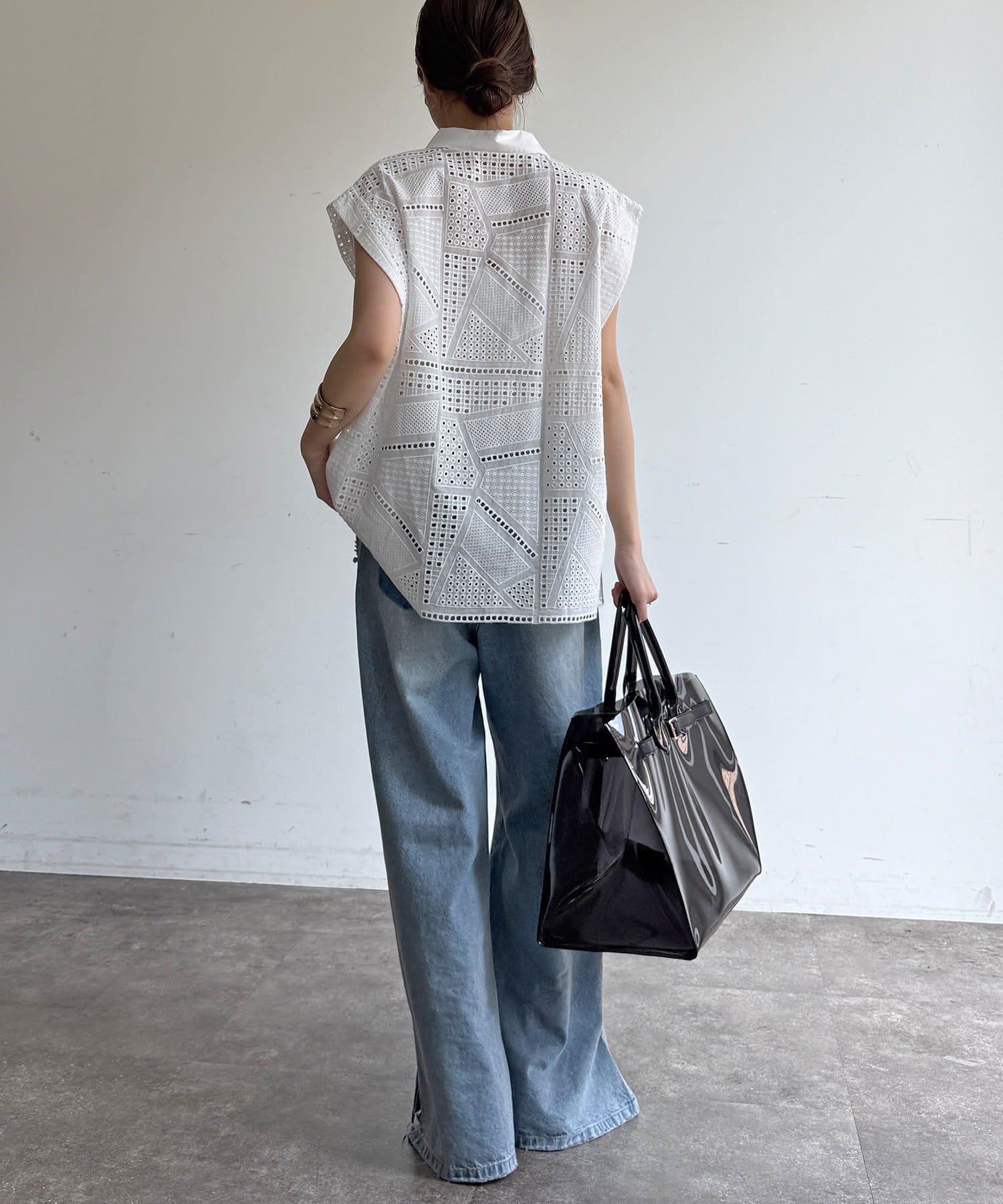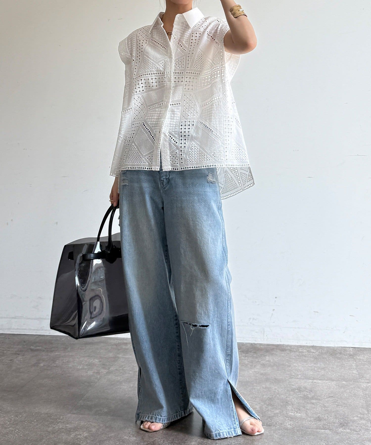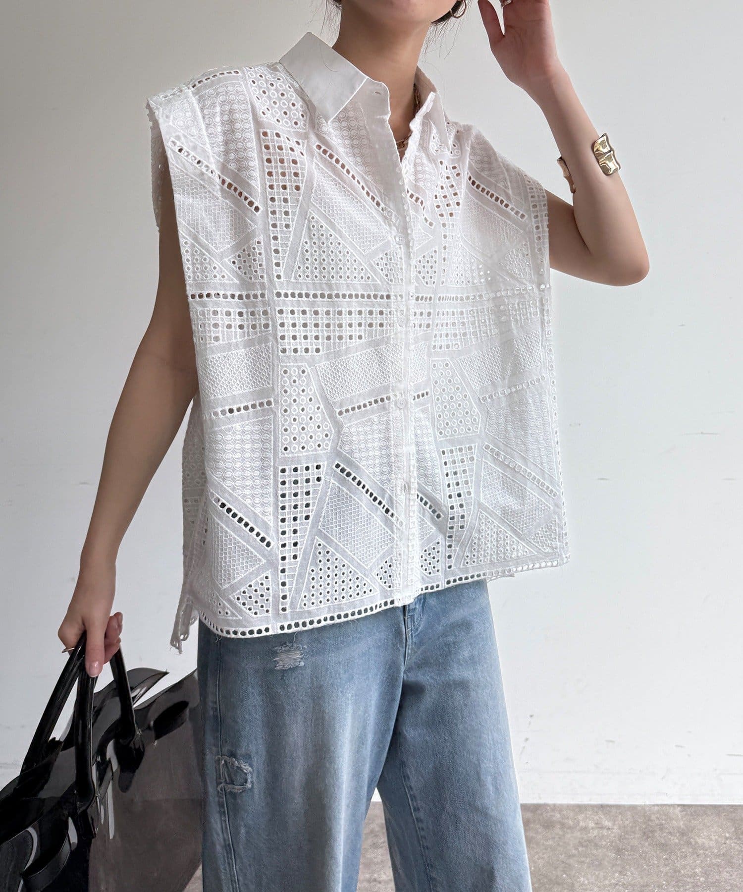 幾何学模様が洗練された印象に。大人の贅沢カットワークシャツ