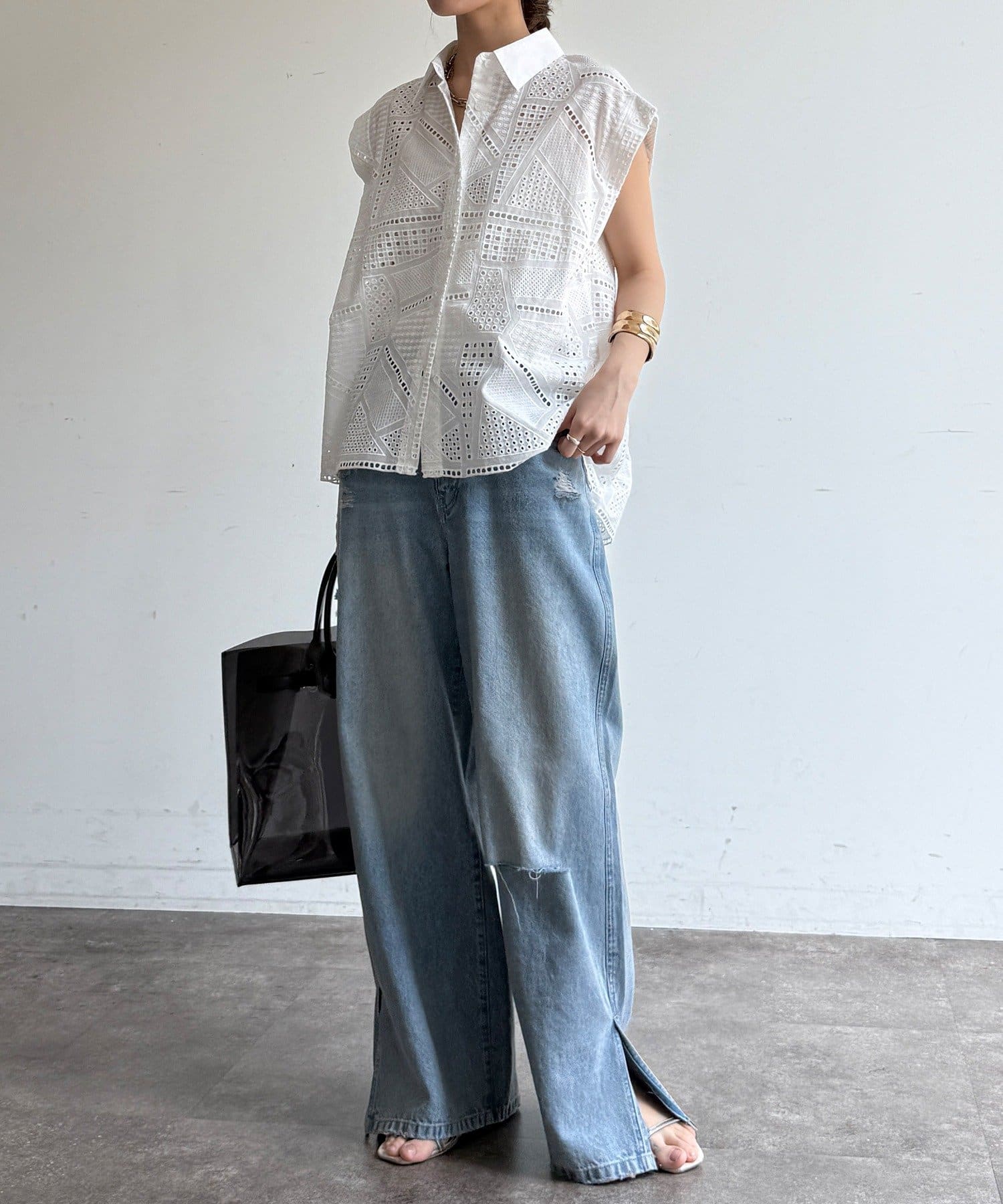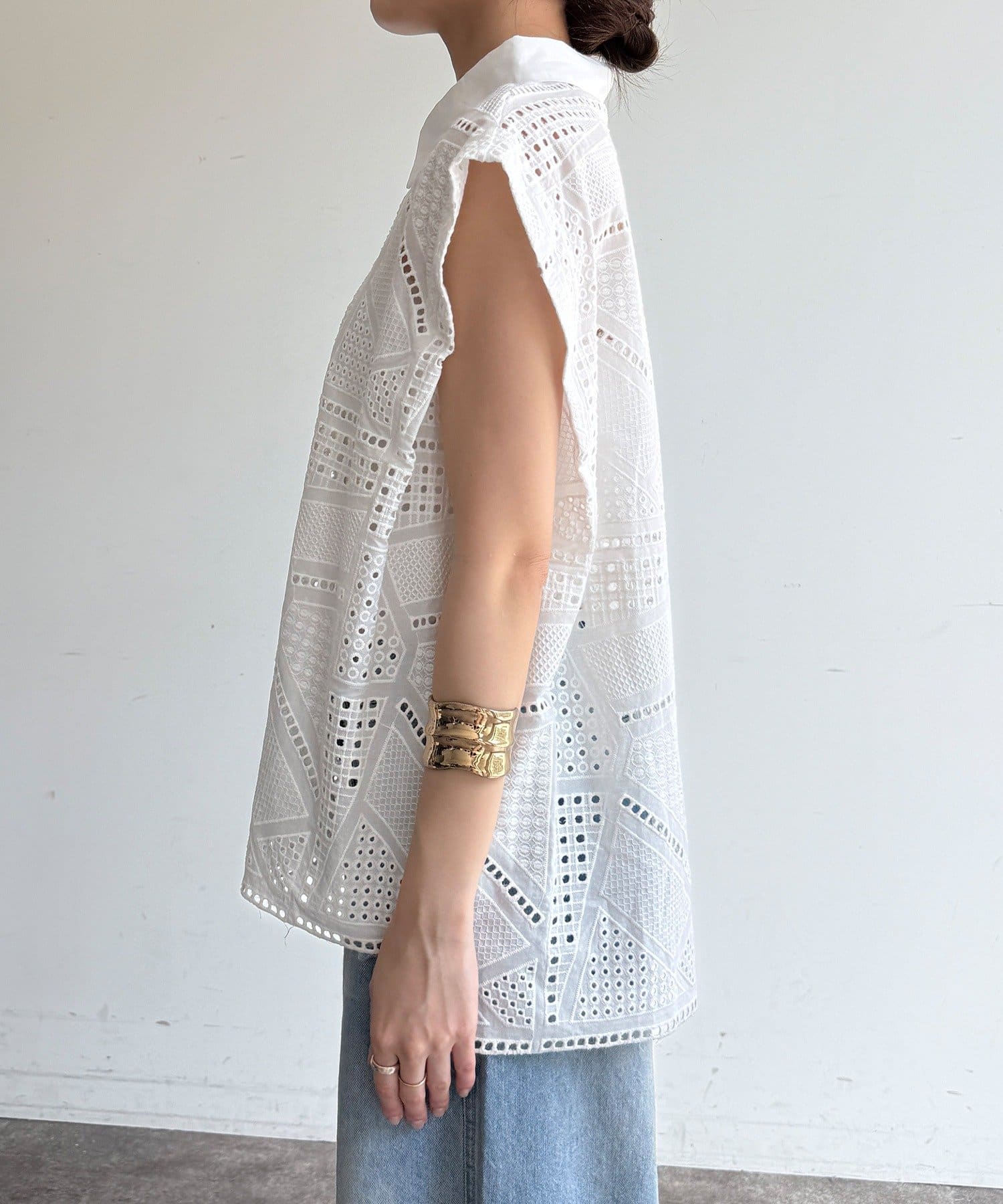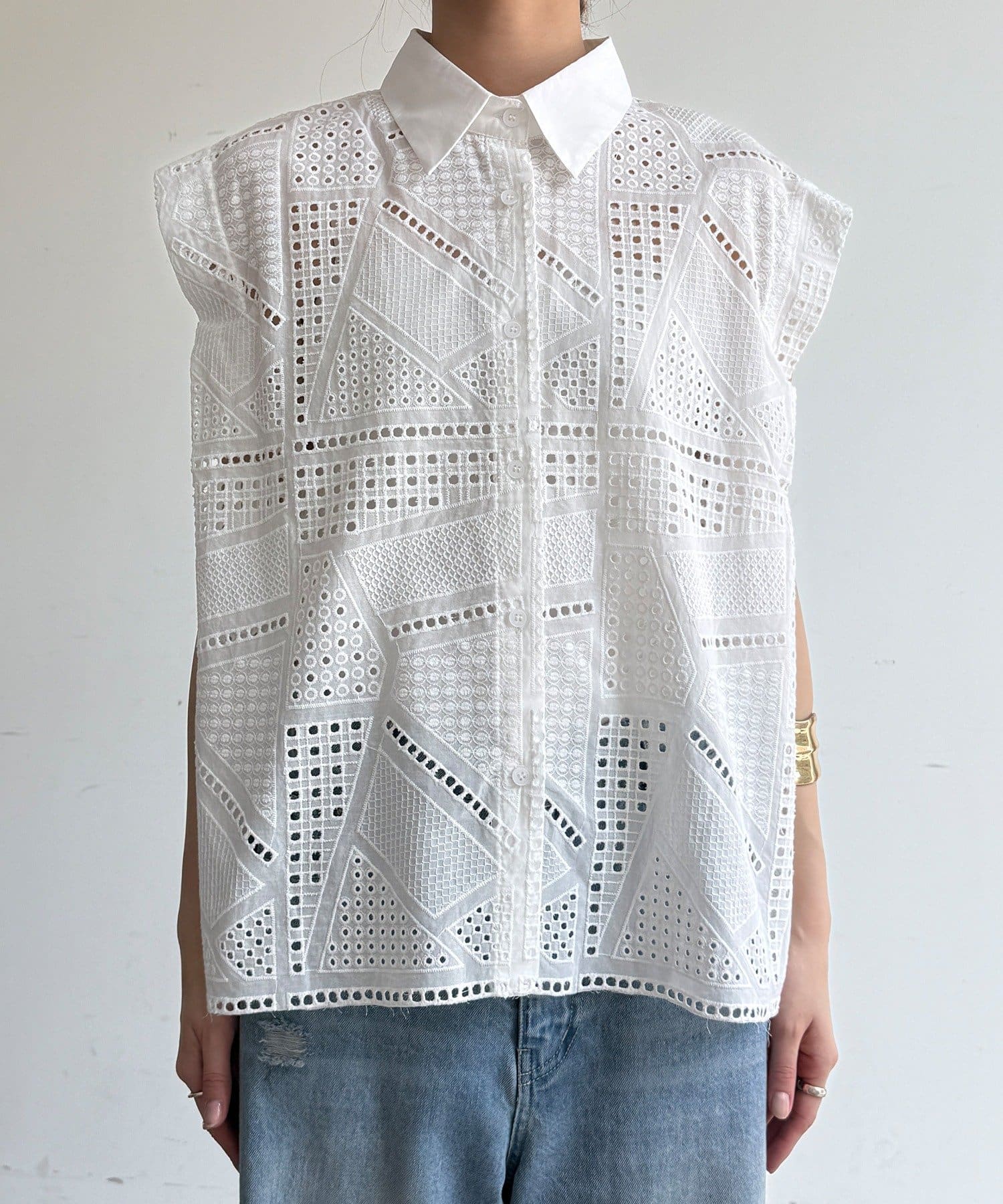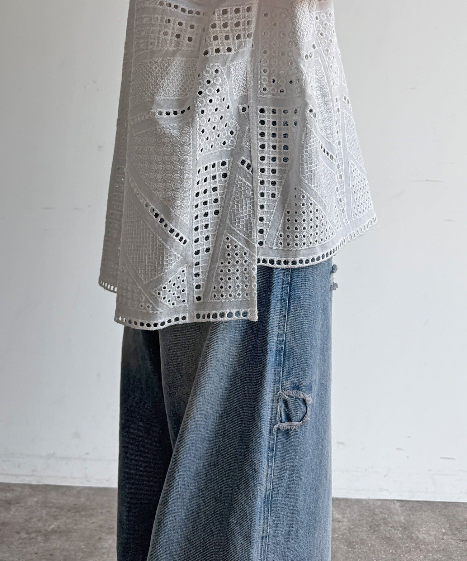 DOUDOU(ドゥドゥ) 【WEB限定】カットワークレースシャツ