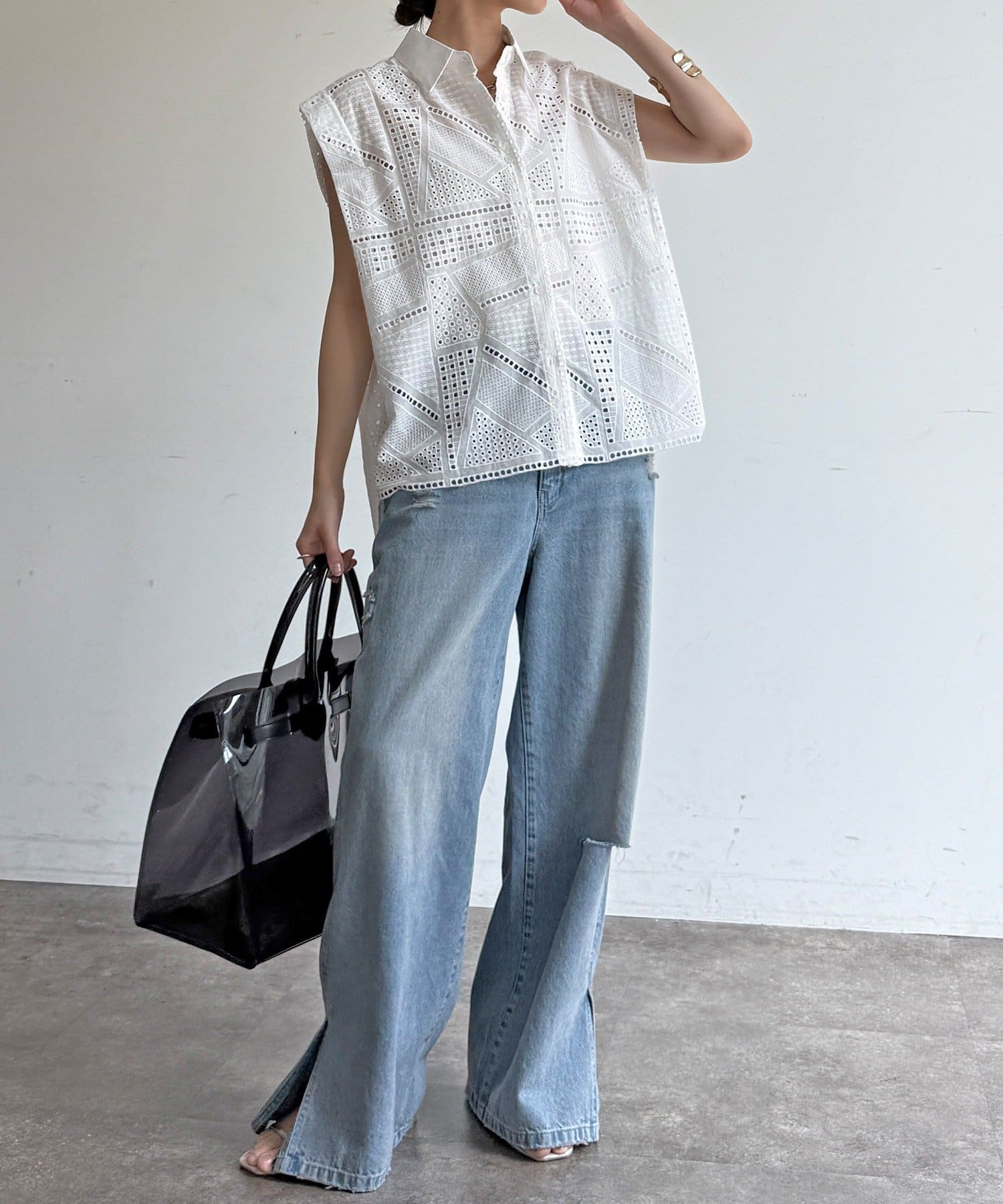 • DOUDOU(ドゥドゥ) 【WEB限定】カットワークレースシャツ
