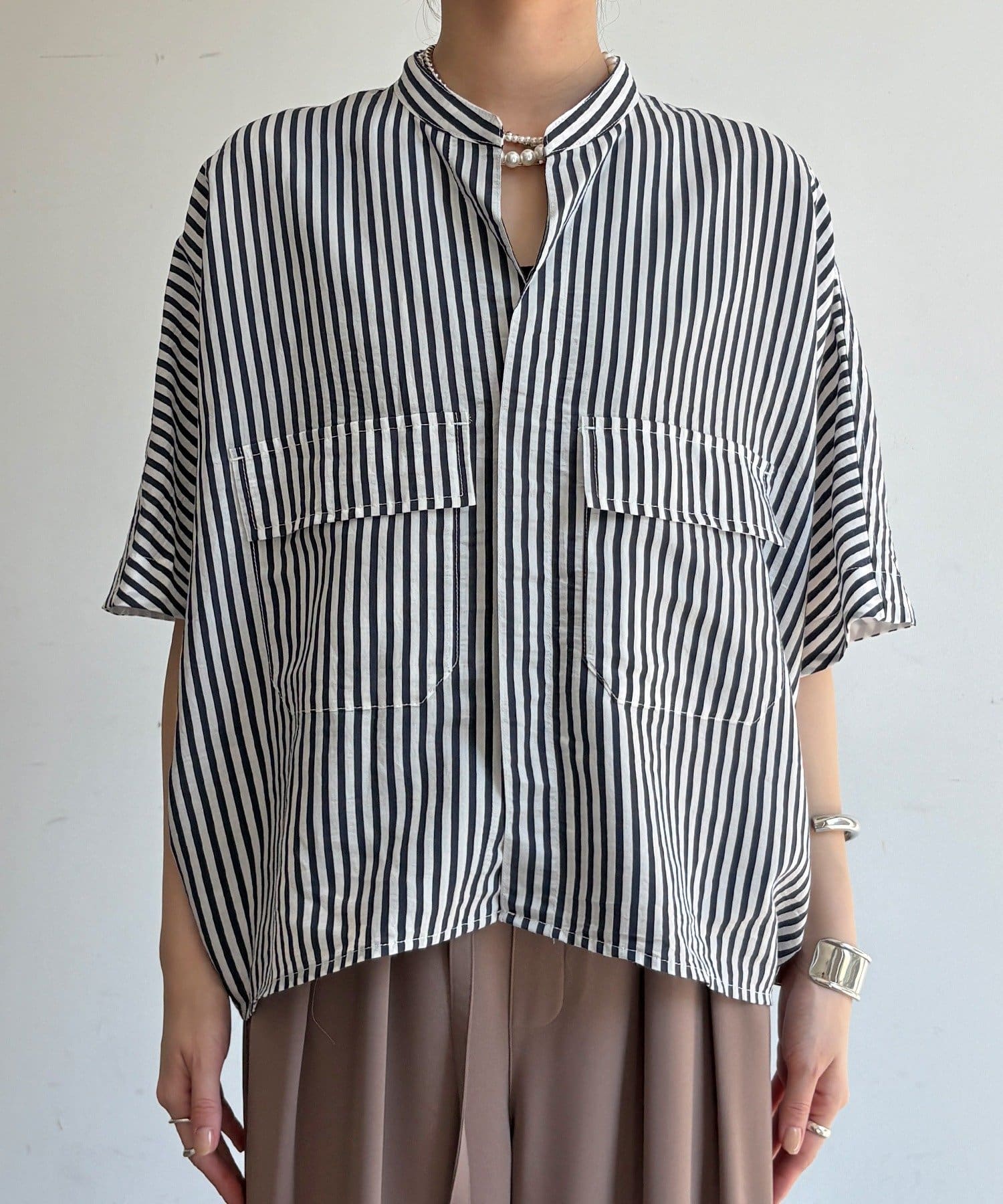 ストライプダブルポケットシャツ