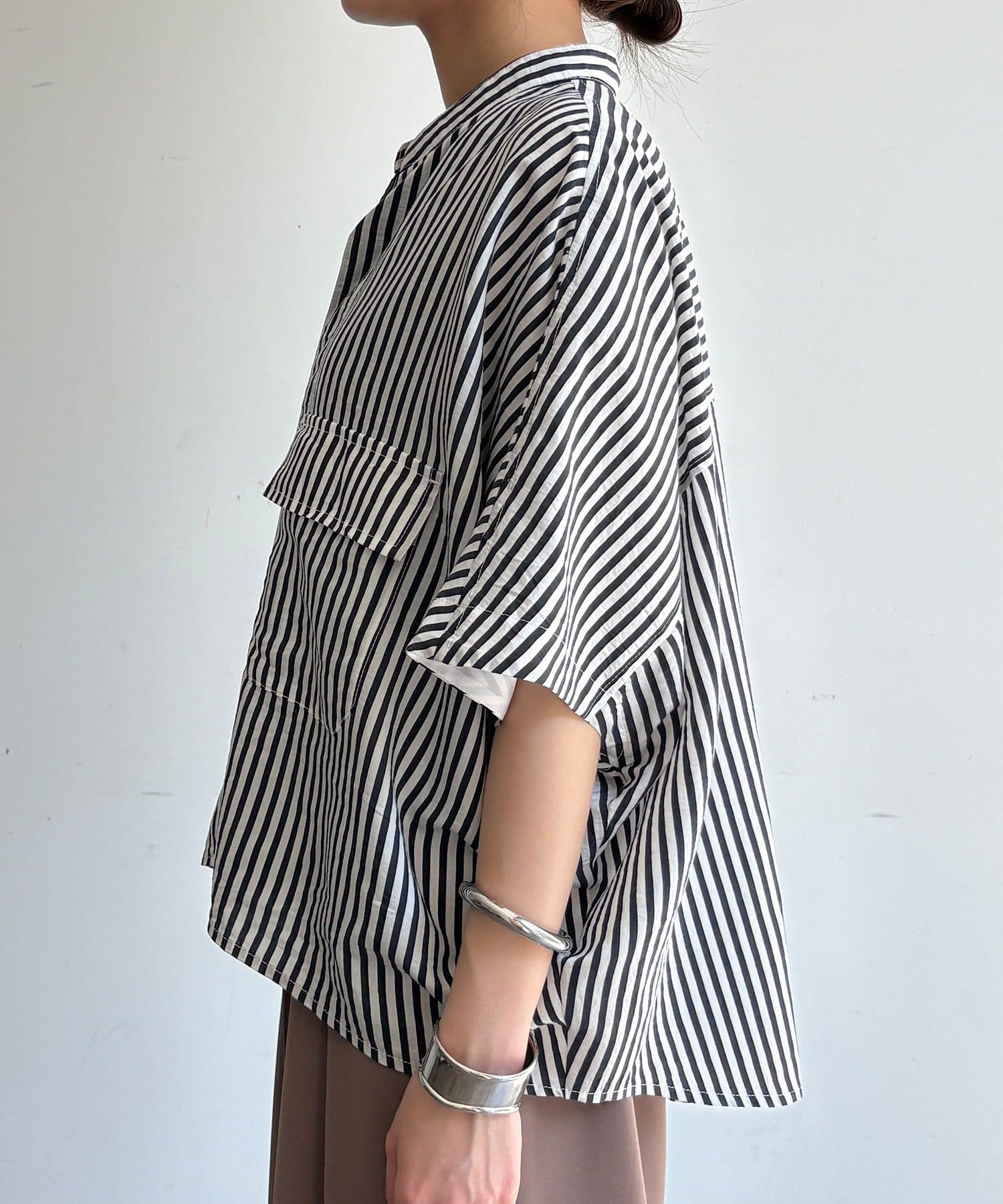 DOUDOU(ドゥドゥ) ストライプダブルポケットシャツ