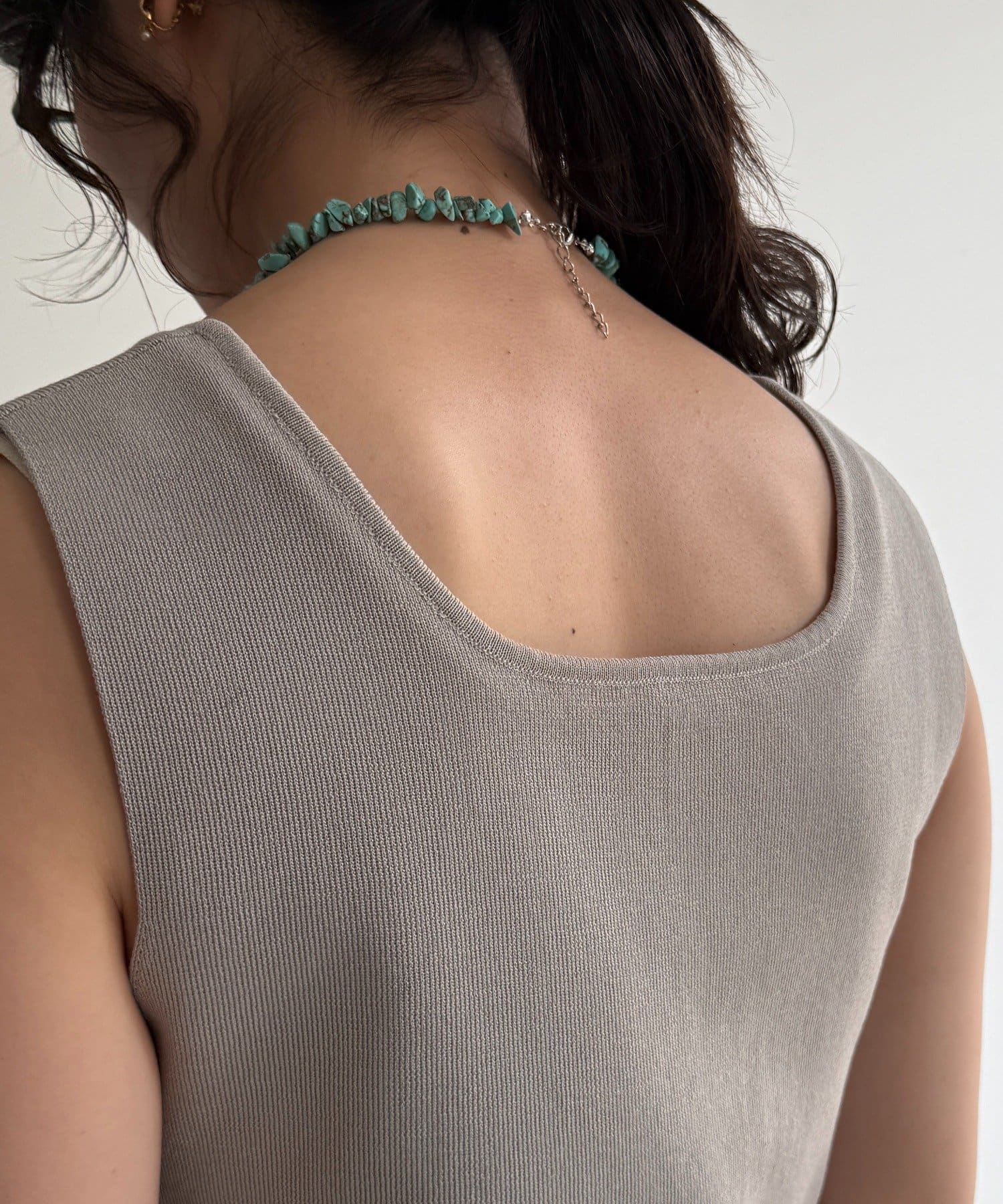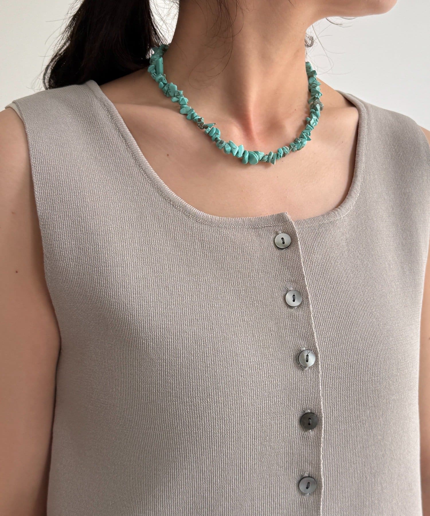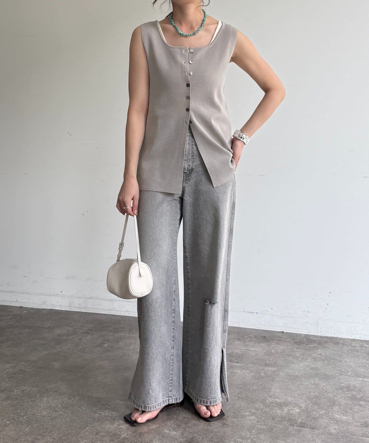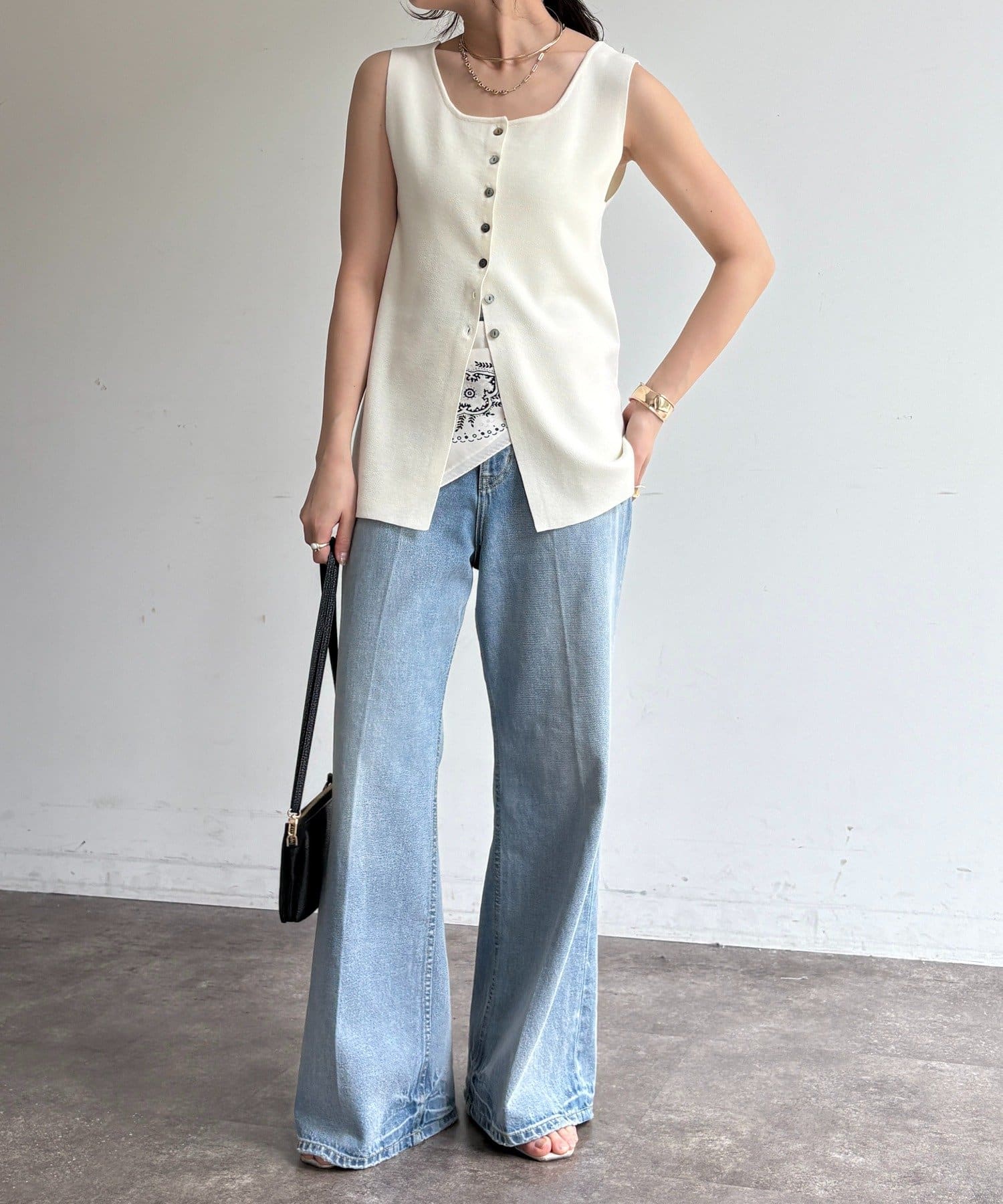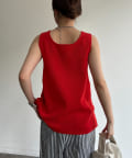すっきりとしたシルエットと上品なディテールが魅力のフロントボタンスクエアニットタンク。