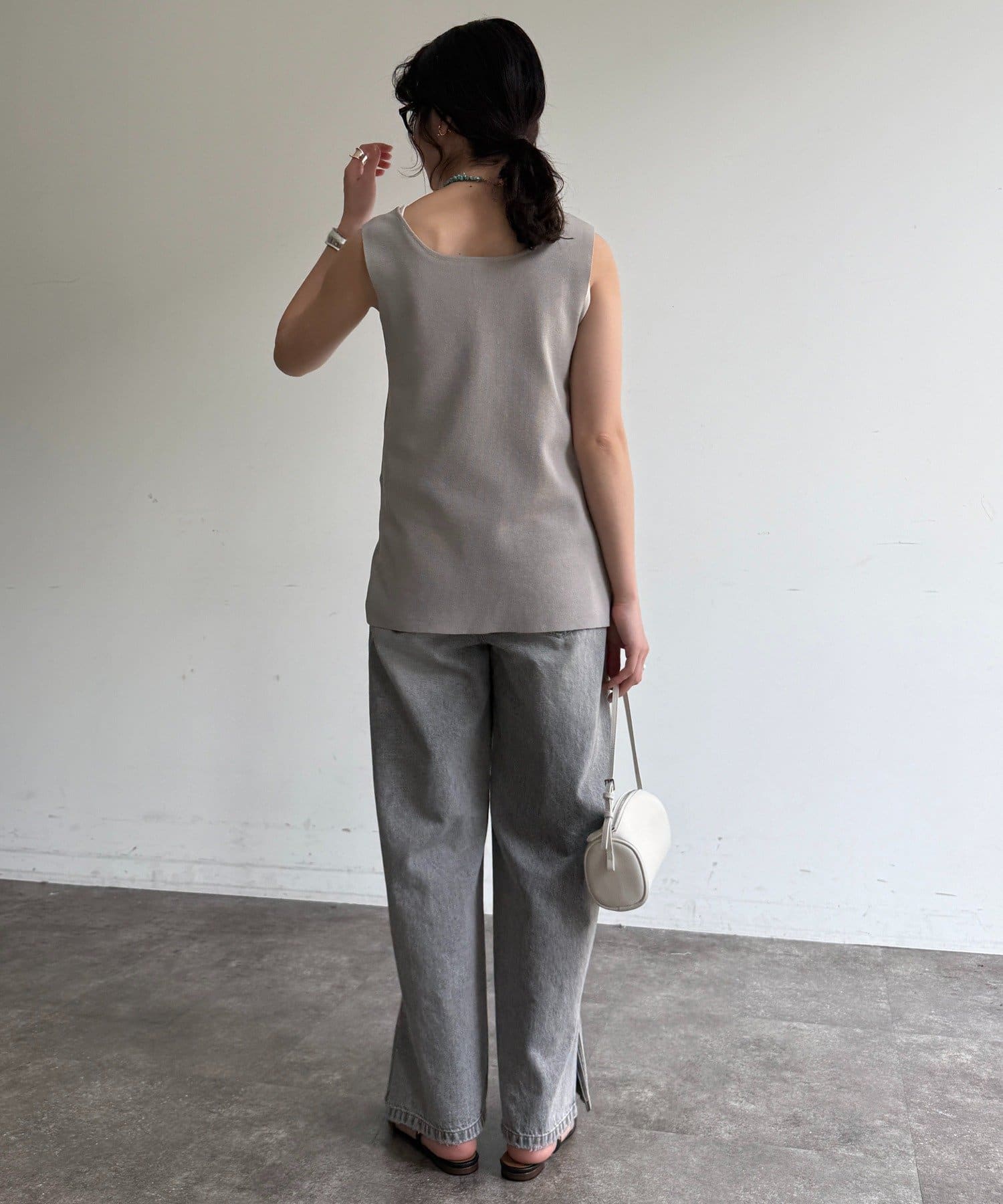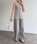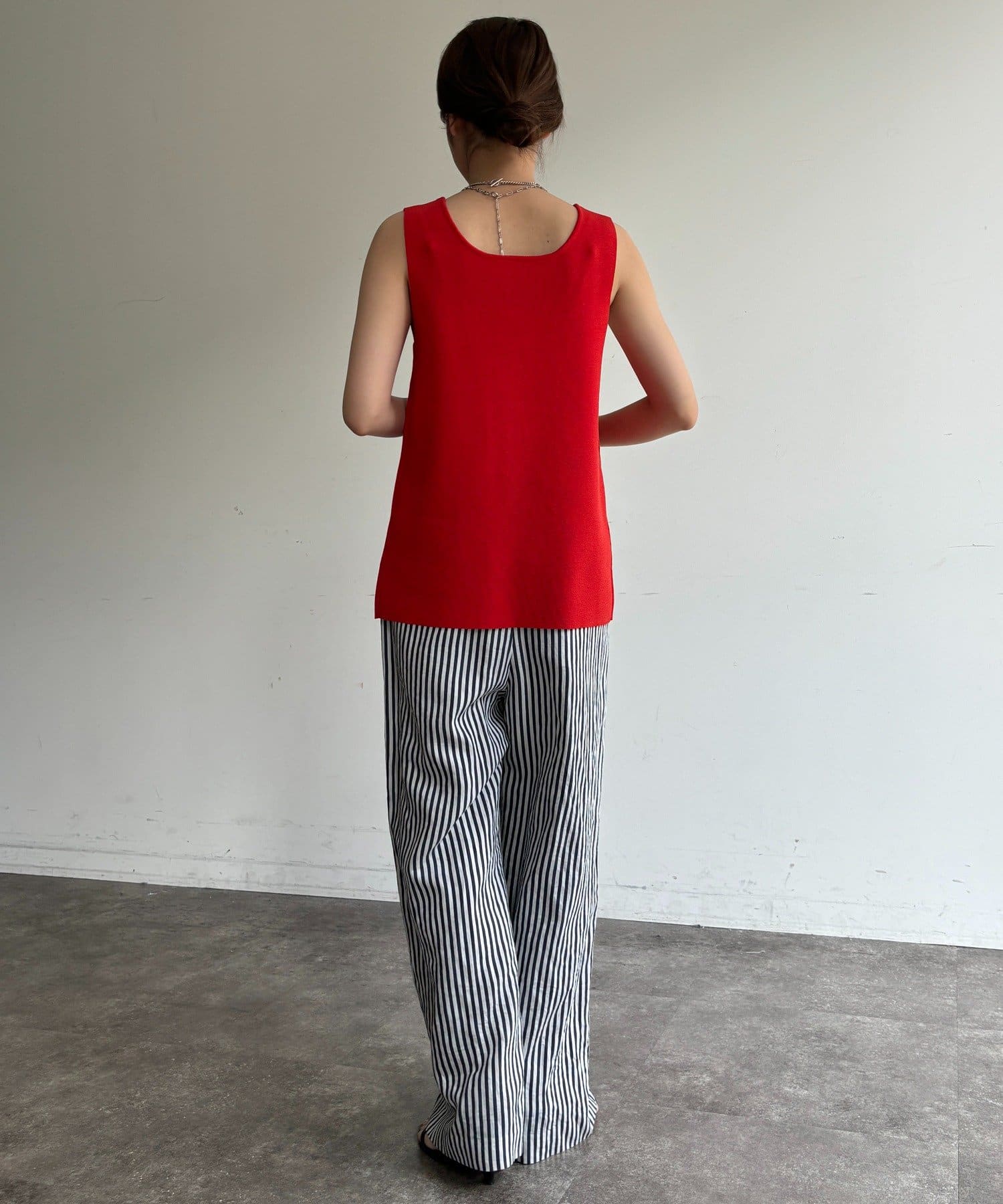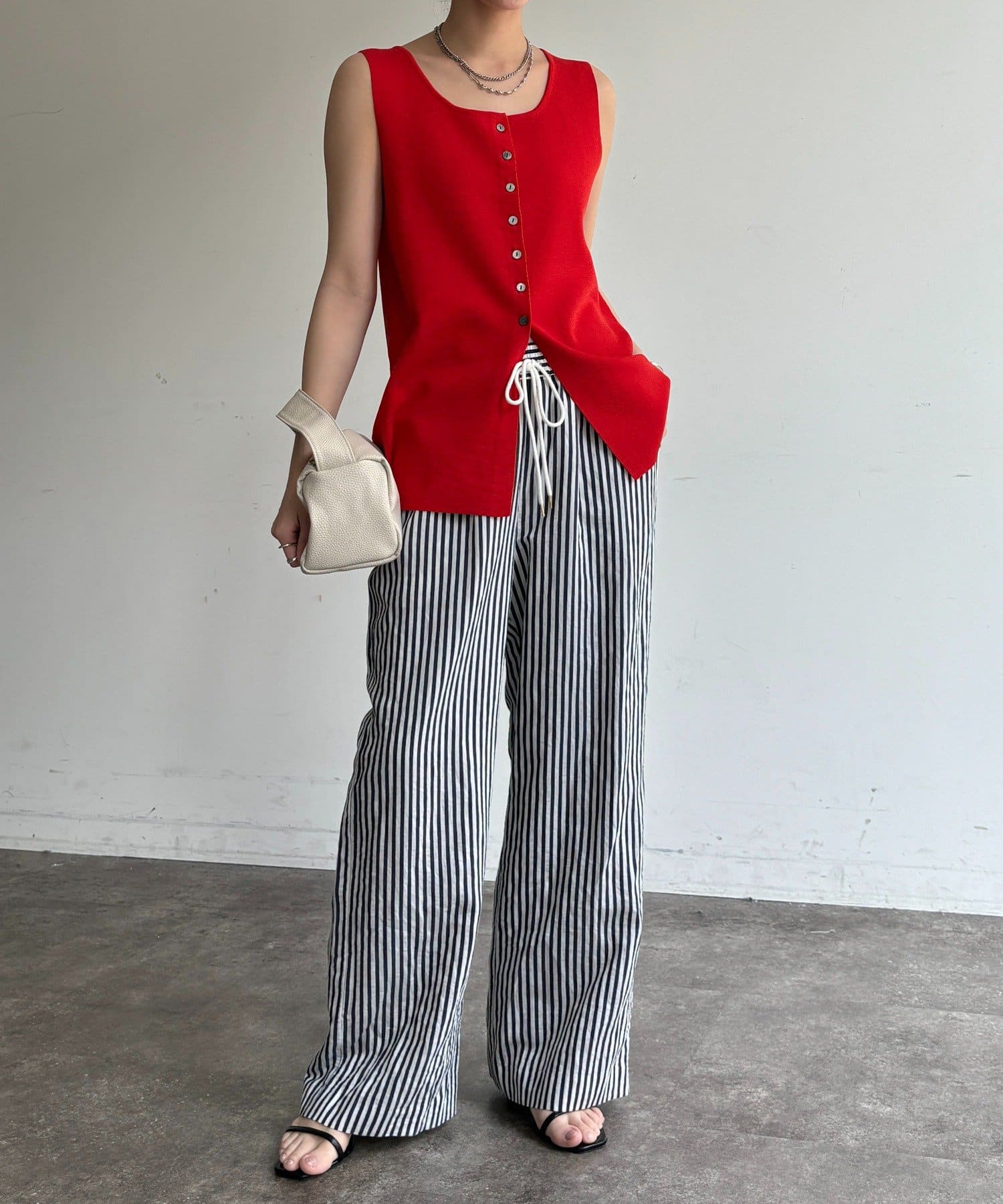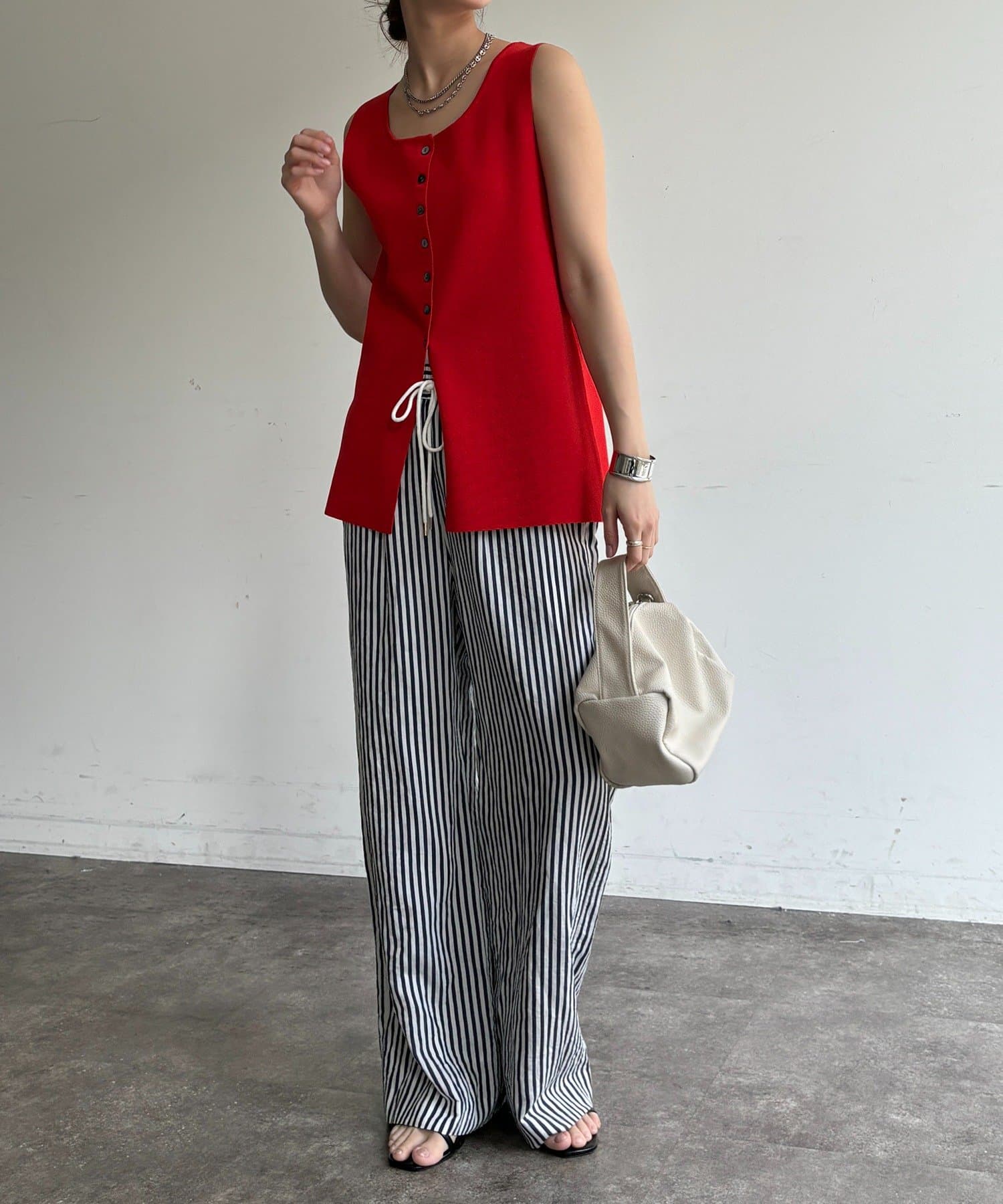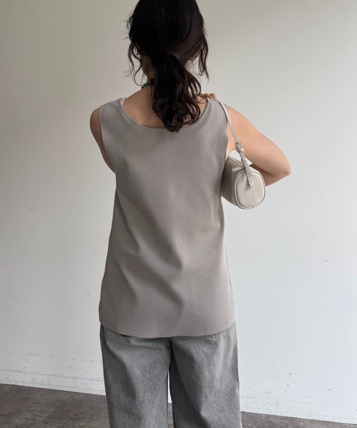 すっきりとしたシルエットと上品なディテールが魅力のフロントボタンスクエアニットタンク。