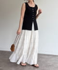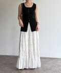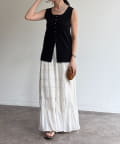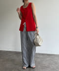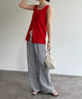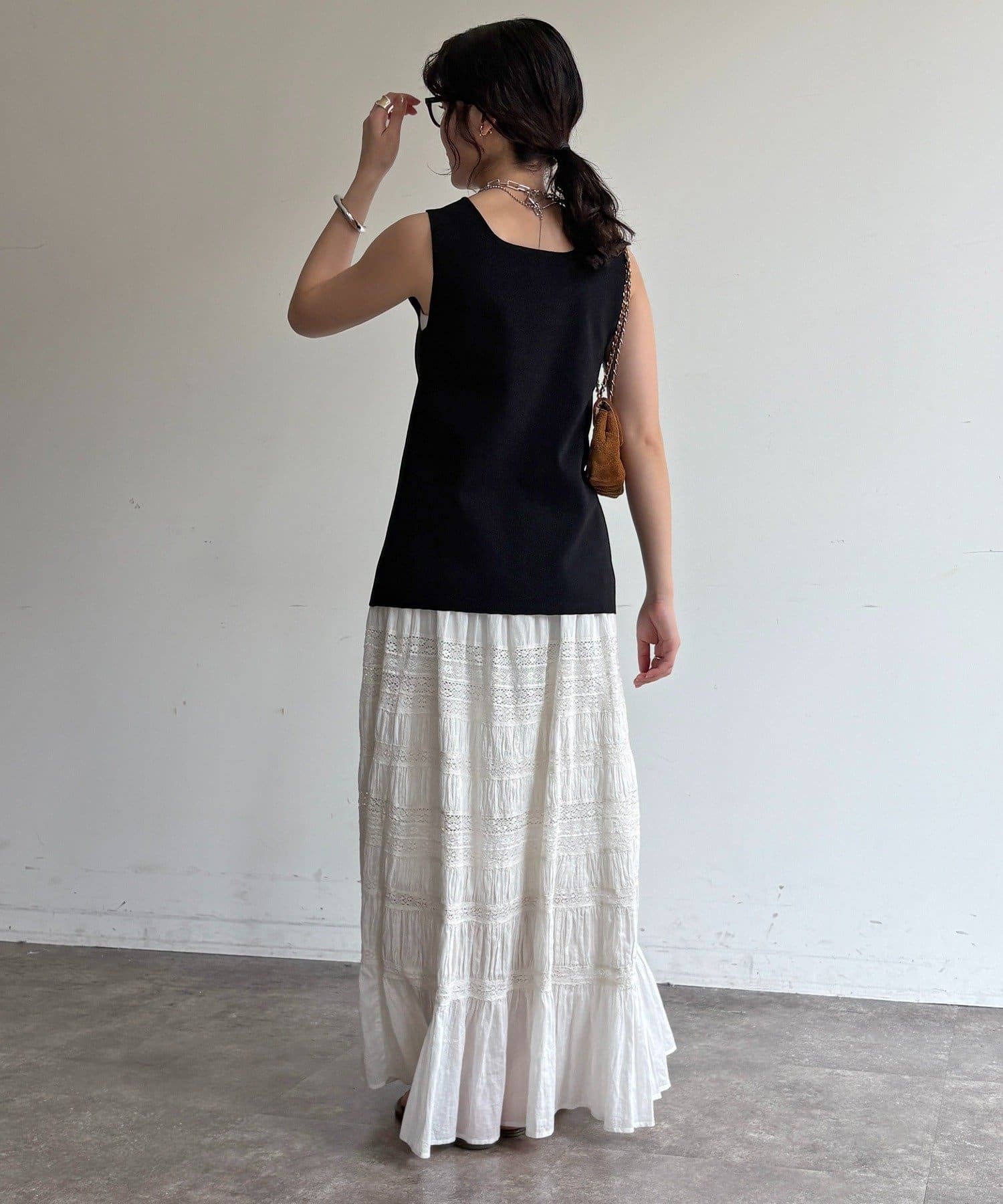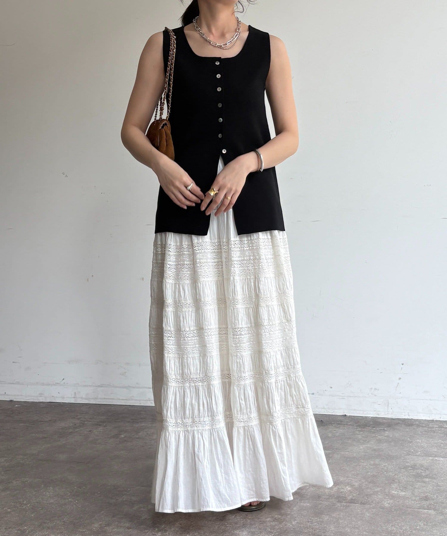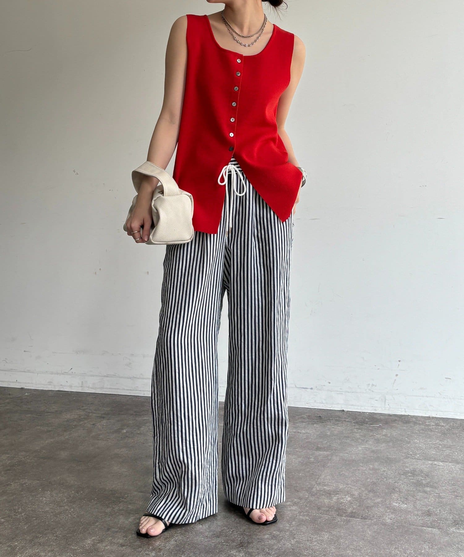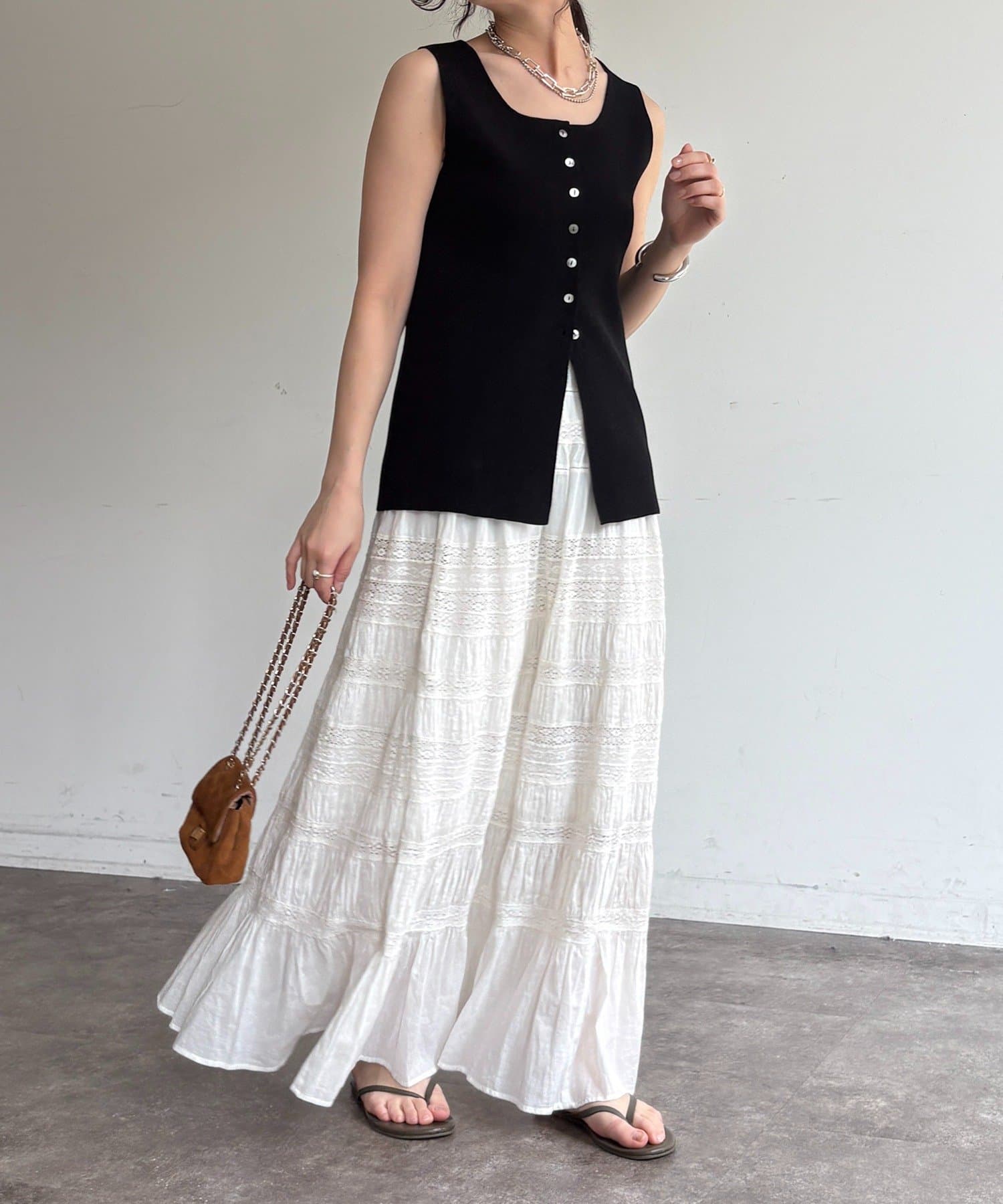 すっきりとしたシルエットと上品なディテールが魅力のフロントボタンスクエアニットタンク。