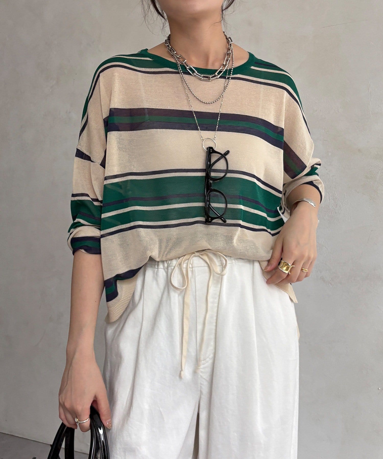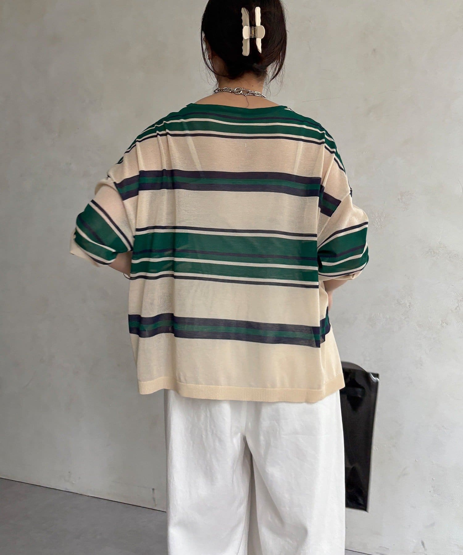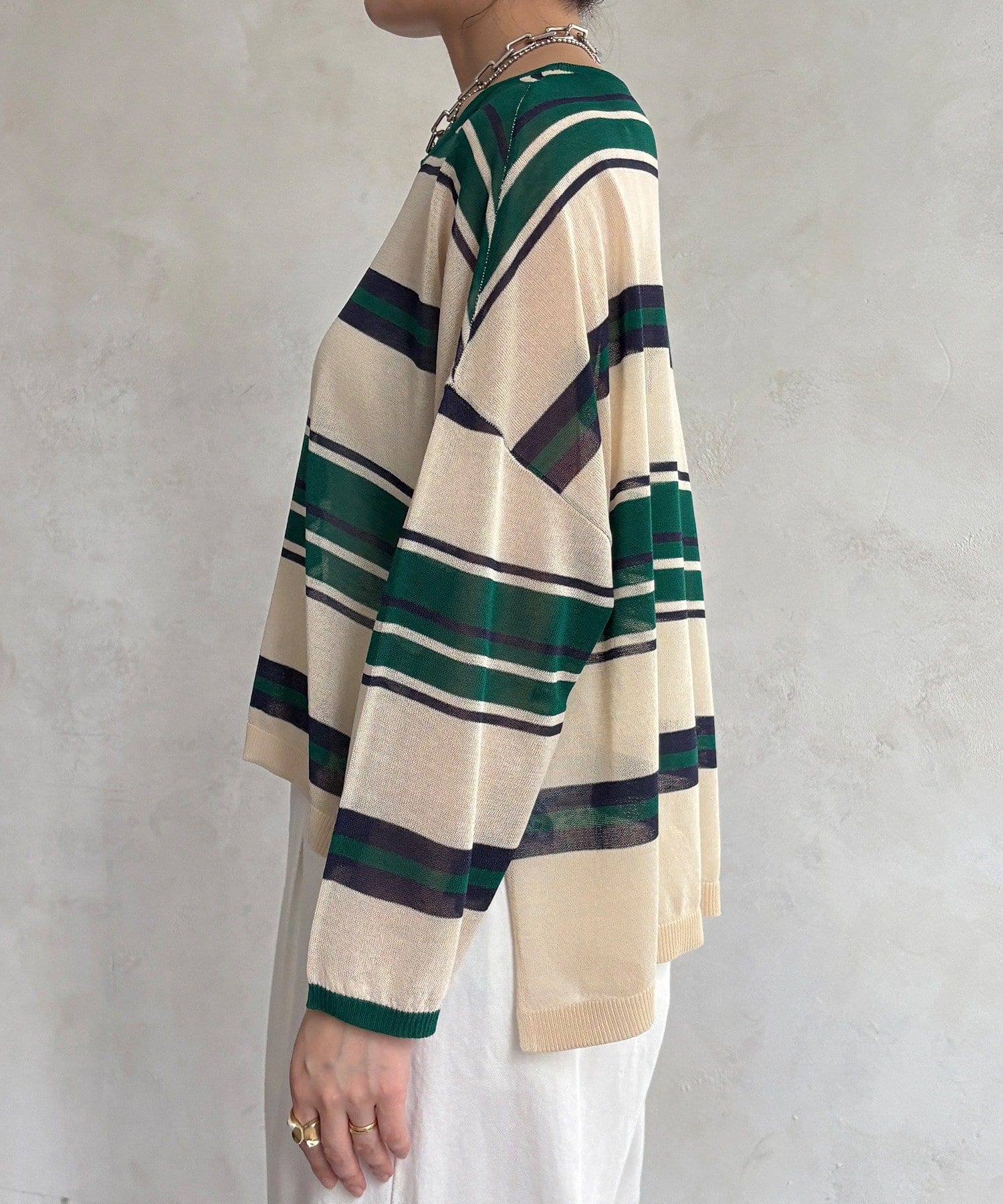 DOUDOU(ドゥドゥ) 【WEB限定】接触冷感マルチボーダーニットプルオーバー
