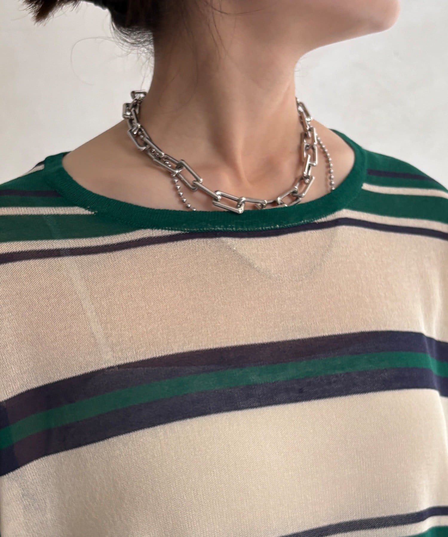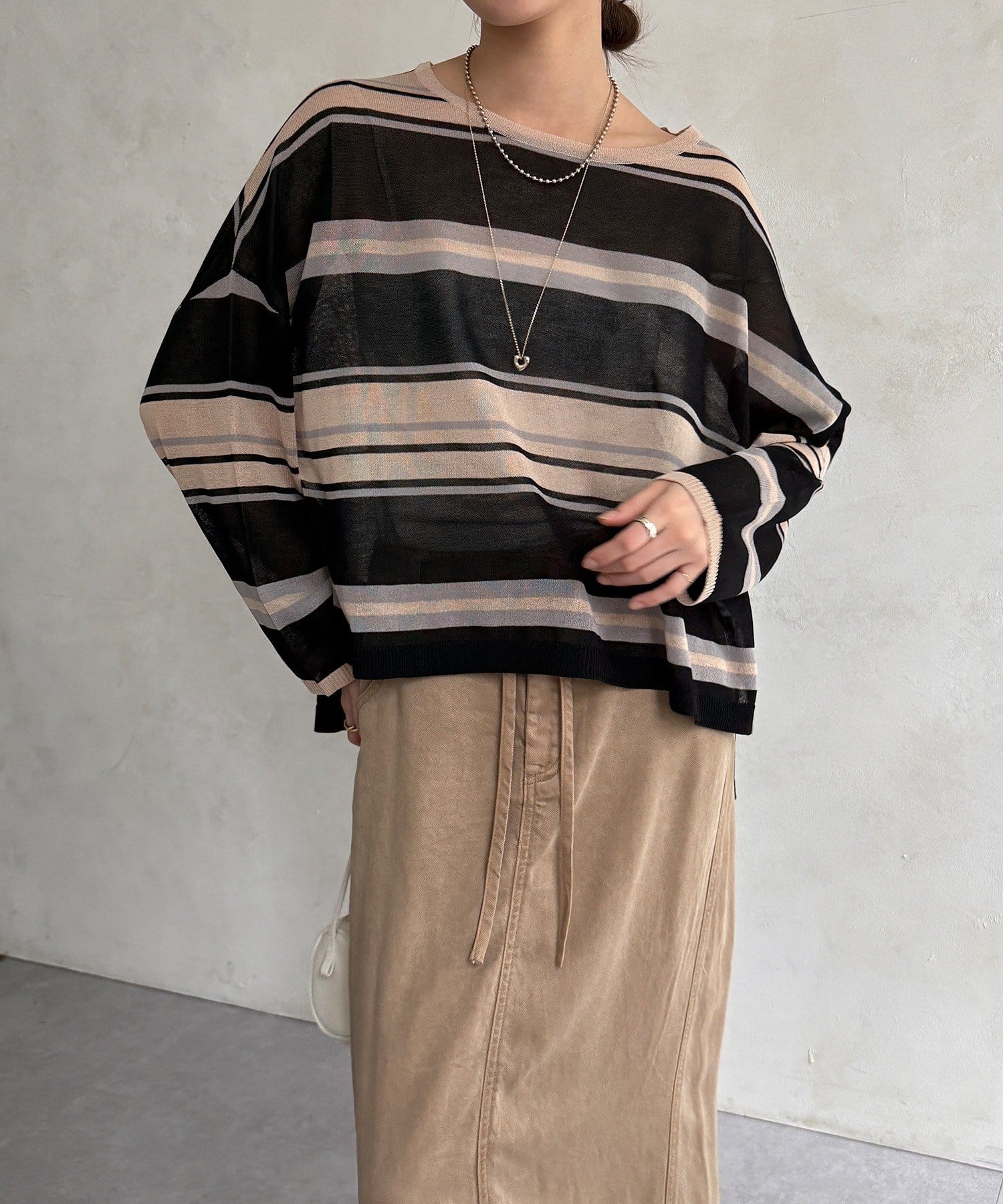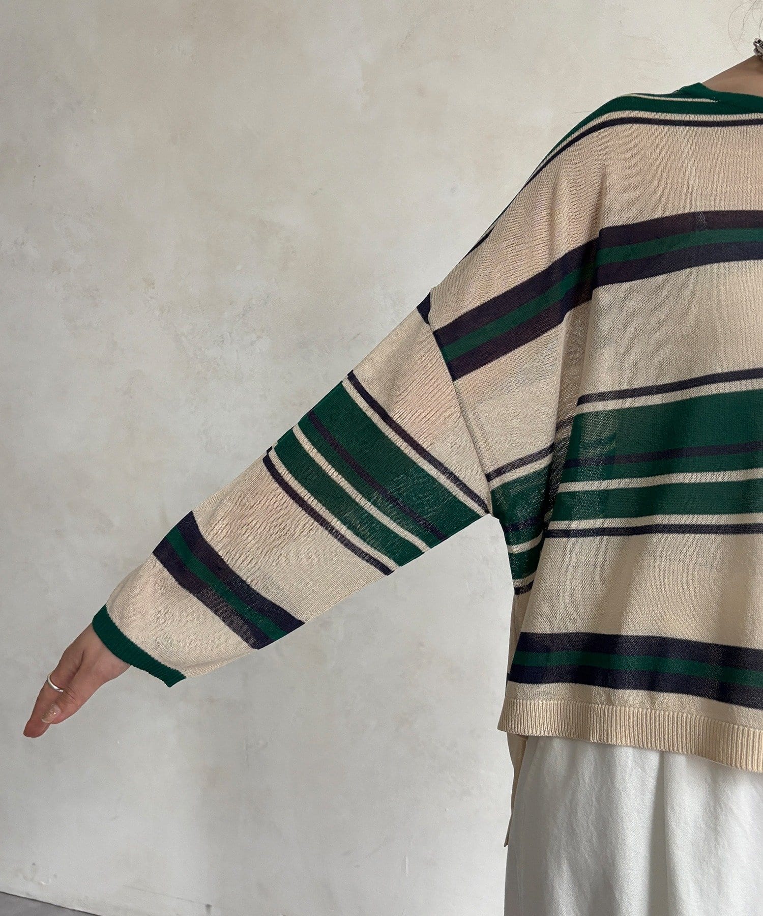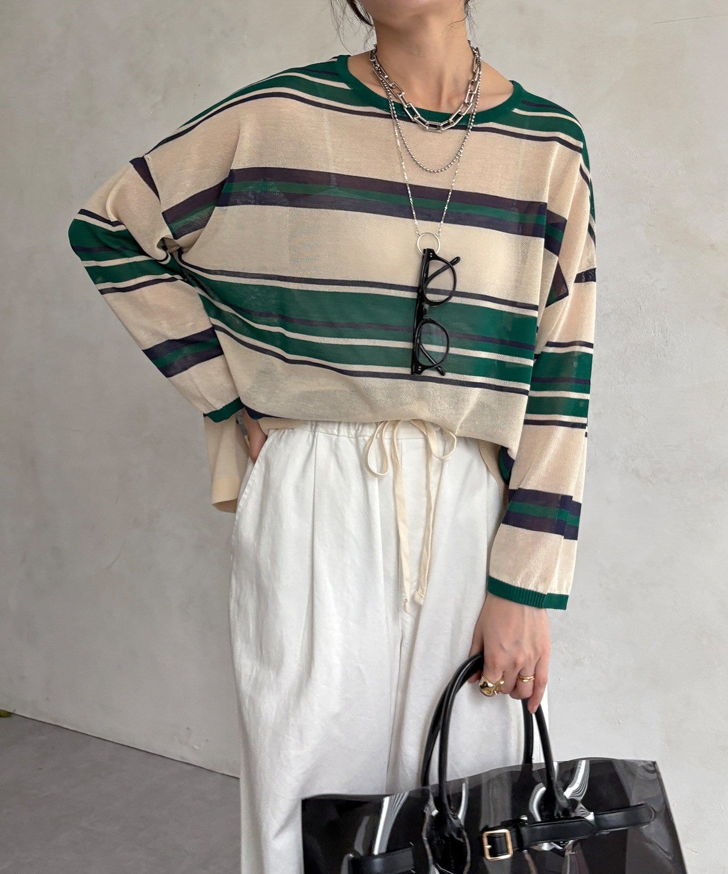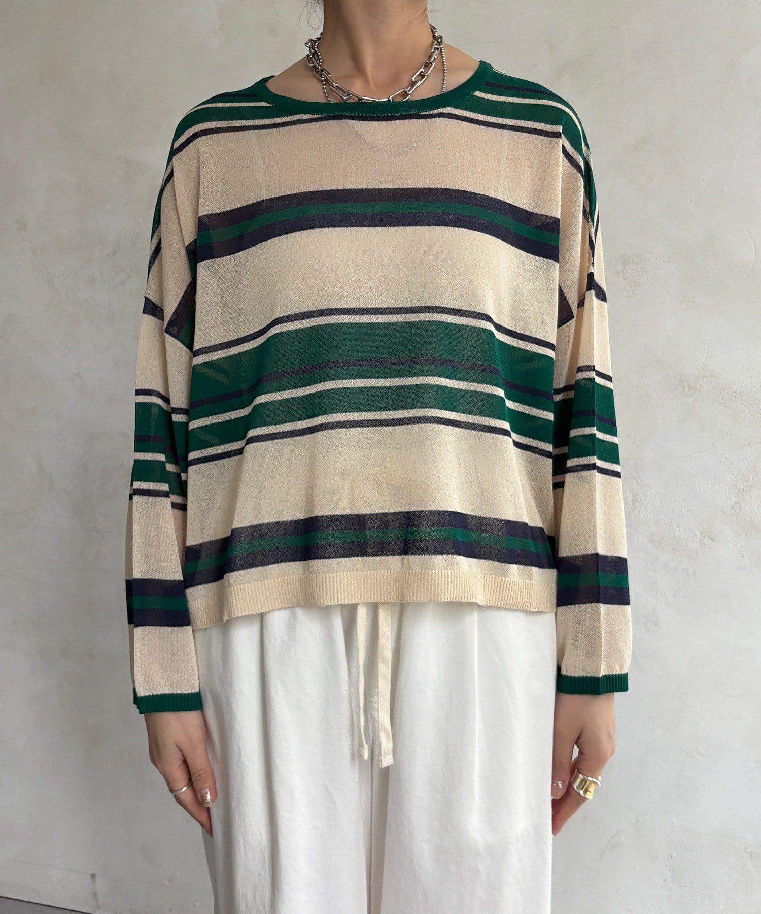 【WEB限定】接触冷感マルチボーダーニットプルオーバー