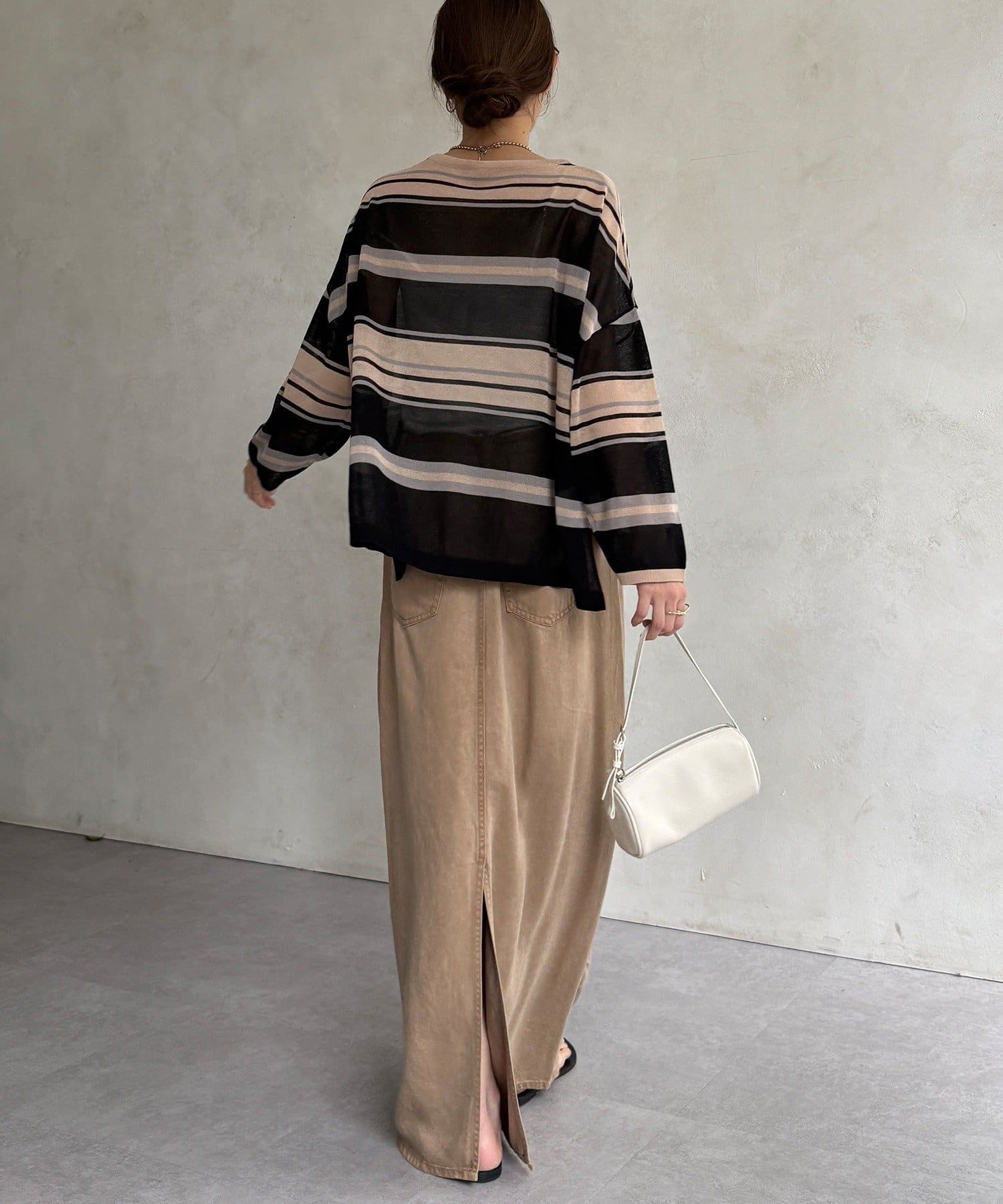 マルチボーダー柄がモードで都会的な印象を引き立てます。