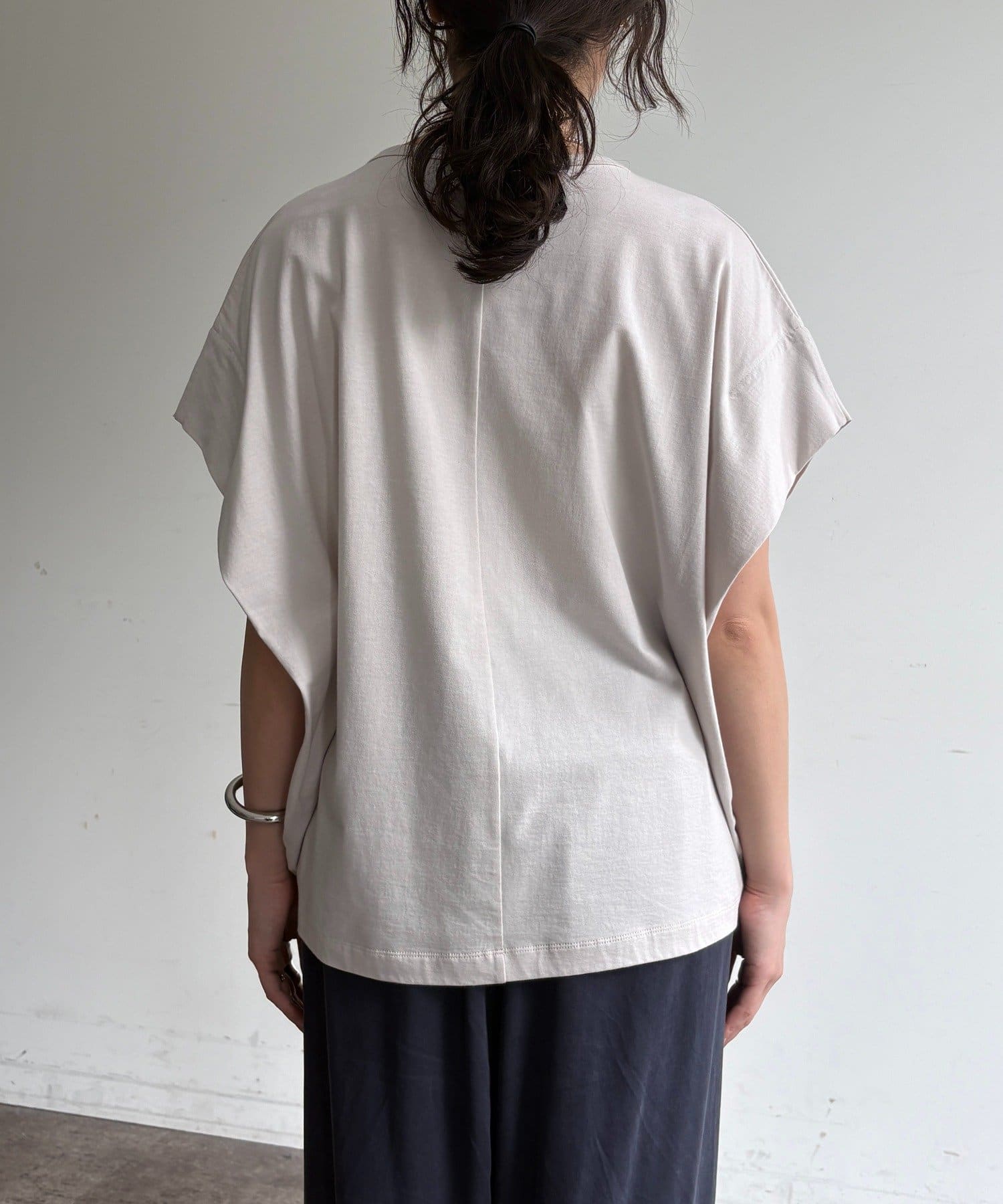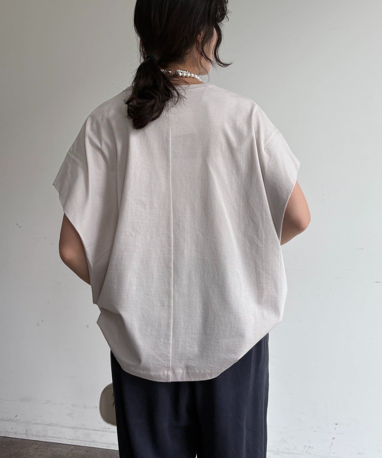さらに袖部分にタックを入れることで立体感が生まれ、シンプルながらもこなれたシルエットに仕上がっています。