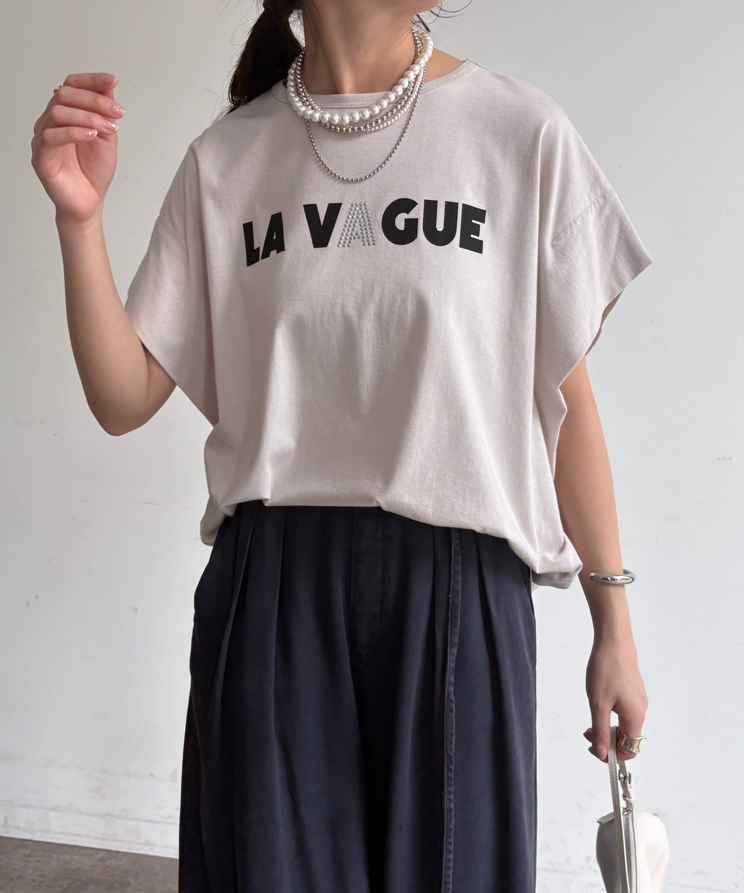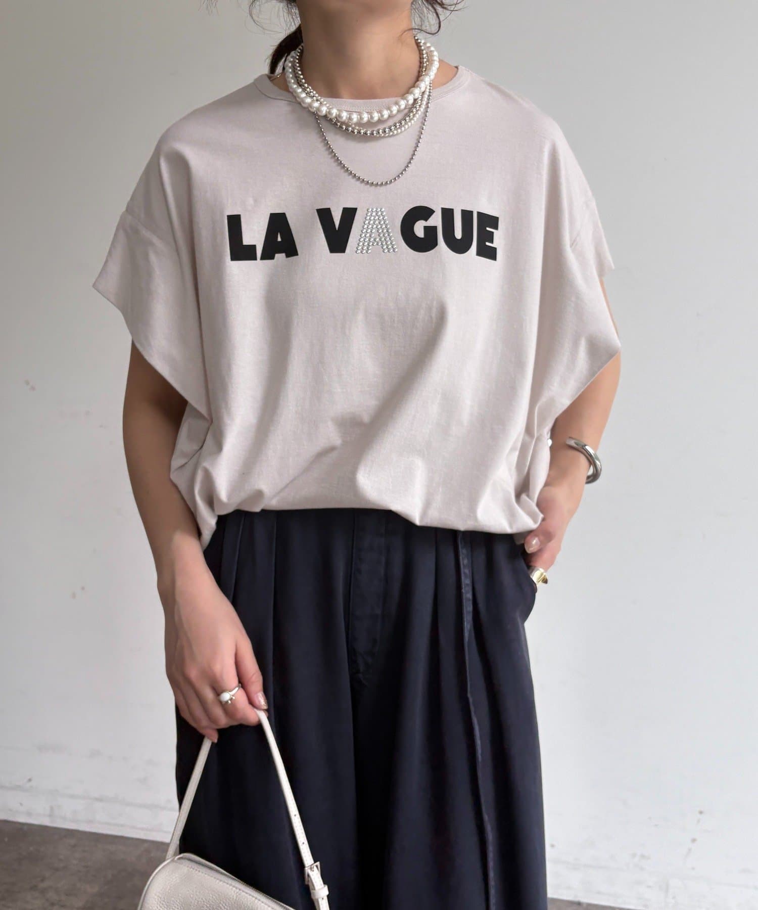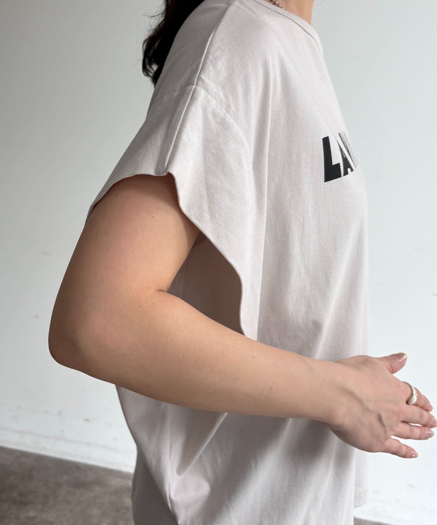 袖タックフレンチメタリックロゴTEE