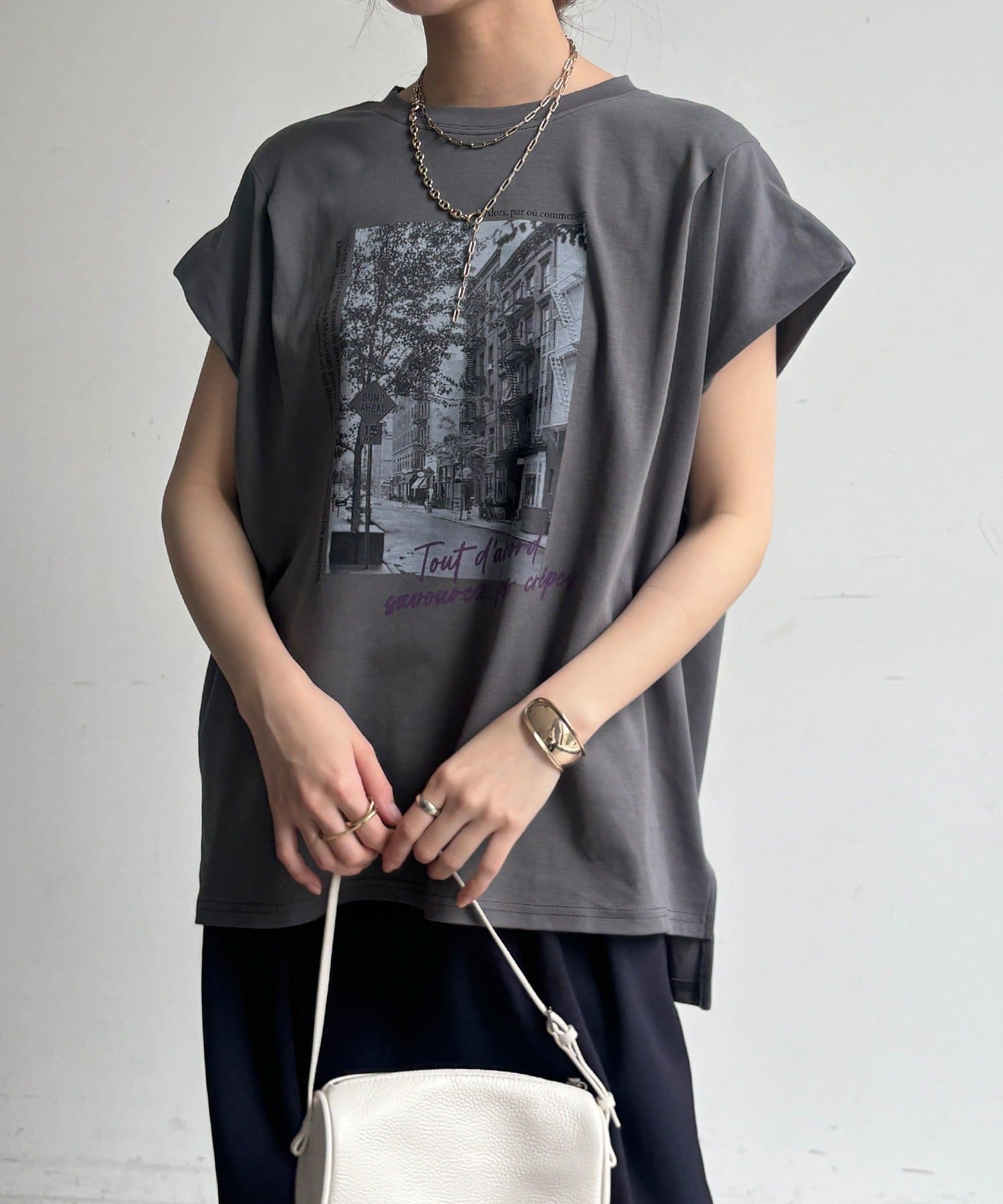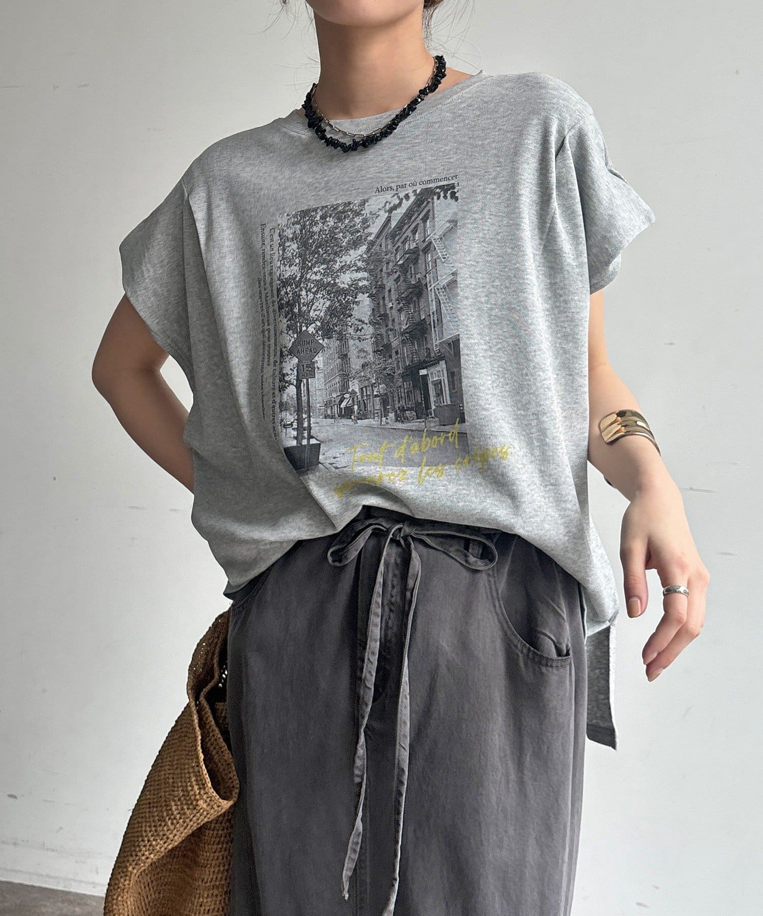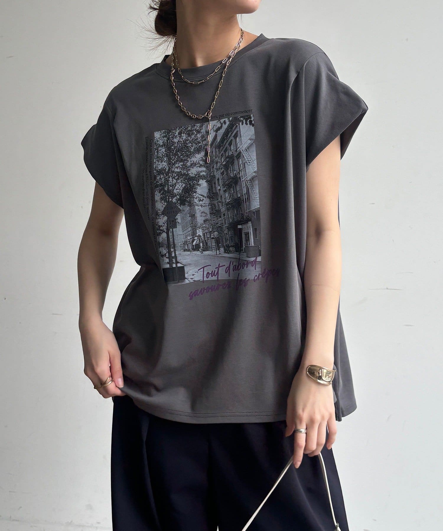 モノトーンのフォトプリントが目を惹くロゴTEE