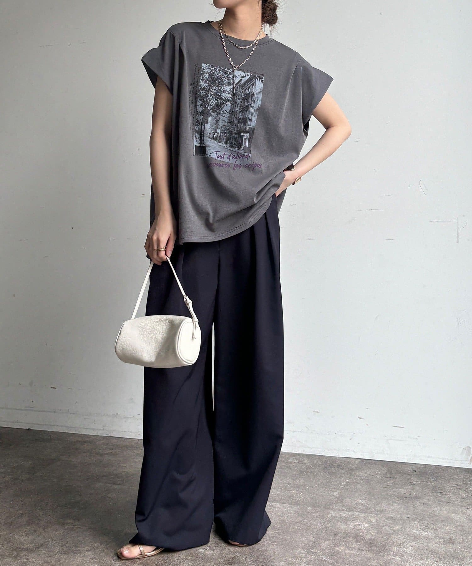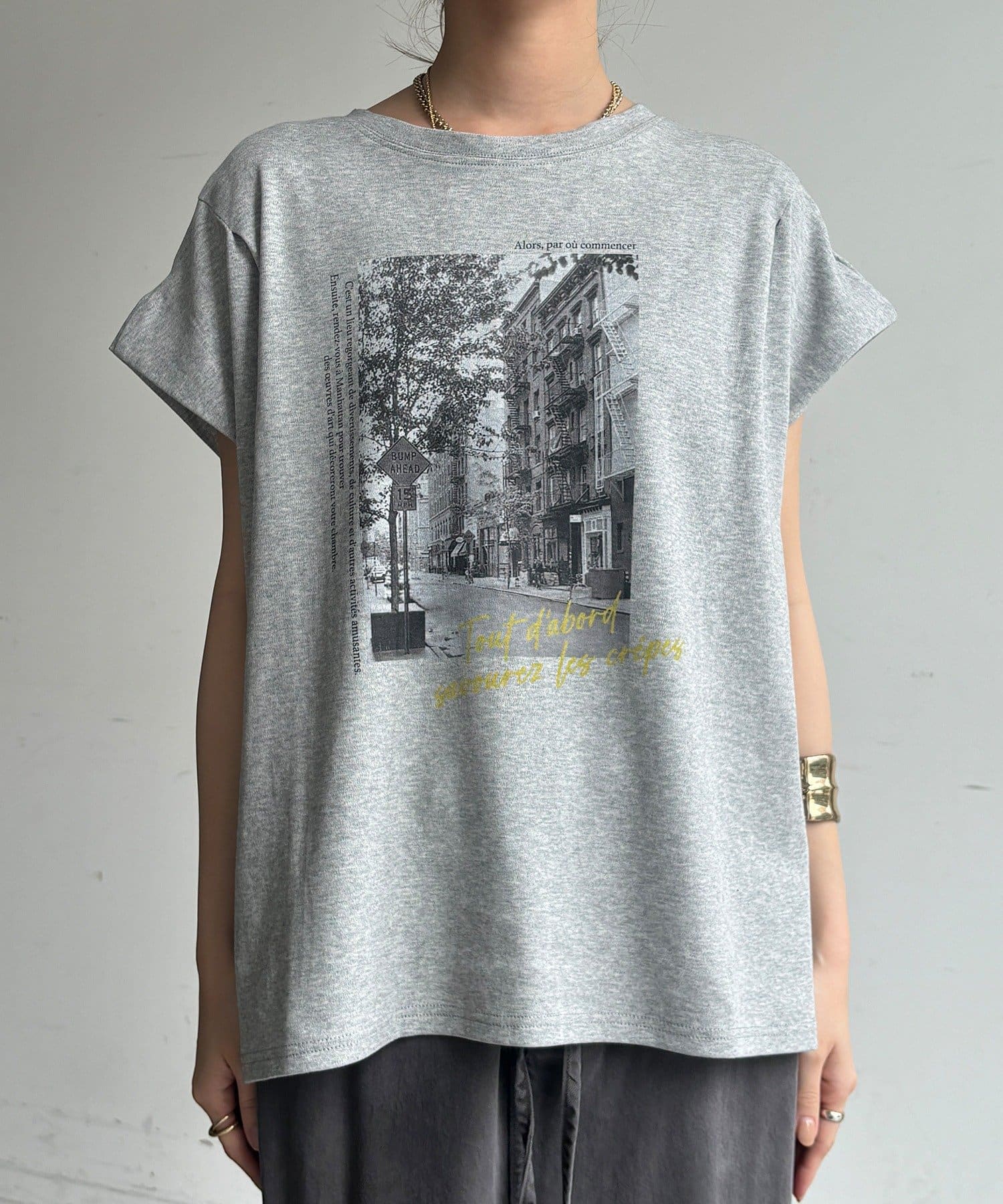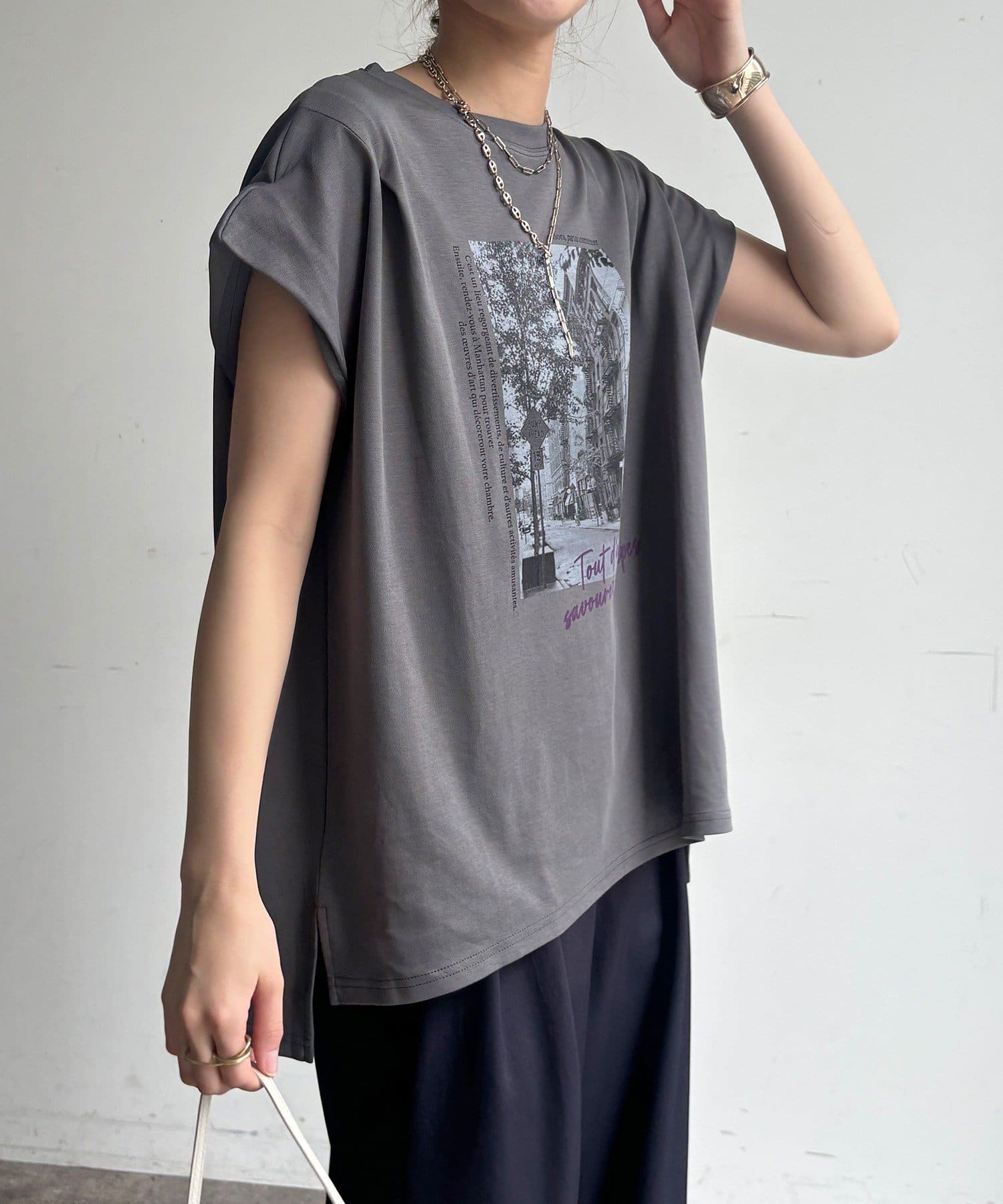モノトーンのフォトプリントが目を惹くロゴTEE
