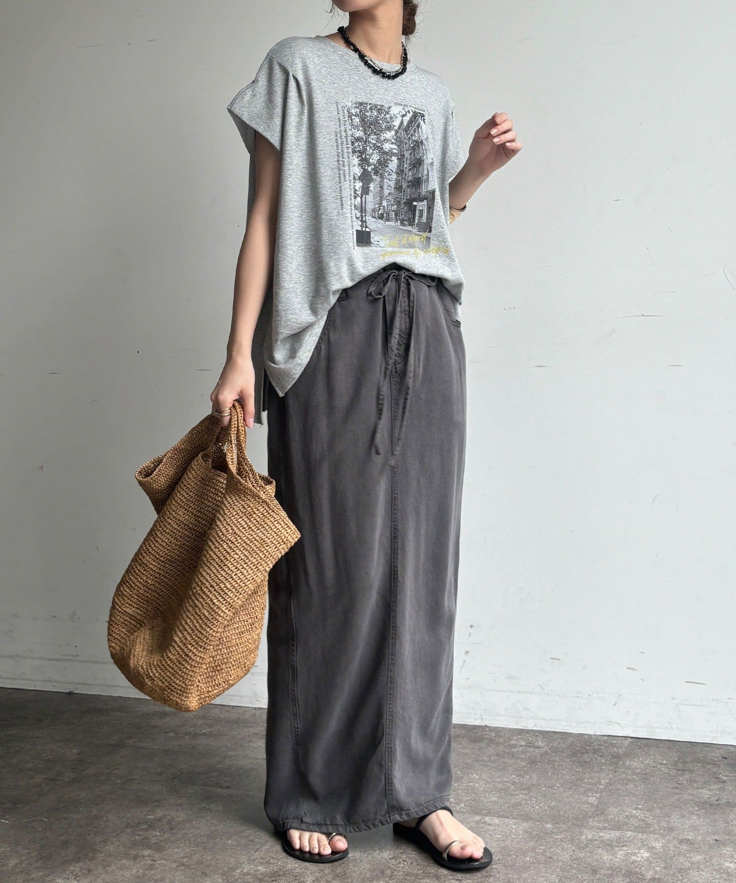 ゆったりとしたシルエットで、身体のラインを拾いにくく
