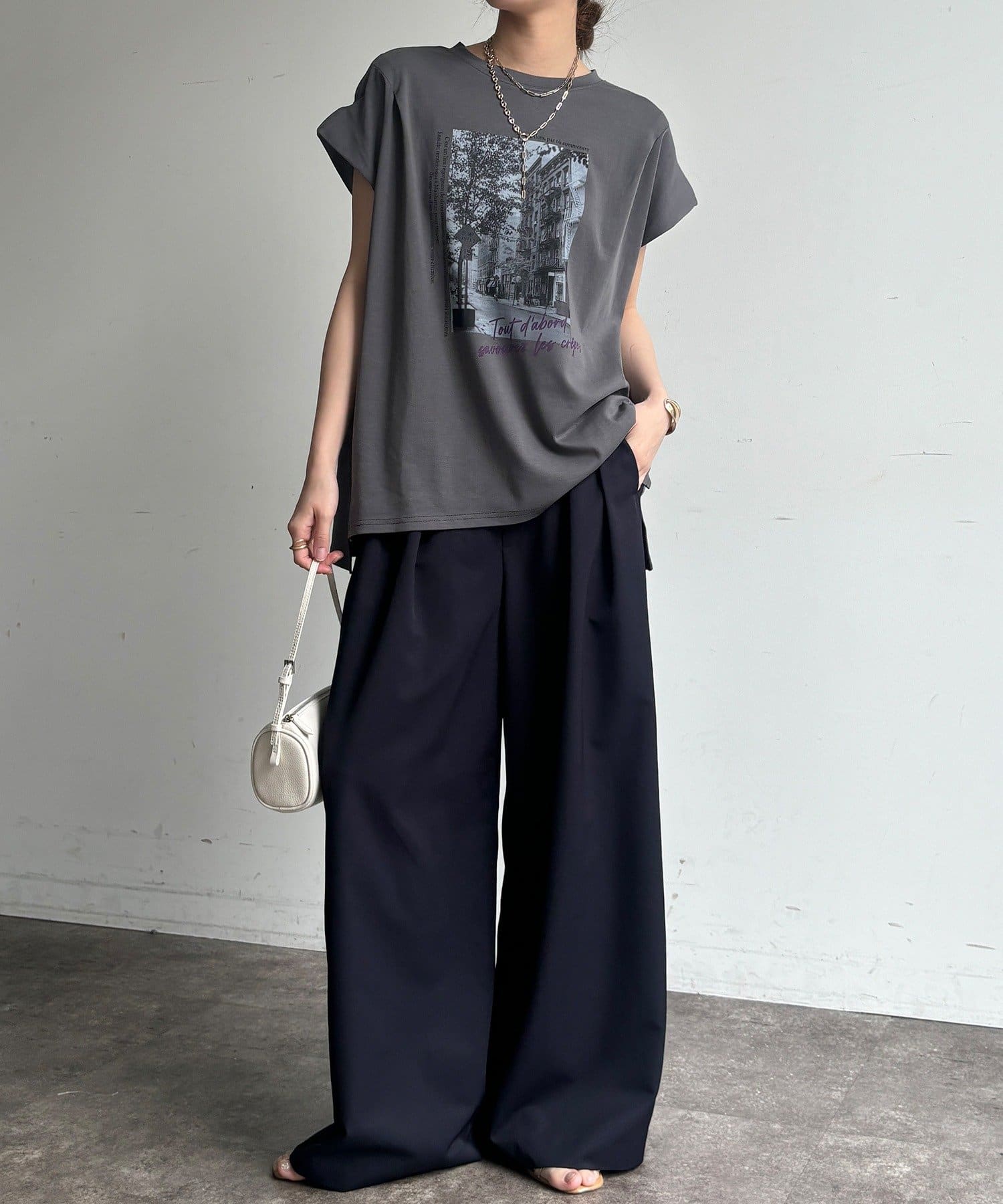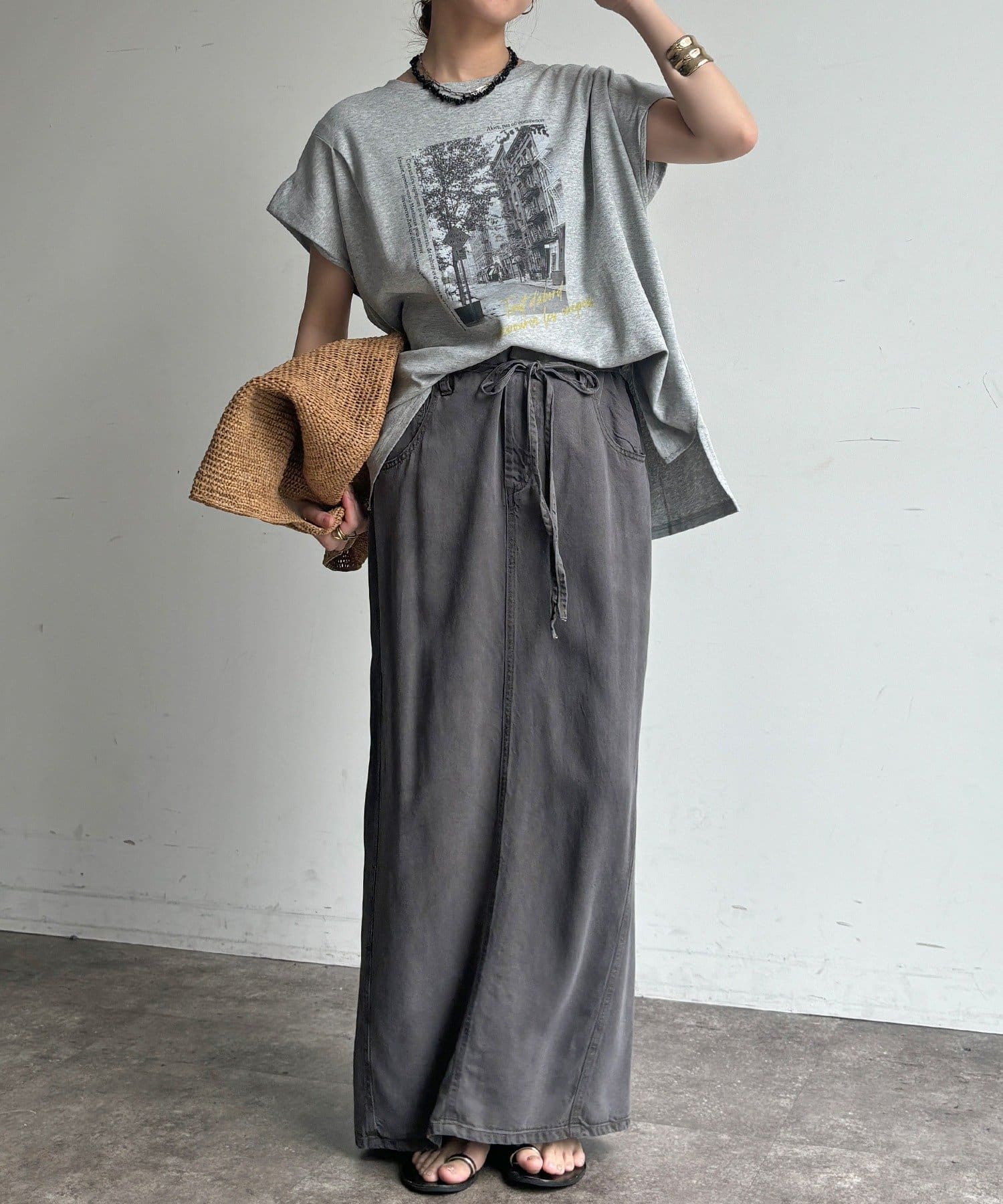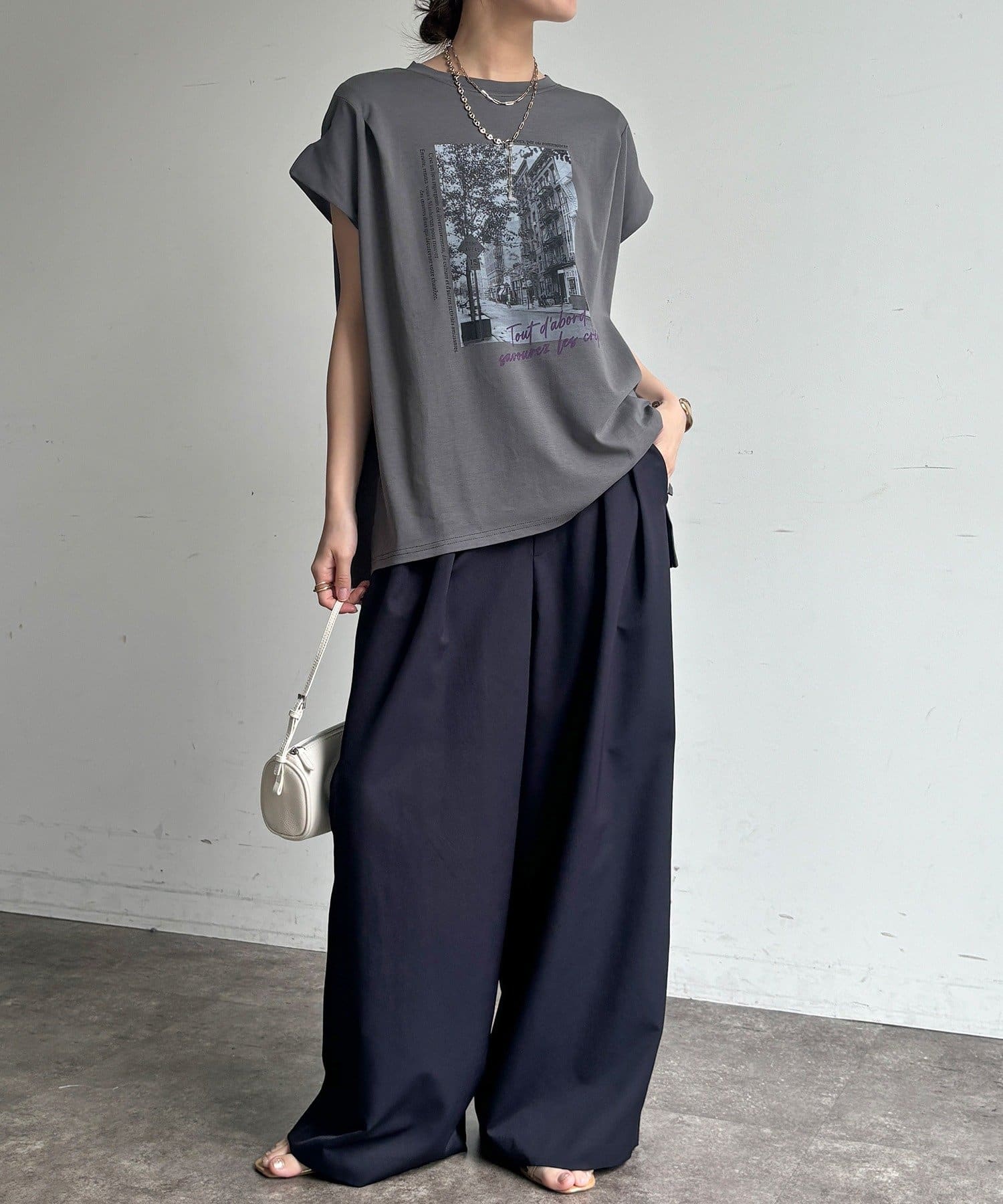 落ち着いたフォト×ロゴでカジュアルながらも大人っぽい印象のTシャツ。