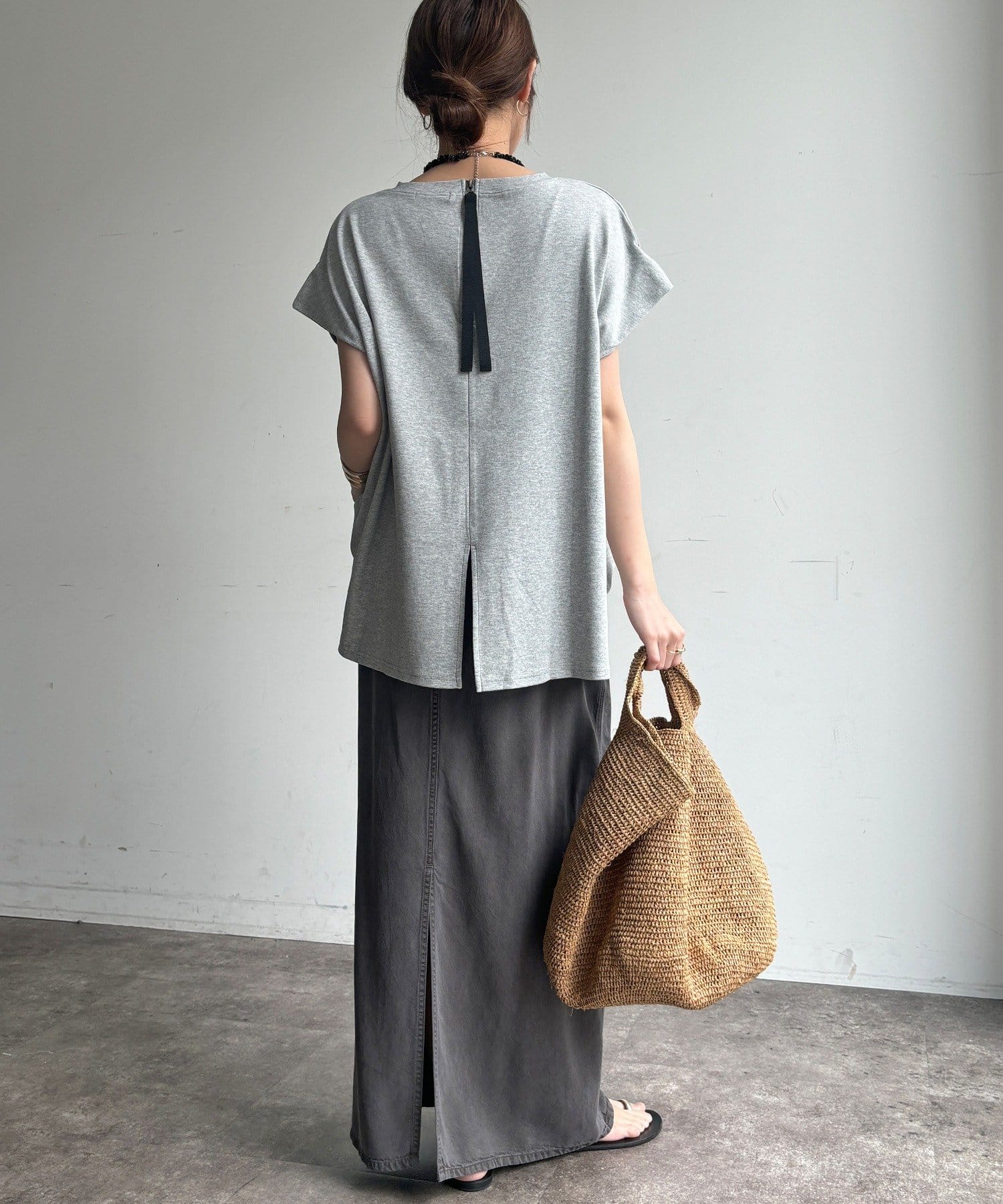 バックスタイルにはジップとスリットを施し、シンプルな中にさりげないアクセントをプラスし、