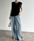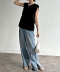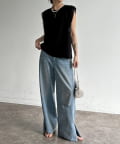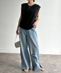 シンプルなボトムスと合わせるだけで手抜き感のないコーデか完成。