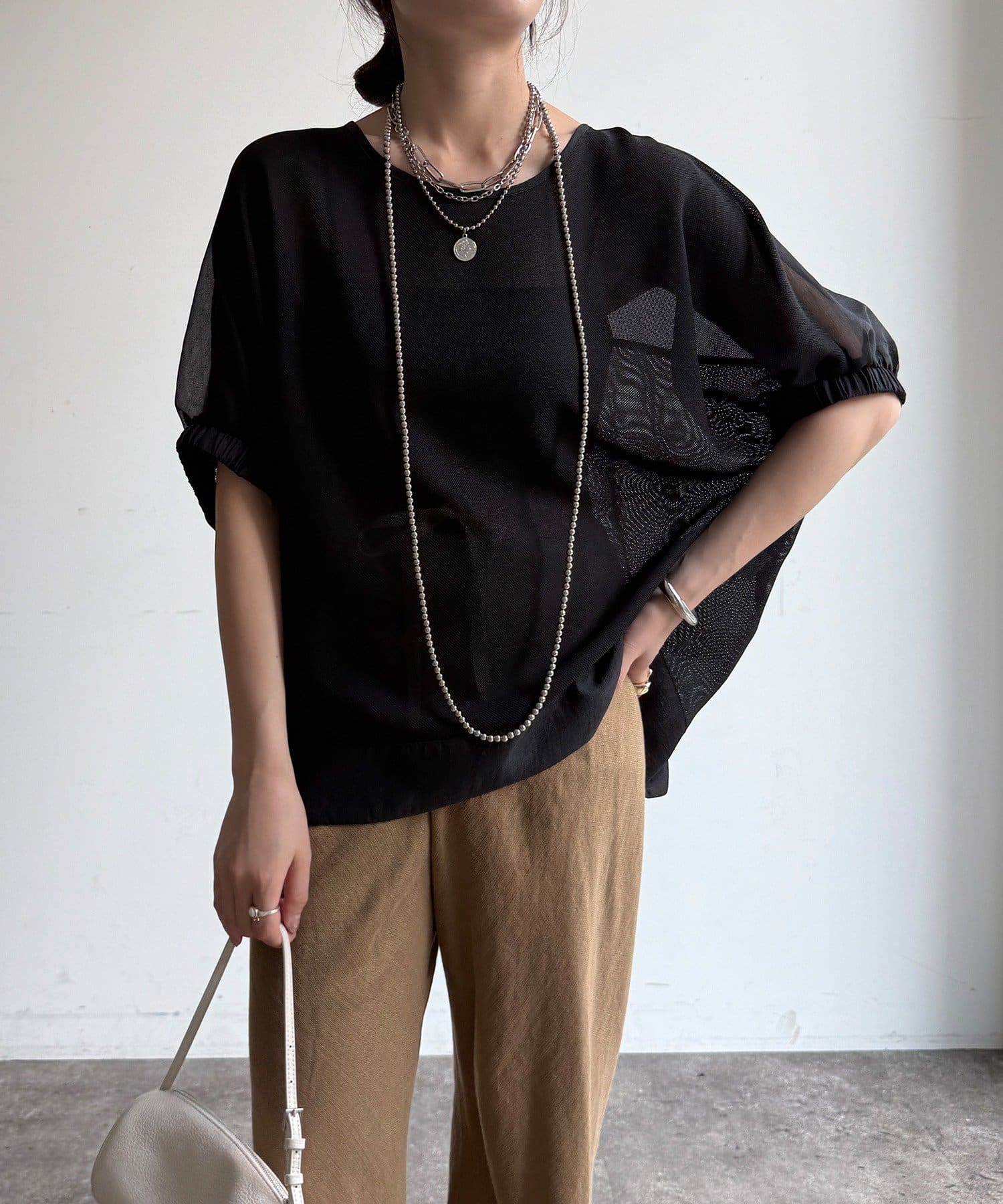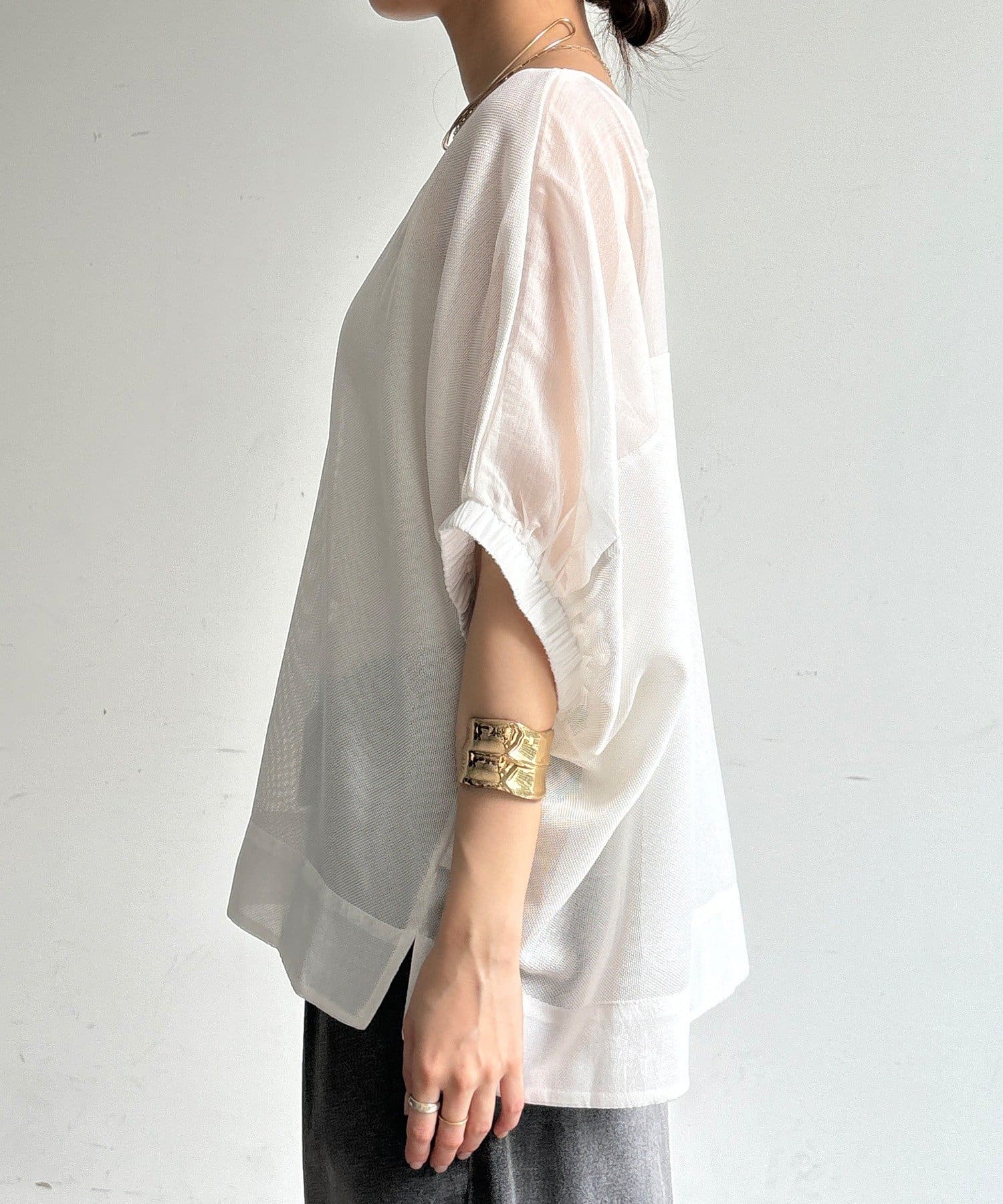 インナーとのレイヤードを前提とした透け感で