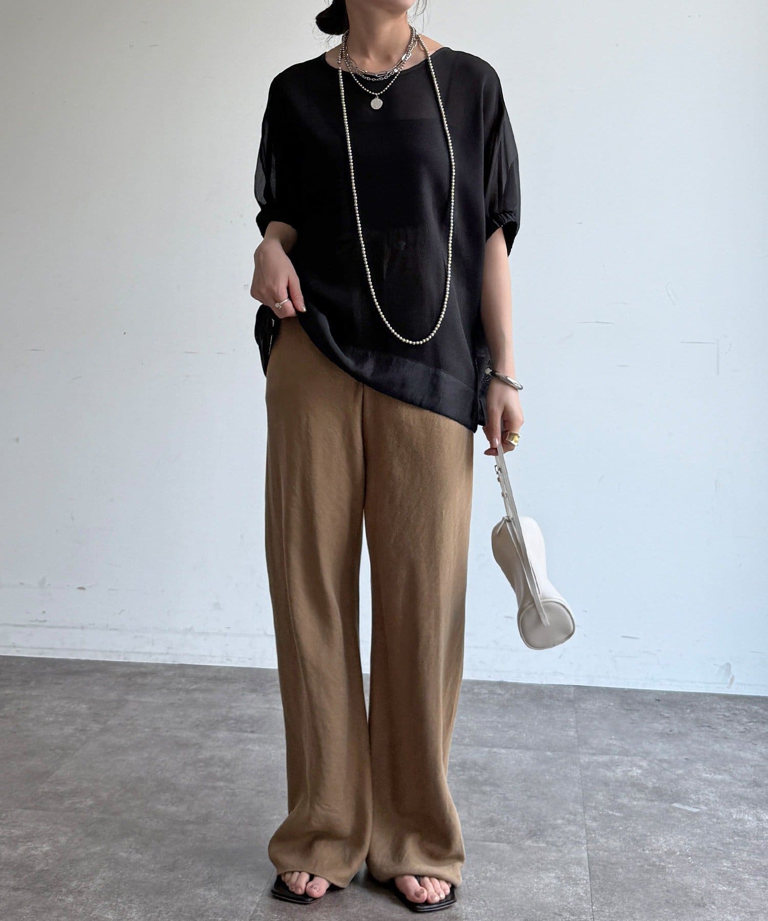 シフォンのような透け感と柔らかさが特徴の一着。